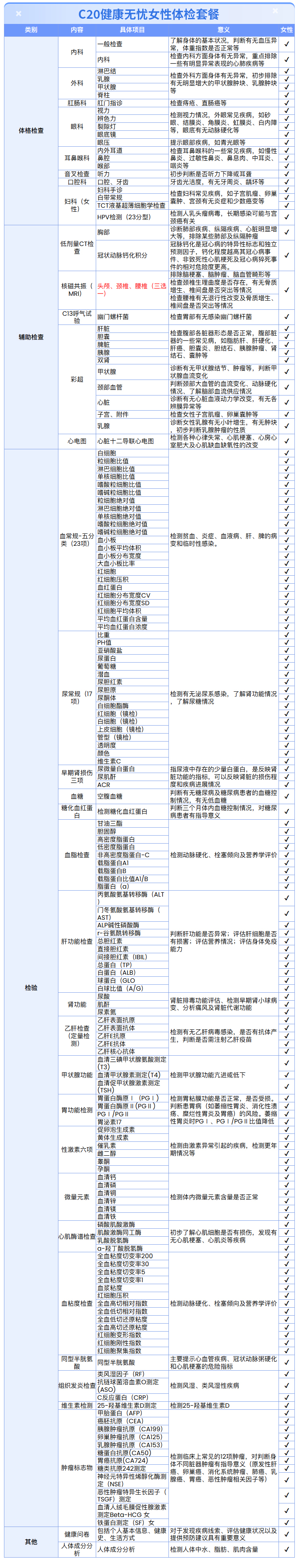 【女性 | 健康无忧深度呵护】含HPV/TCT+核磁共振+2项低剂CT+C13+十二项肿瘤标志物 C20