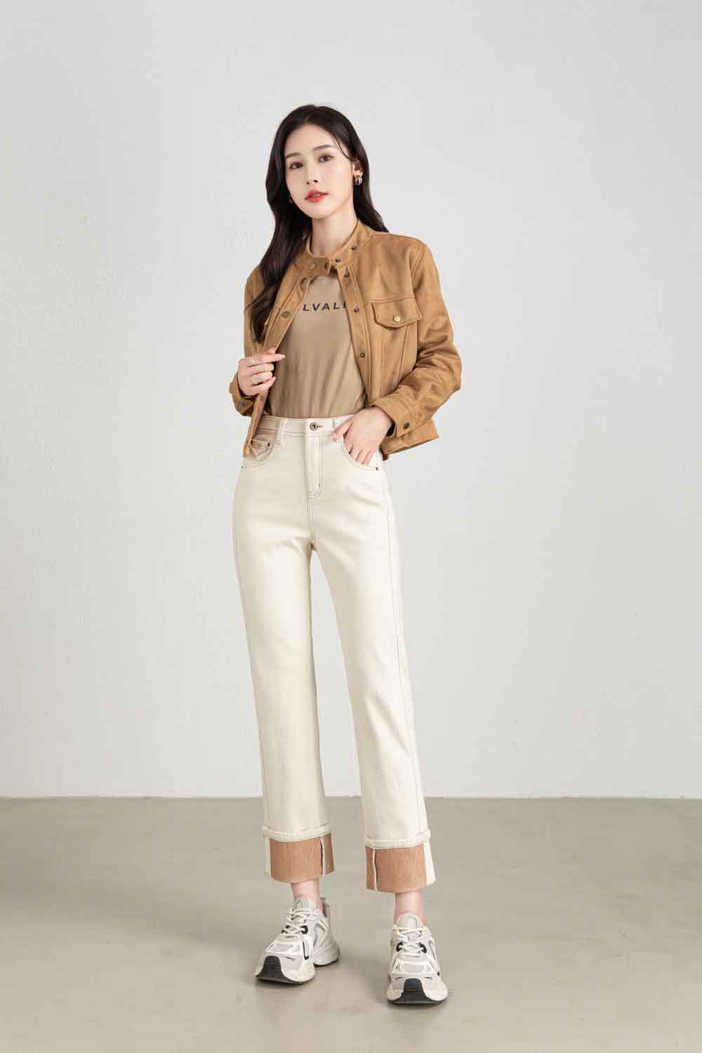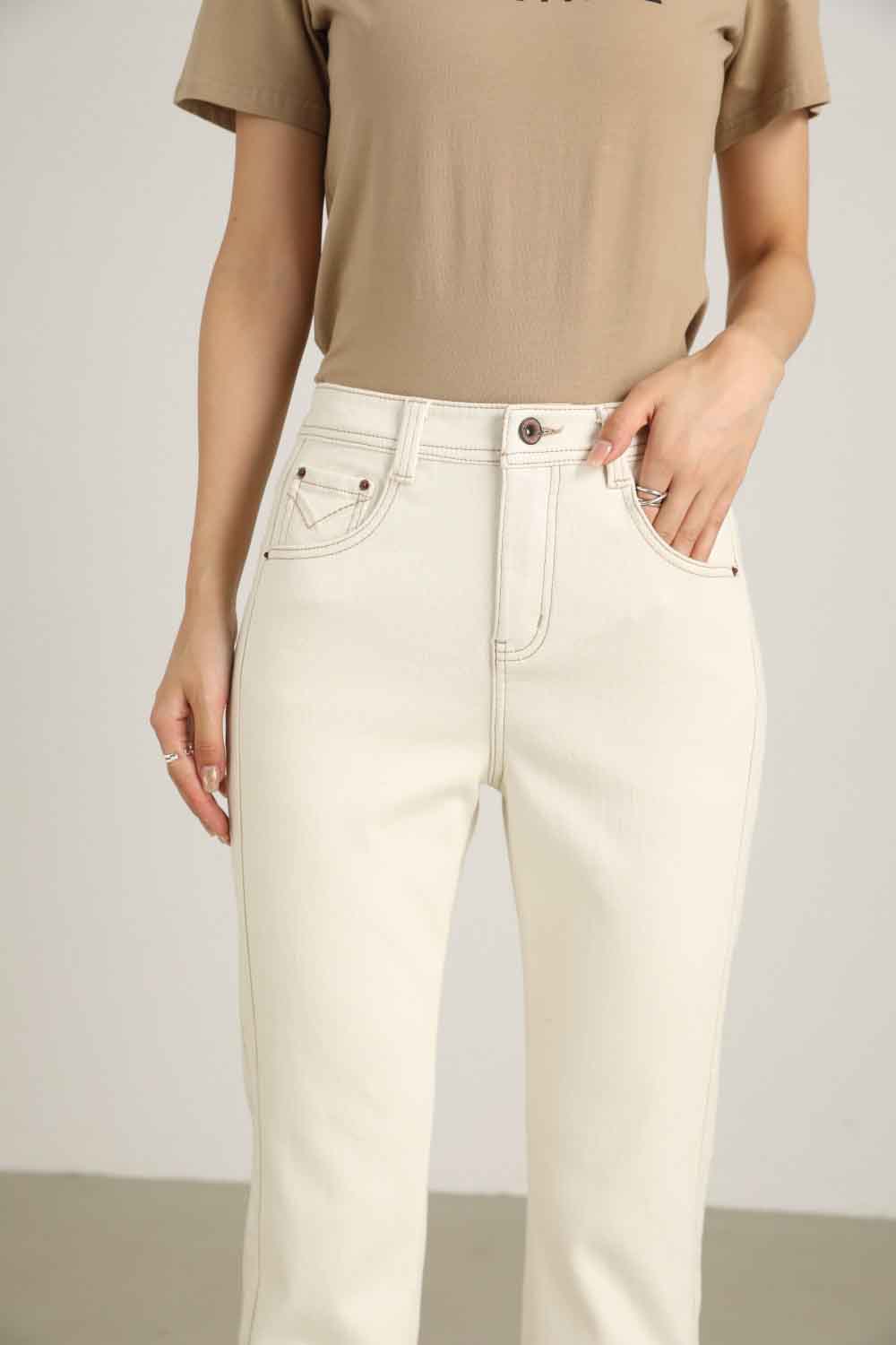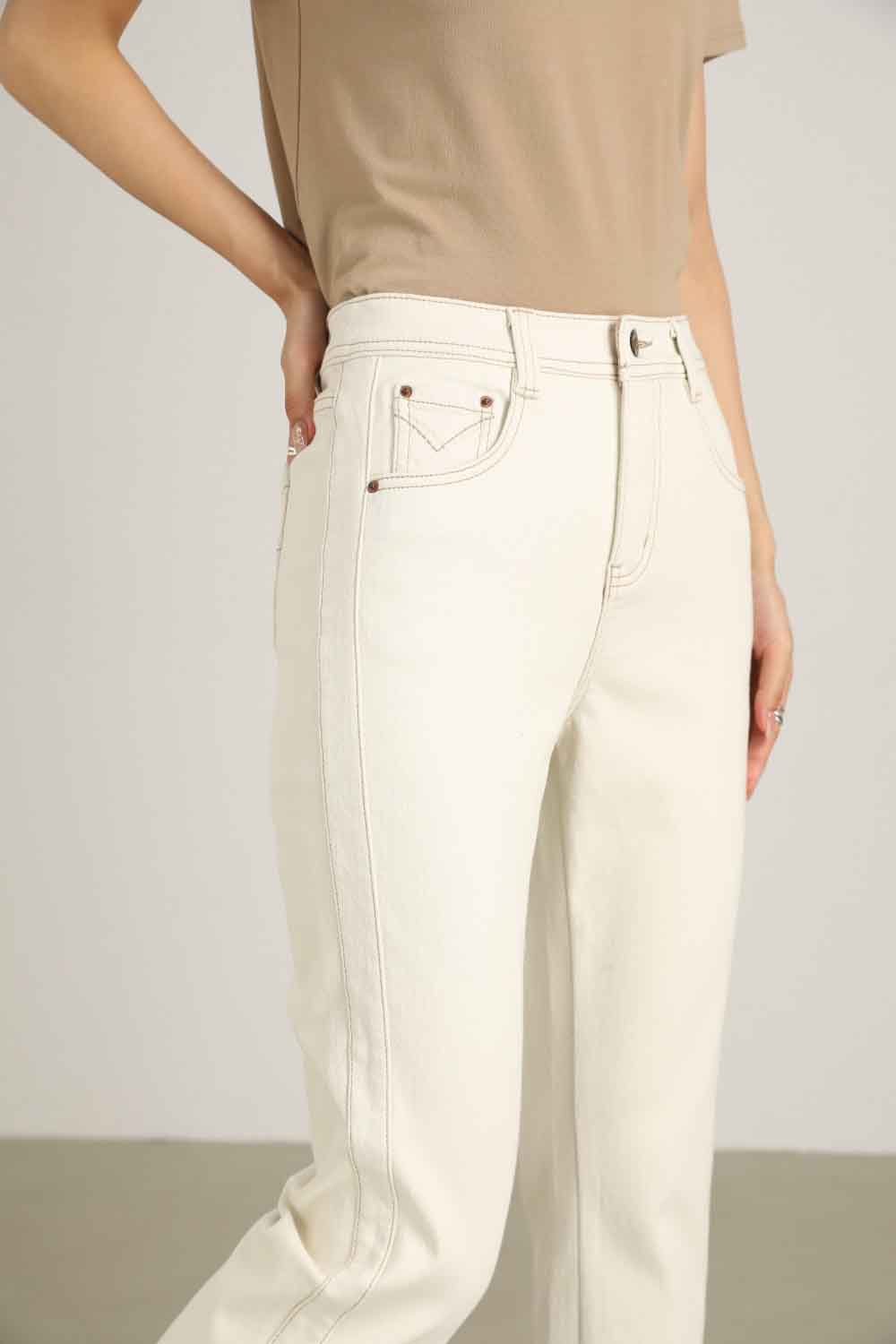 【顺丰包邮】13029 洛诗琳秋季新款米白色卷边设计感显瘦烟管裤1022B