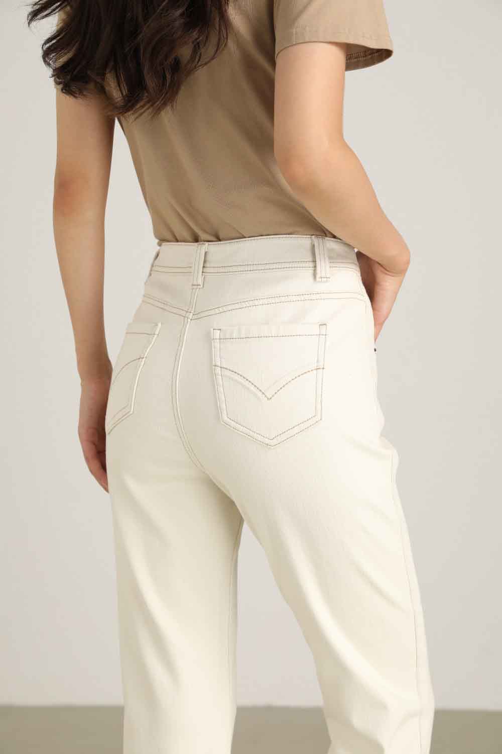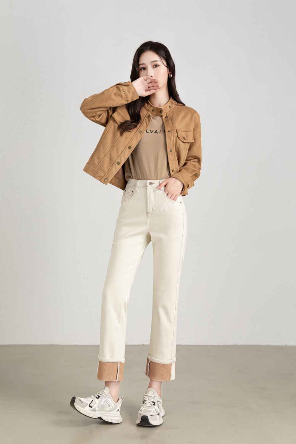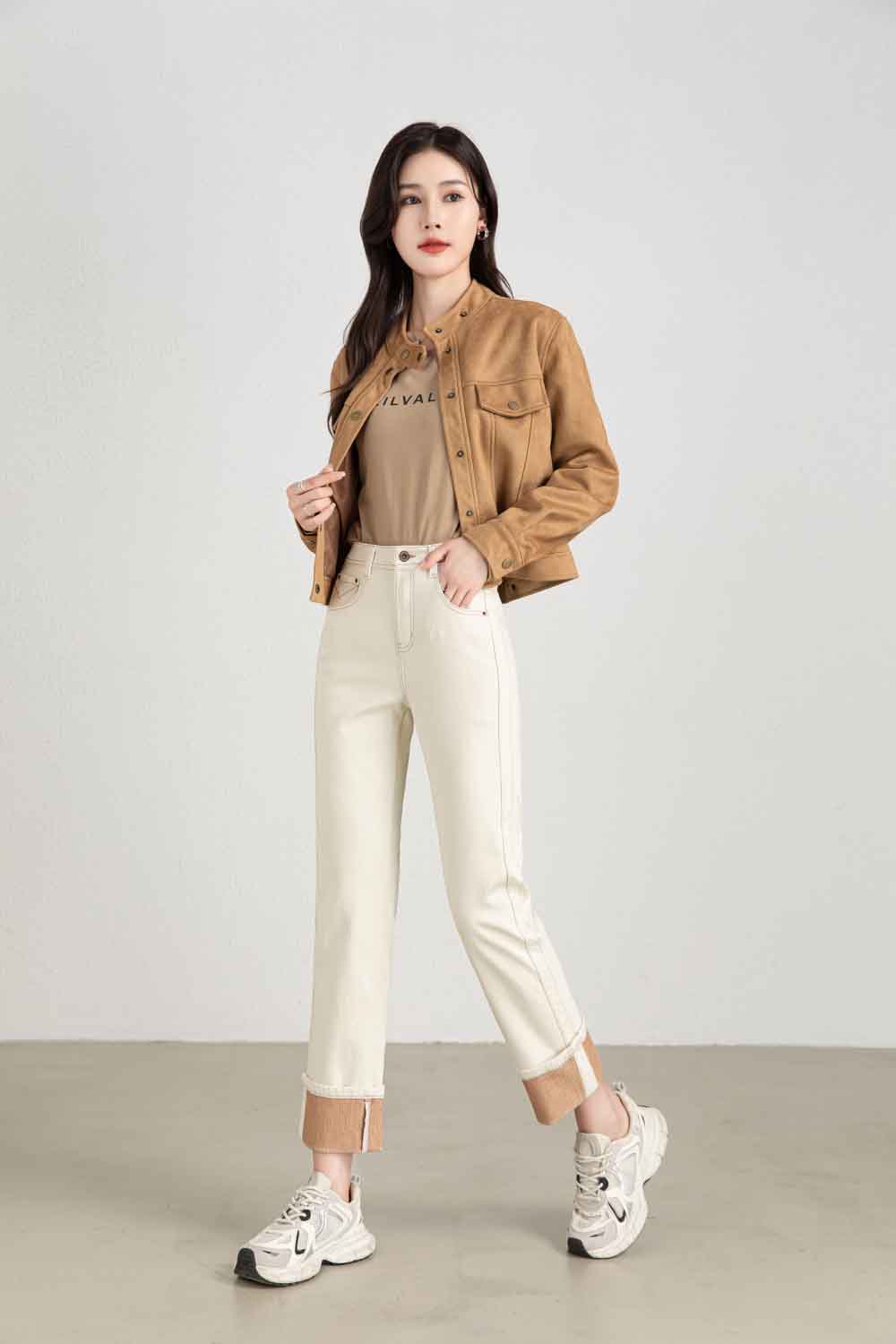 【顺丰包邮】13029 洛诗琳秋季新款米白色卷边设计感显瘦烟管裤1022B