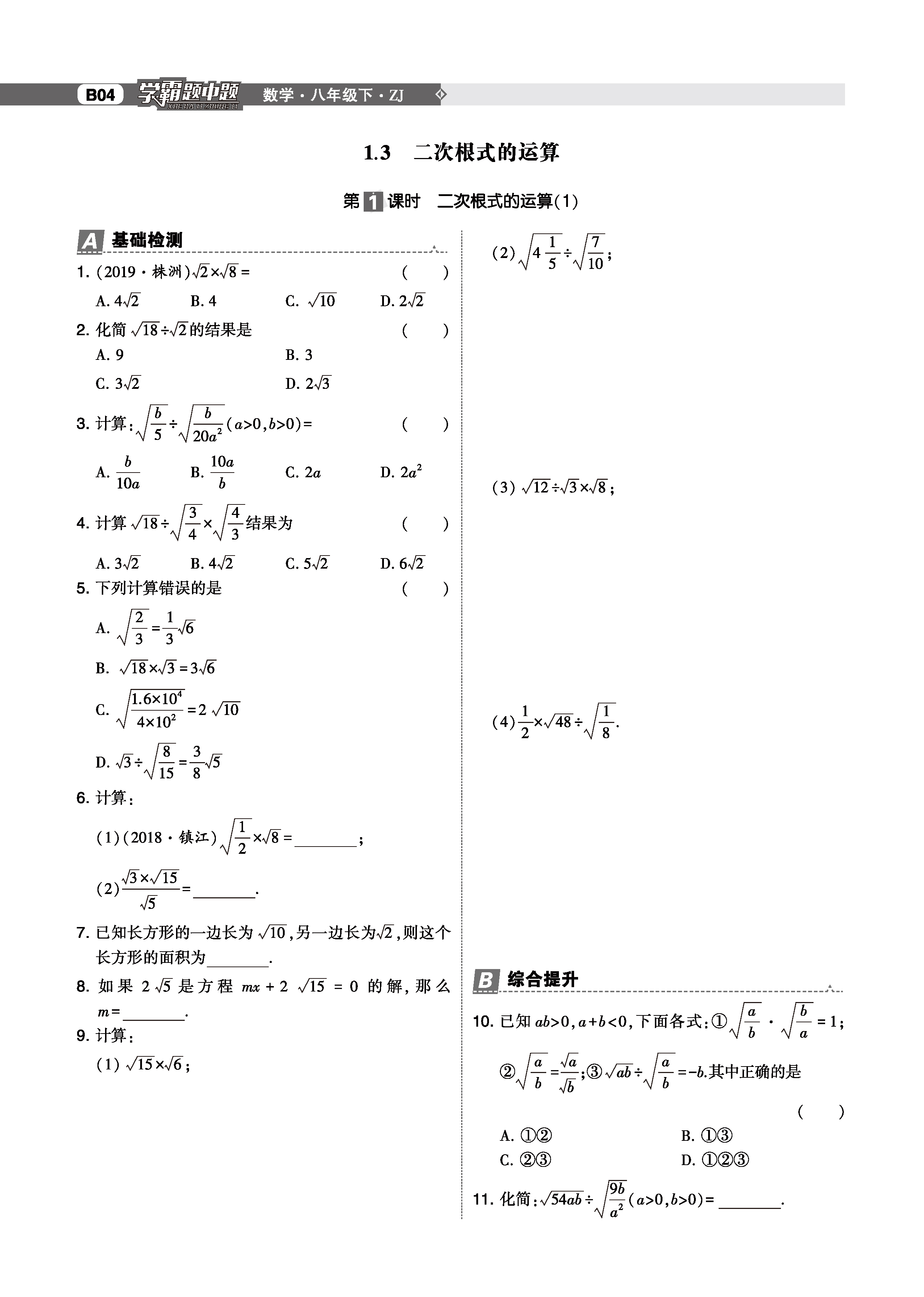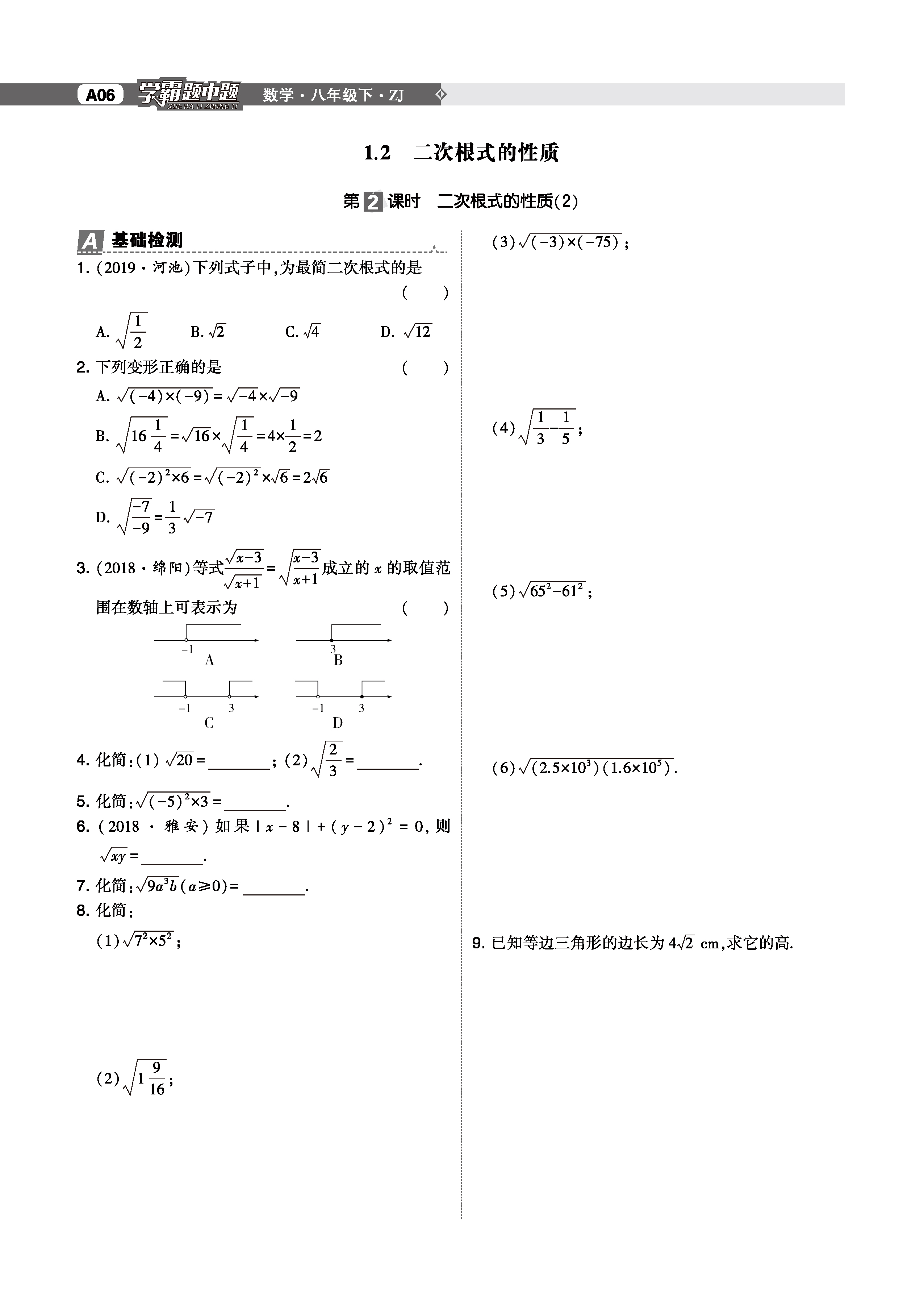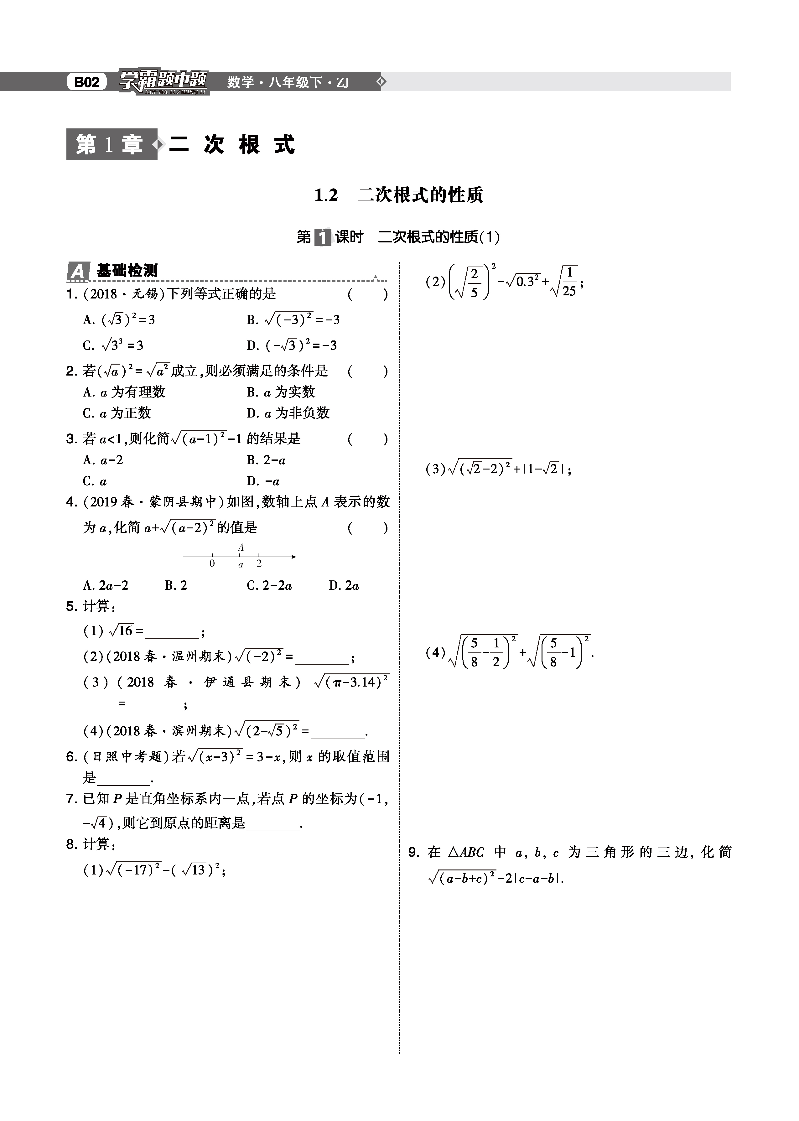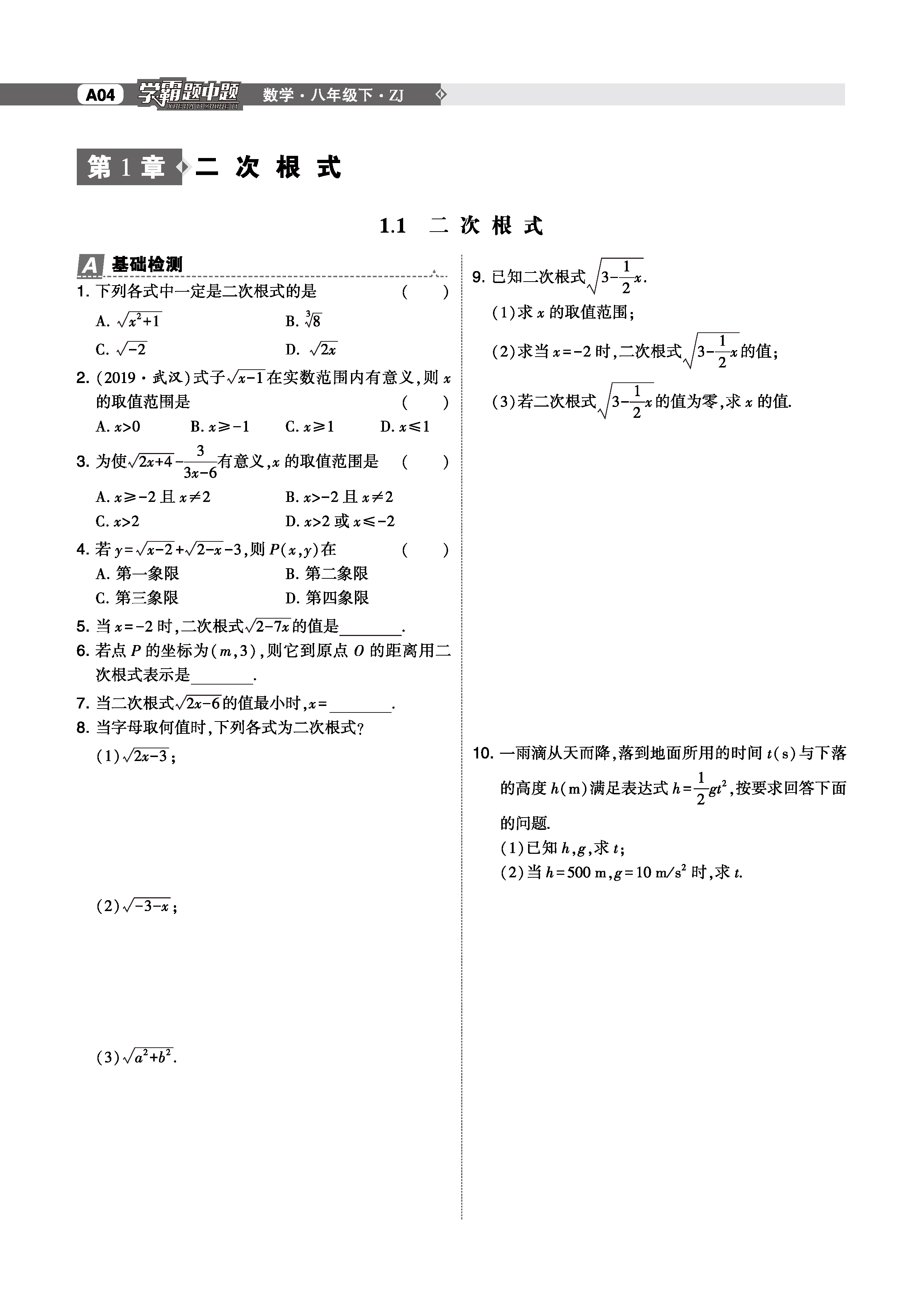 学霸题中题——数学 八年级下 浙教版 ZJ 2021