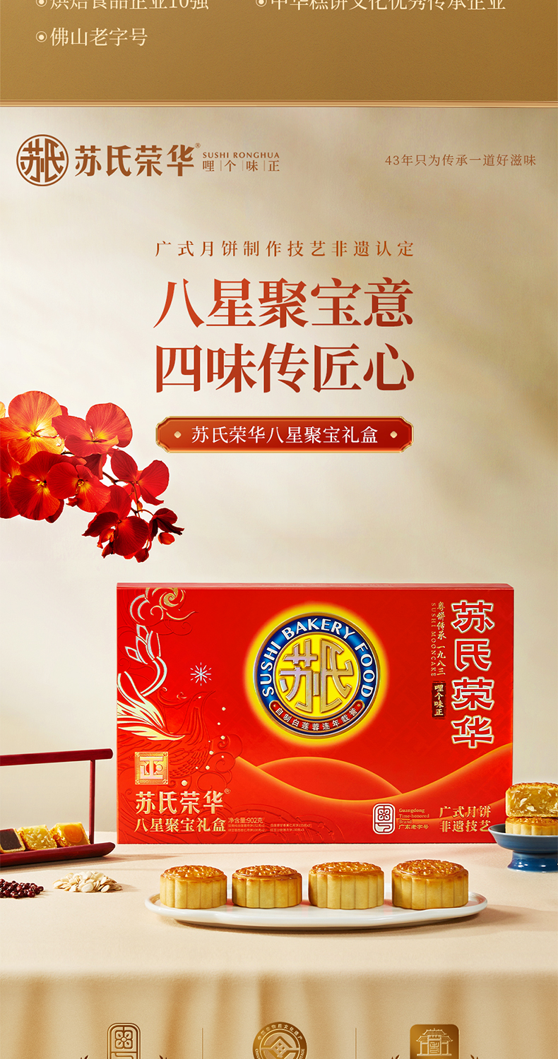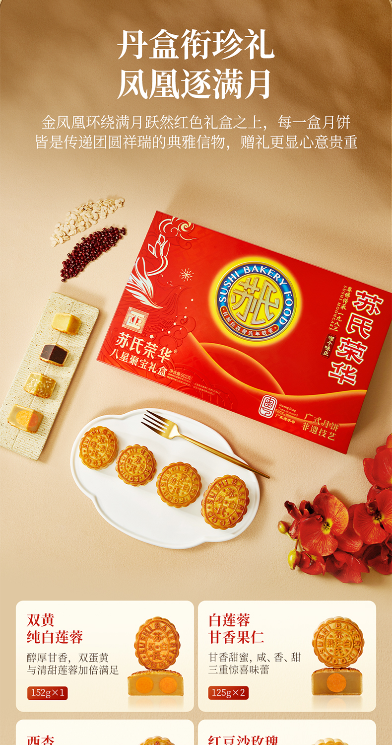 苏氏荣华八星聚宝中秋高端礼盒装双黄白莲蓉送礼佳品传统广式月饼团购优选