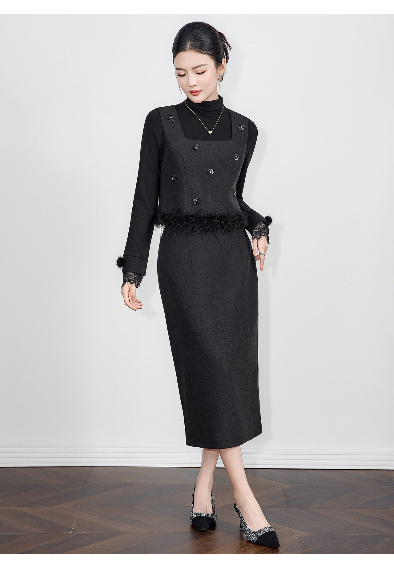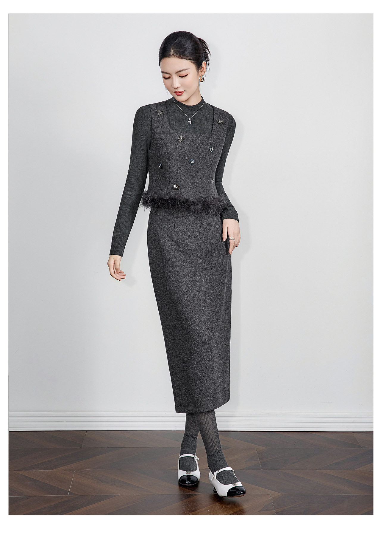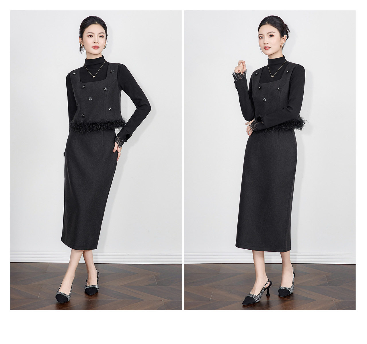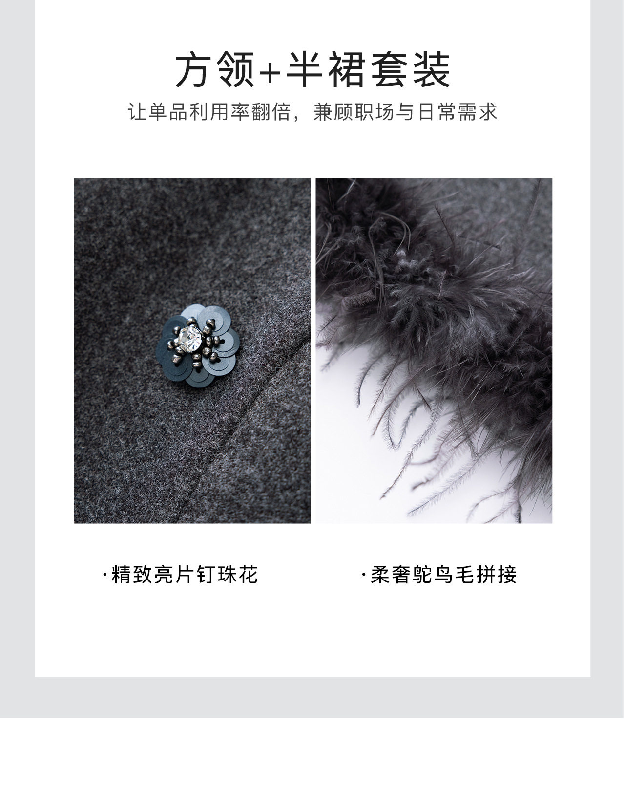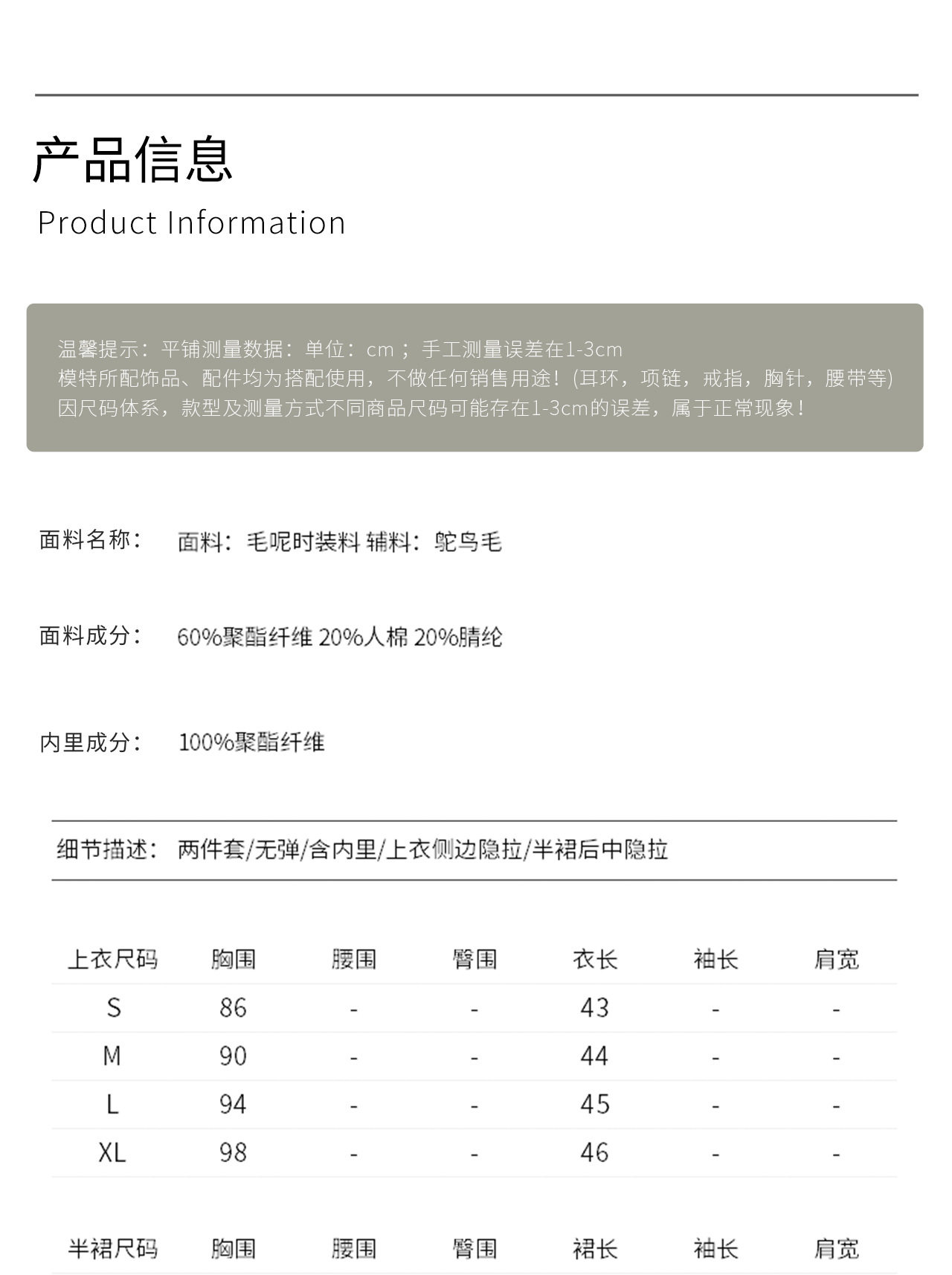 「高货wl」全新升级【铂金会员422/天猫569/差价147】(99611)洛诗琳2025秋冬气质鸵鸟毛马甲短上衣高腰显瘦半裙两件套
