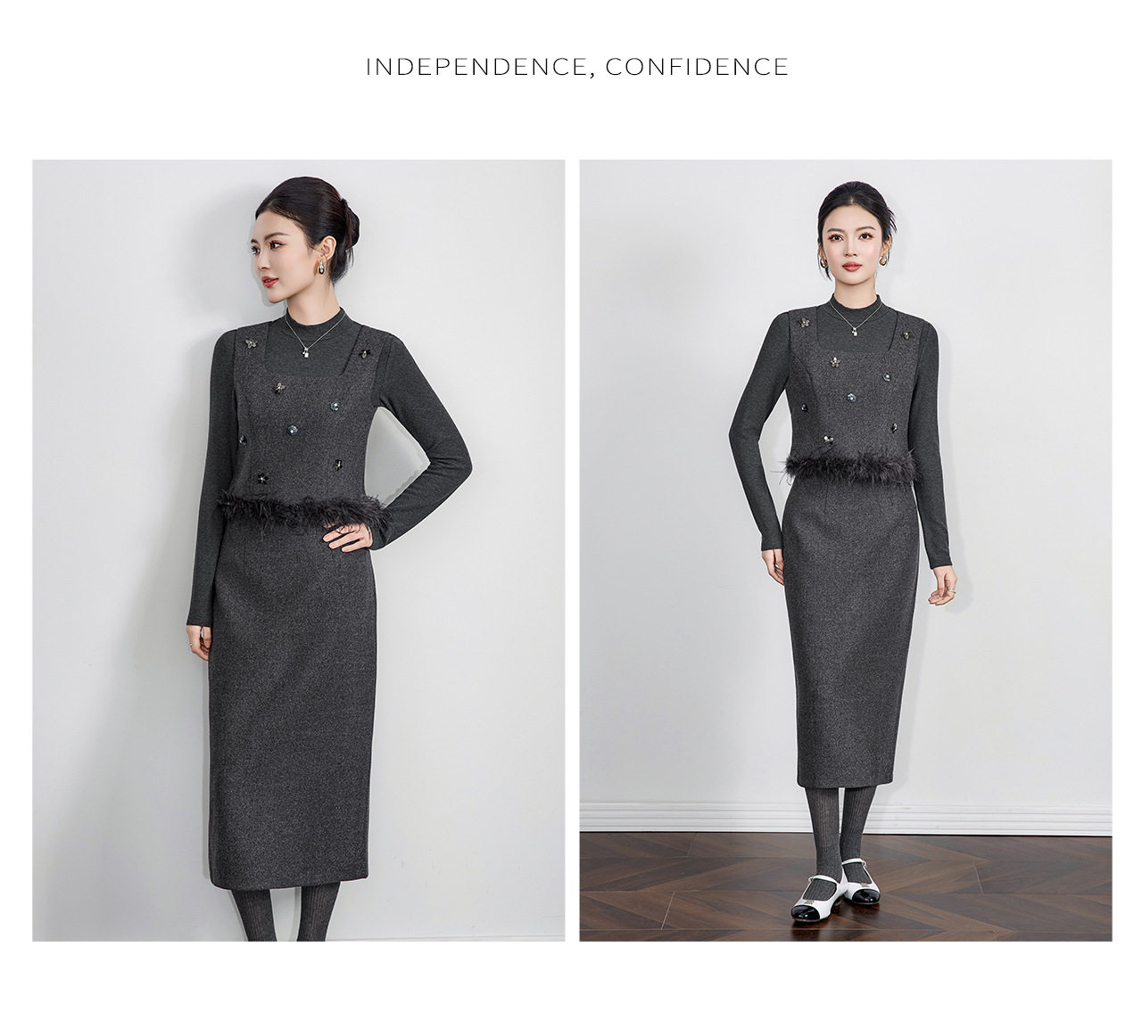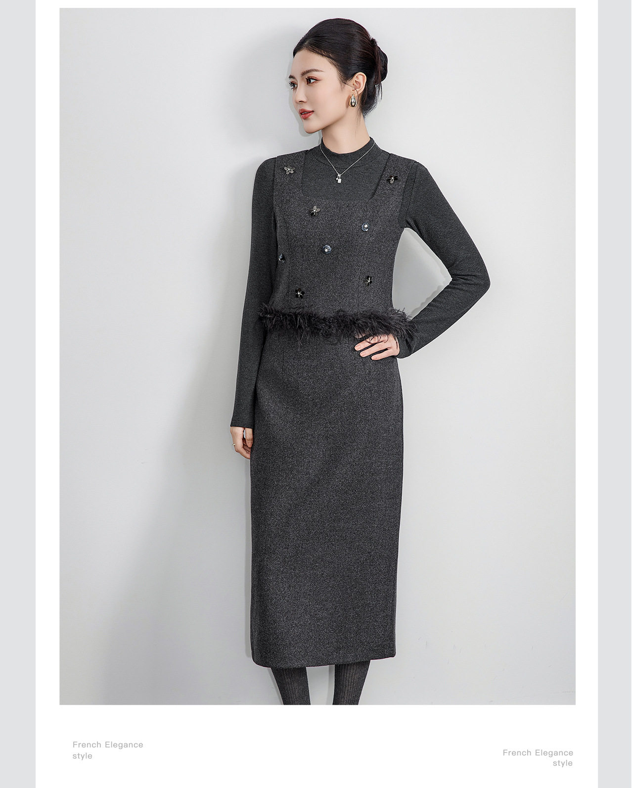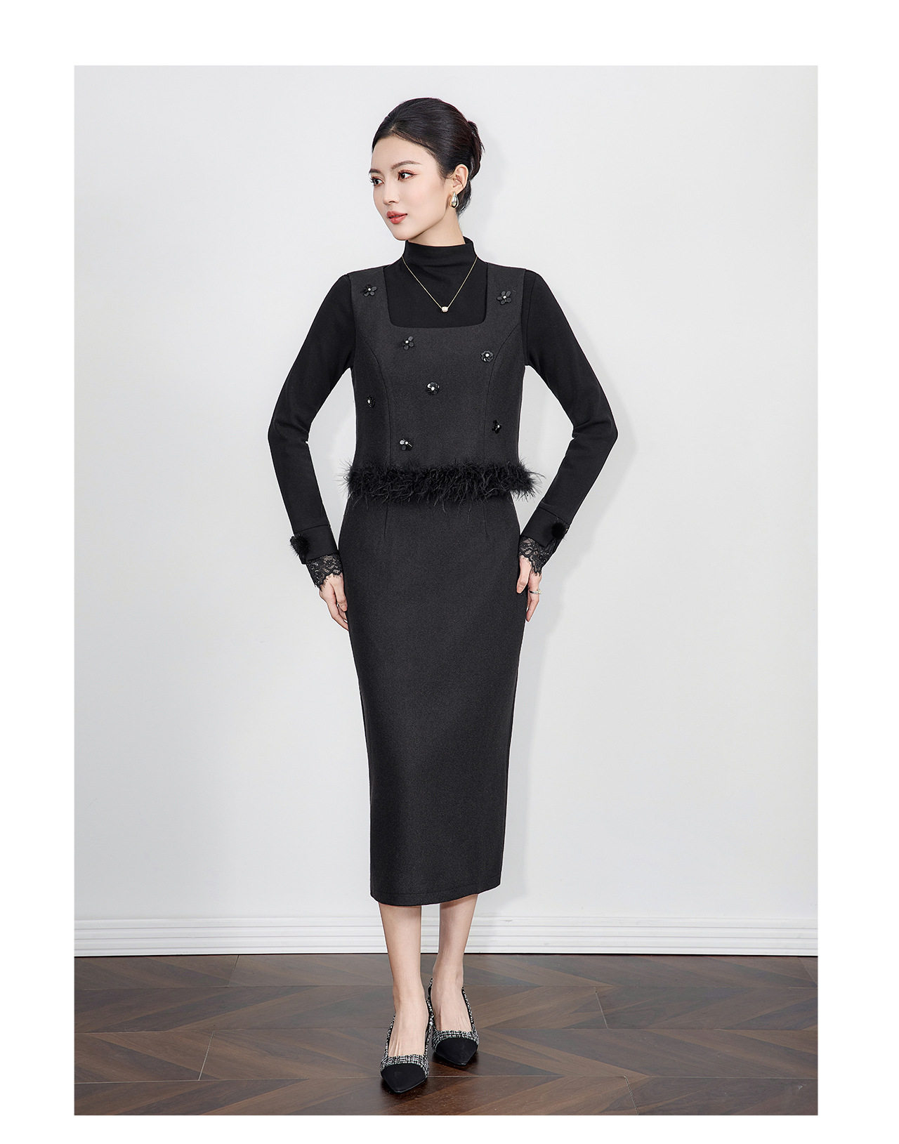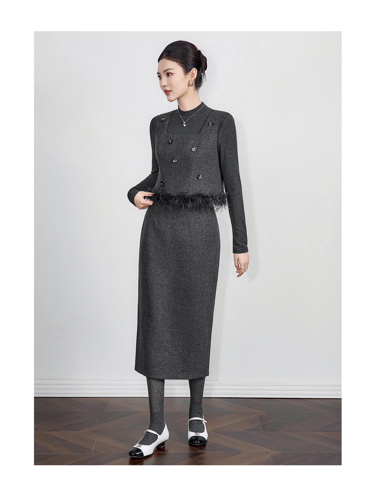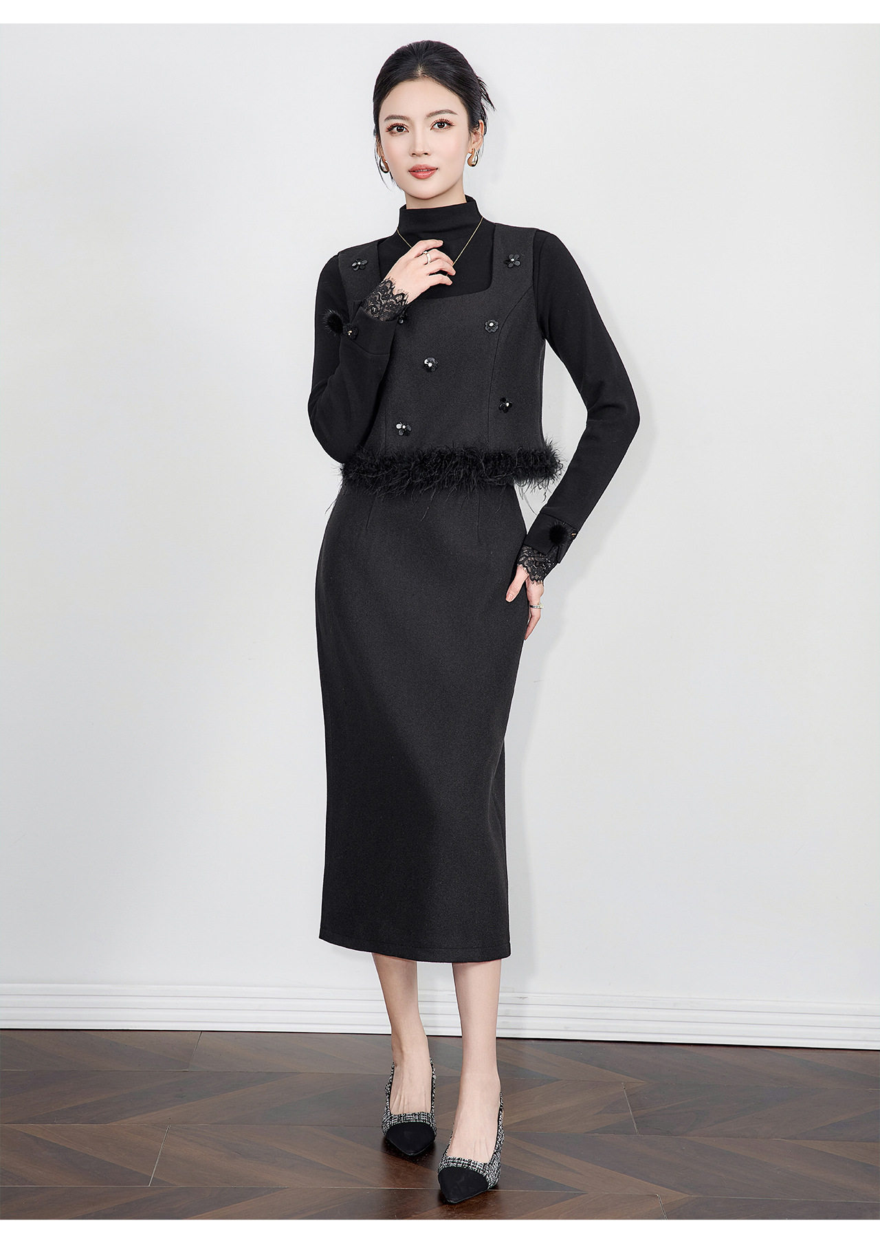 「高货wl」全新升级【铂金会员422/天猫569/差价147】(99611)洛诗琳2025秋冬气质鸵鸟毛马甲短上衣高腰显瘦半裙两件套
