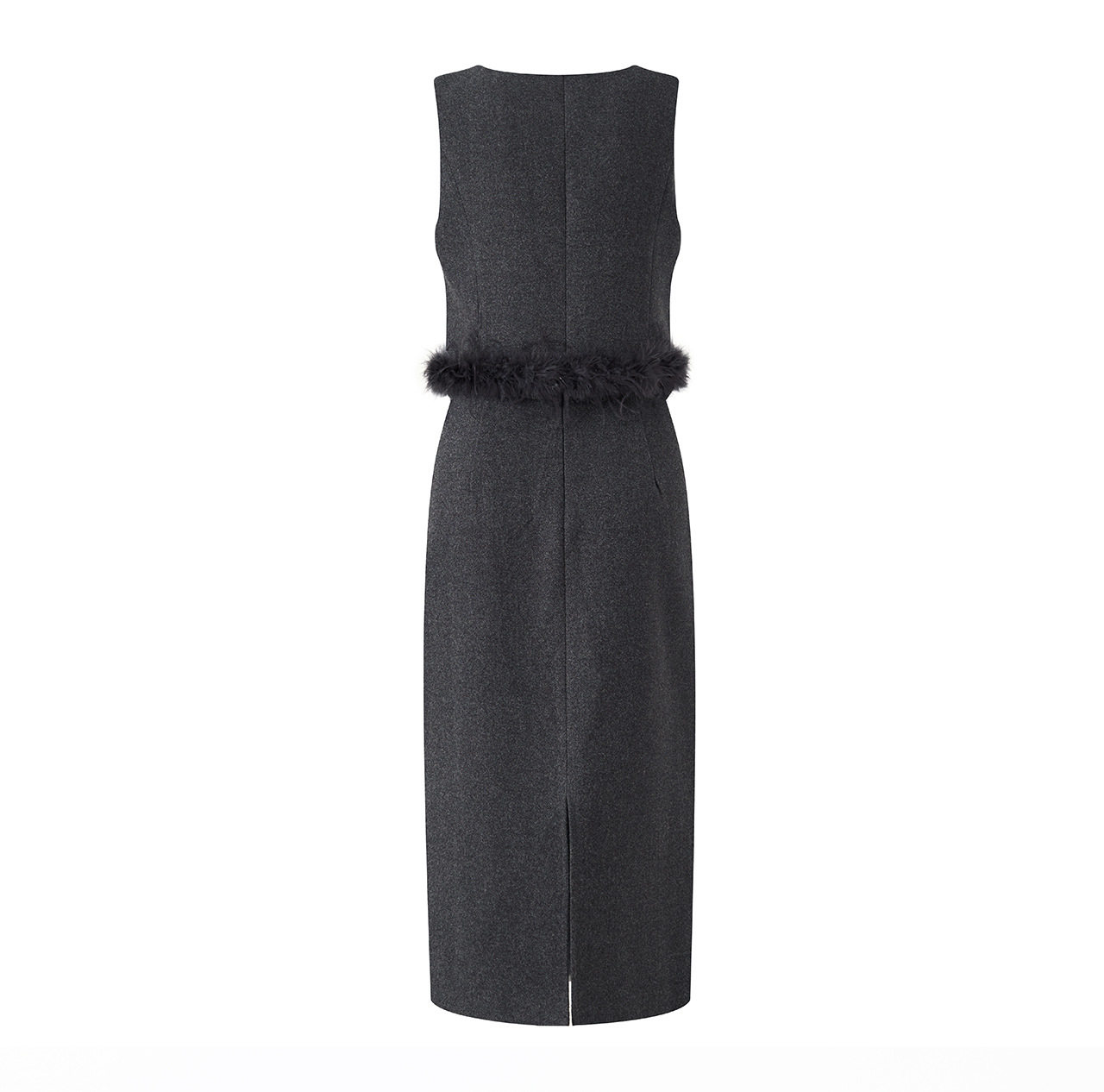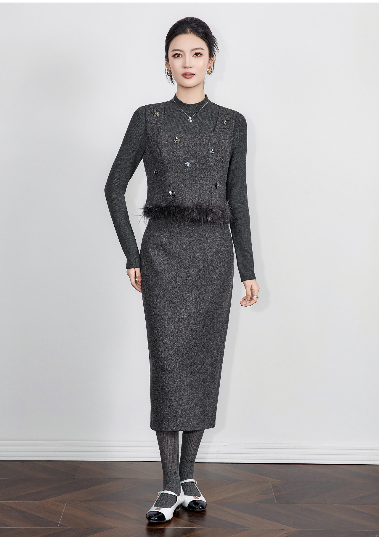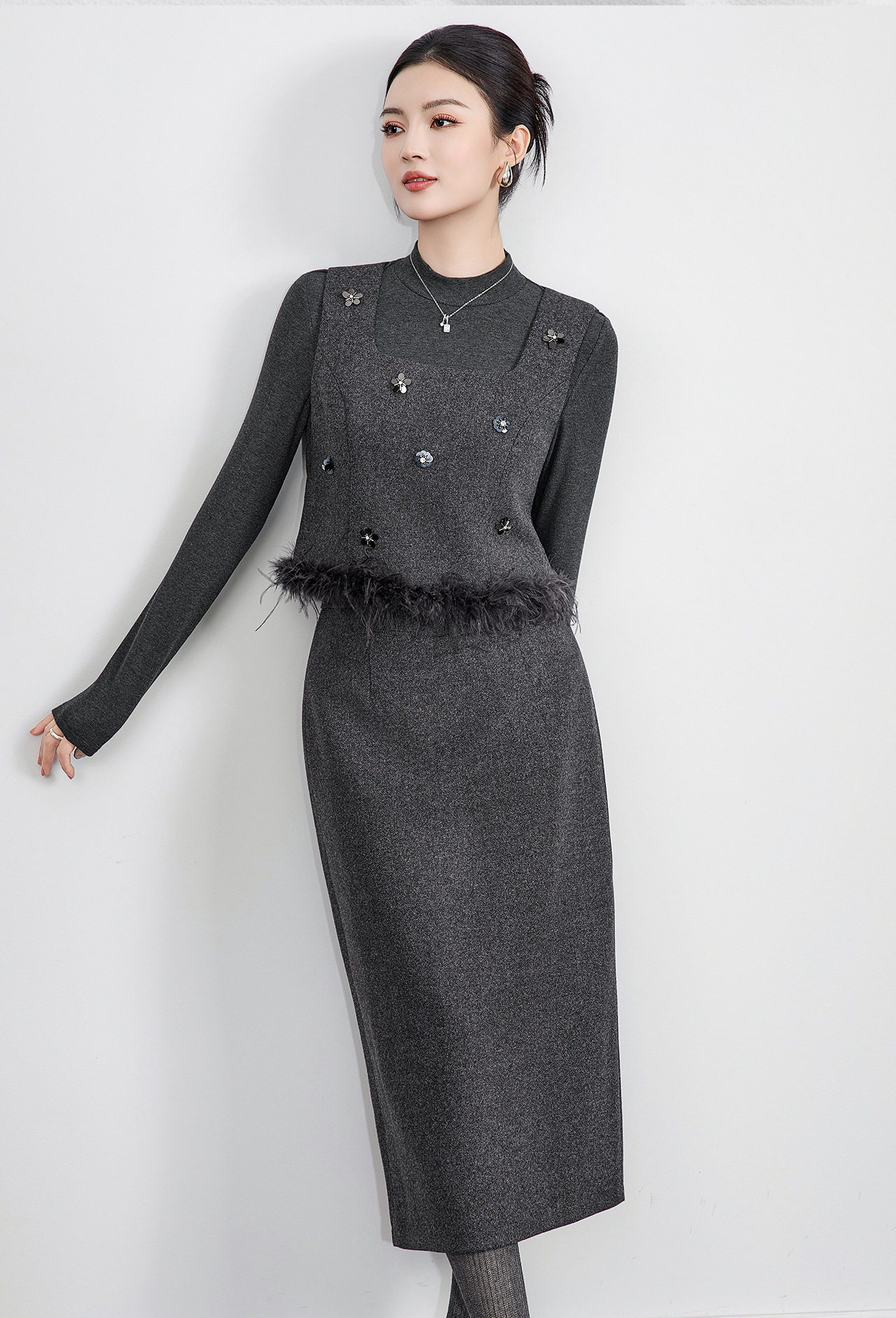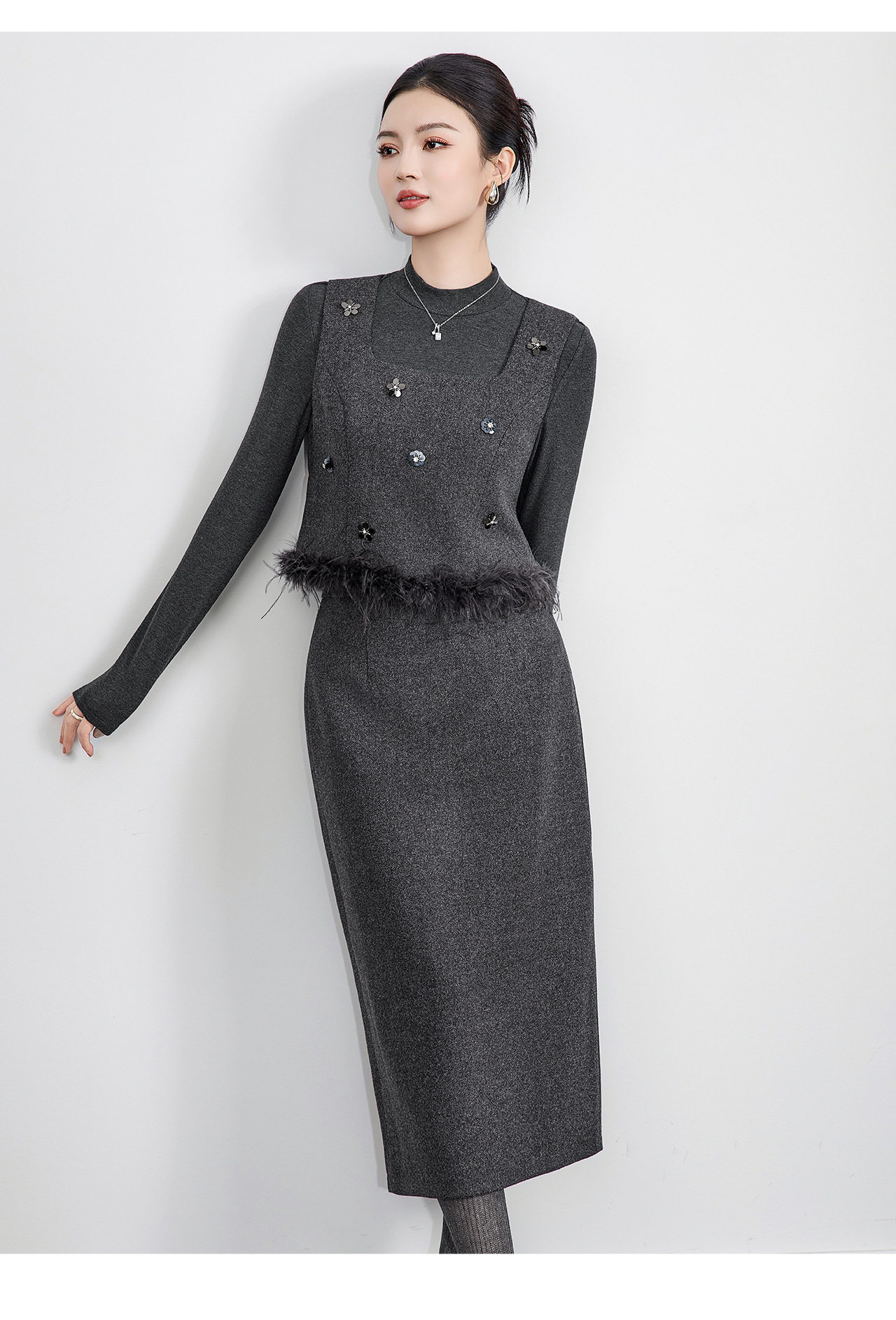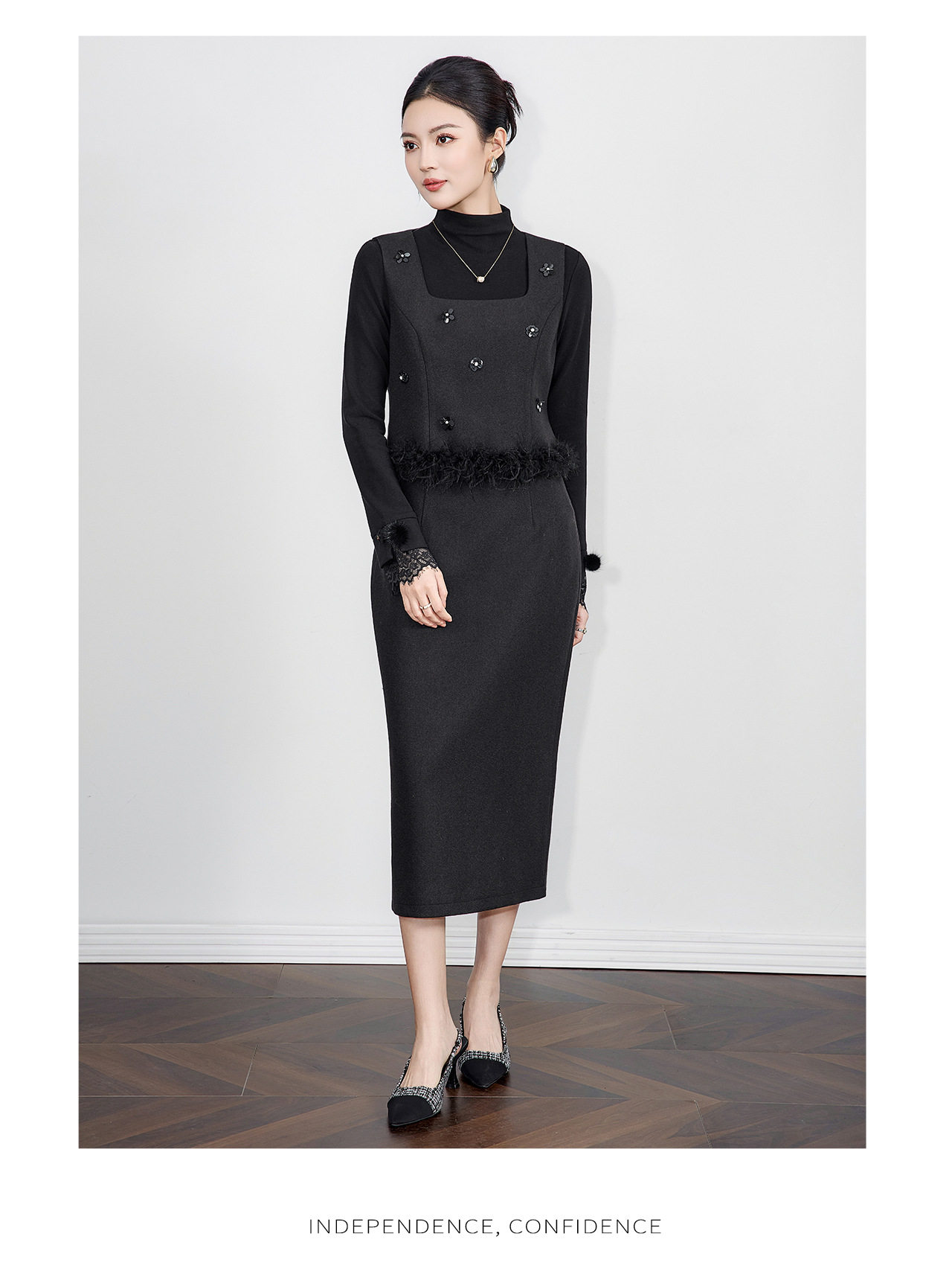 「高货wl」全新升级【铂金会员422/天猫569/差价147】(99611)洛诗琳2025秋冬气质鸵鸟毛马甲短上衣高腰显瘦半裙两件套