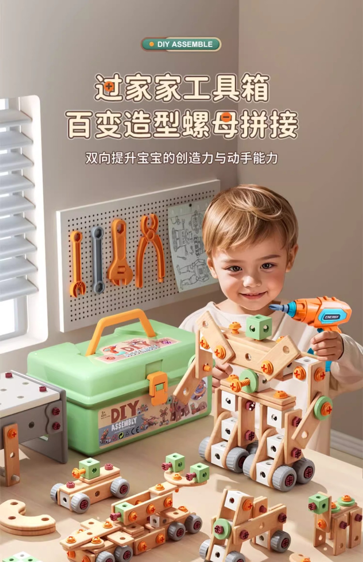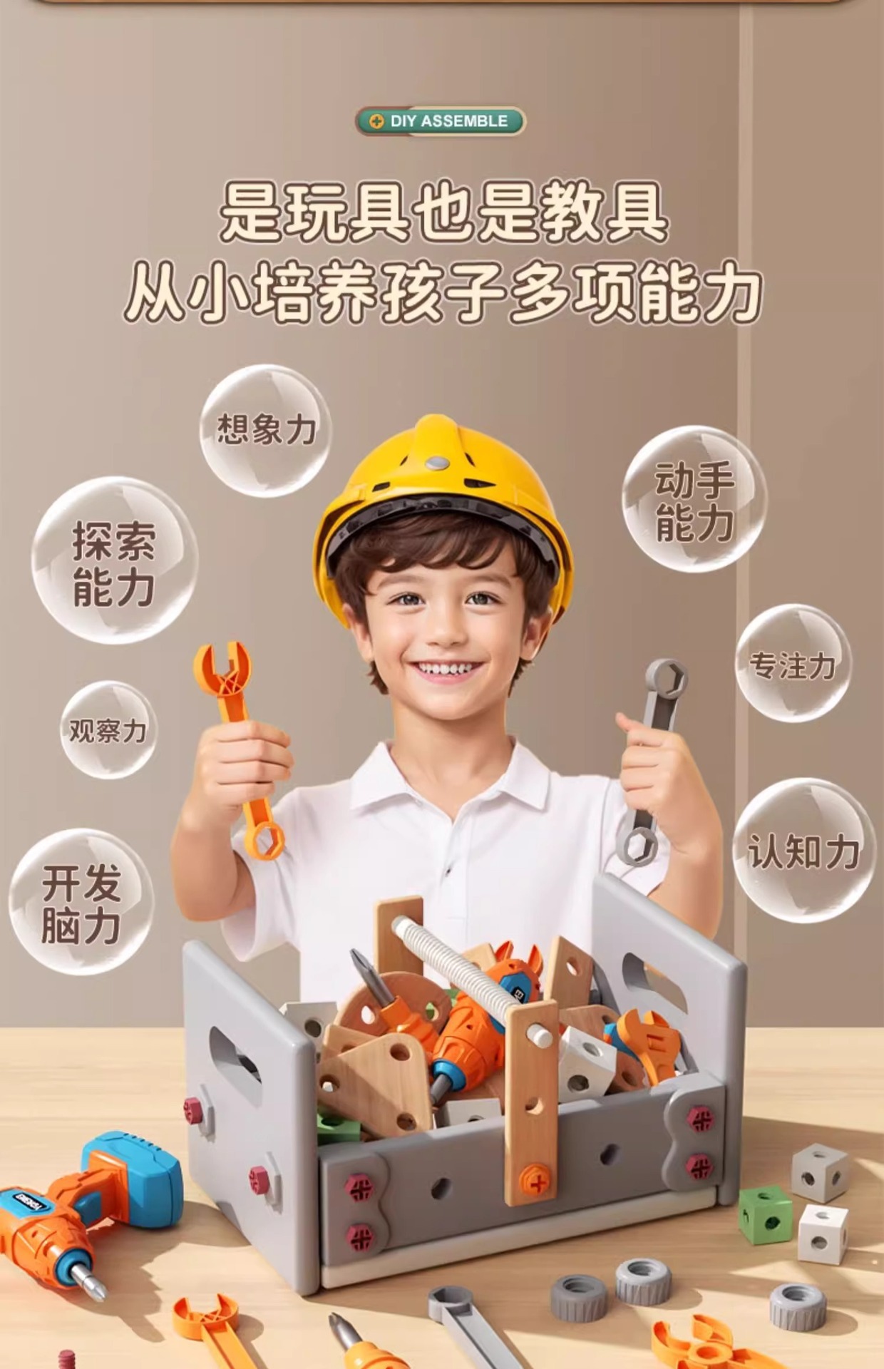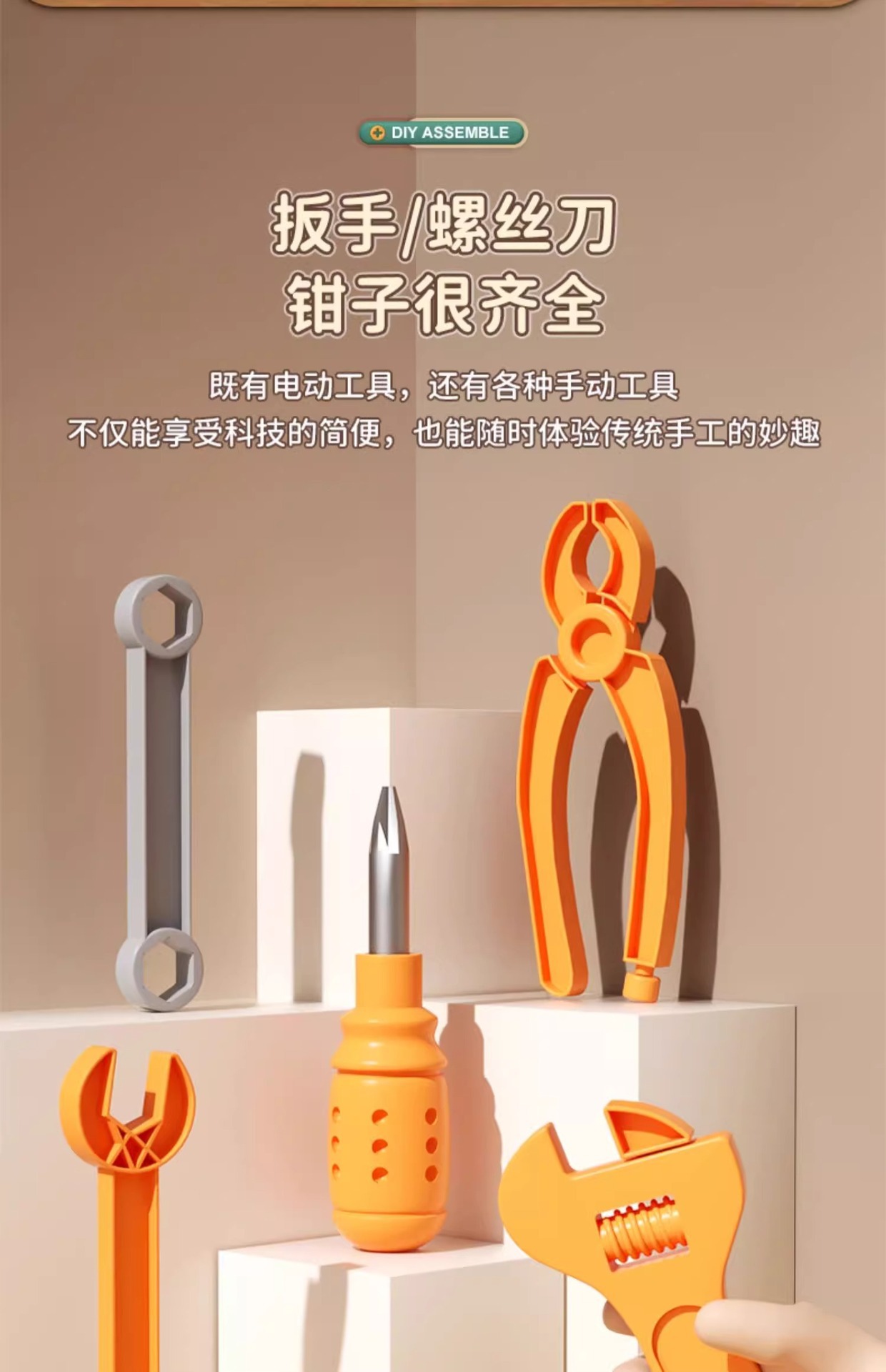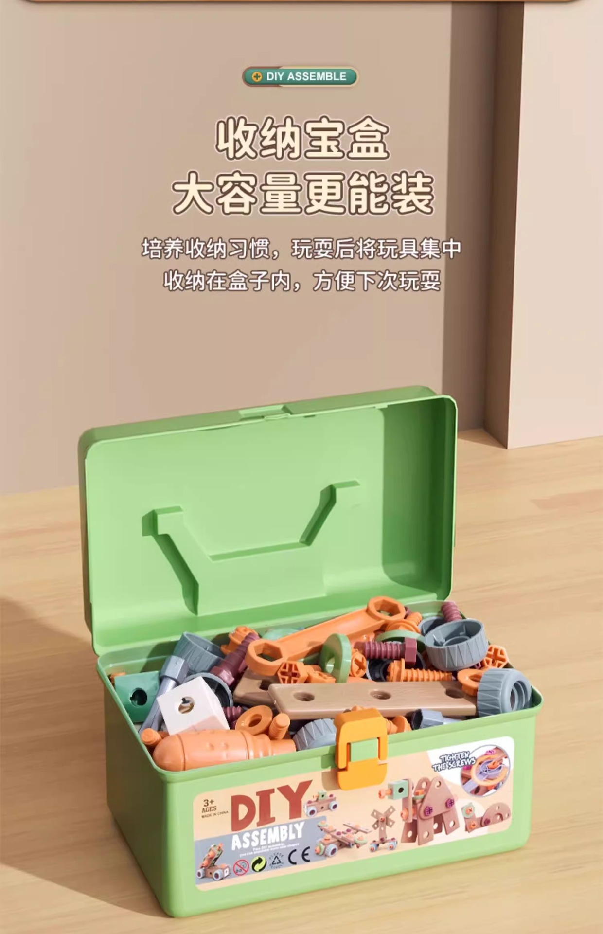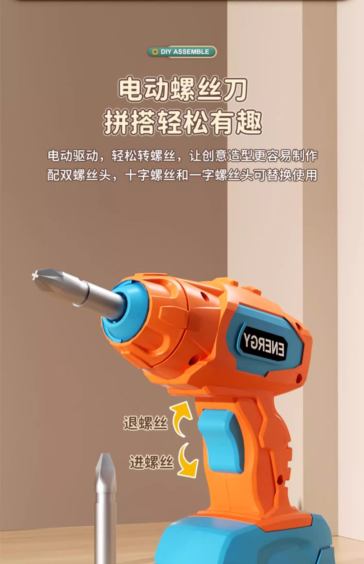 【过家家工具箱,百变造型螺母拼接!】儿童维修工具箱 3到6岁男孩动手拆装拧螺丝刀益智组装 修理玩具电钻-QQ