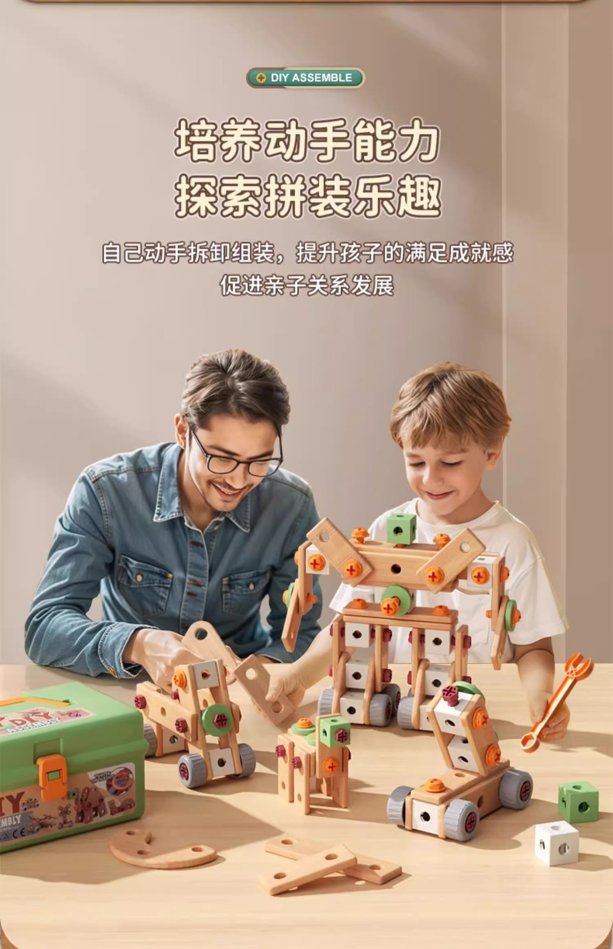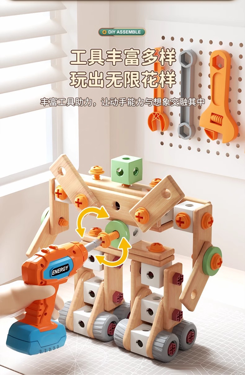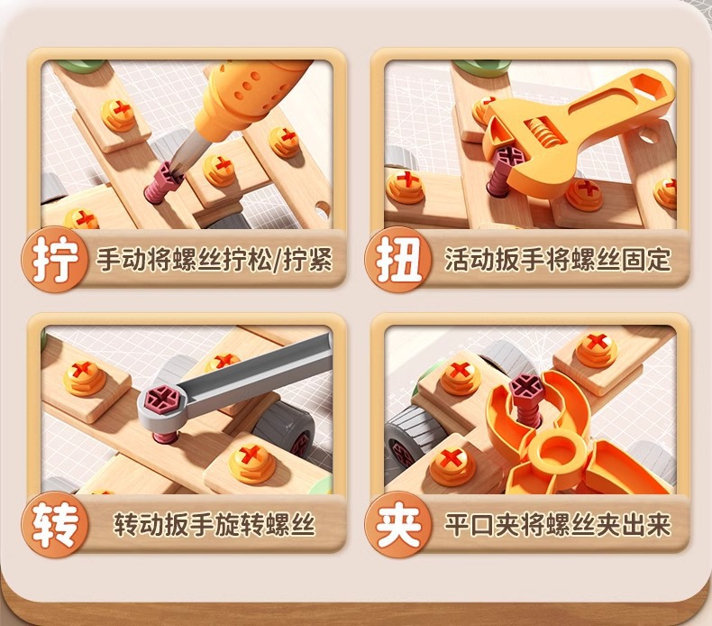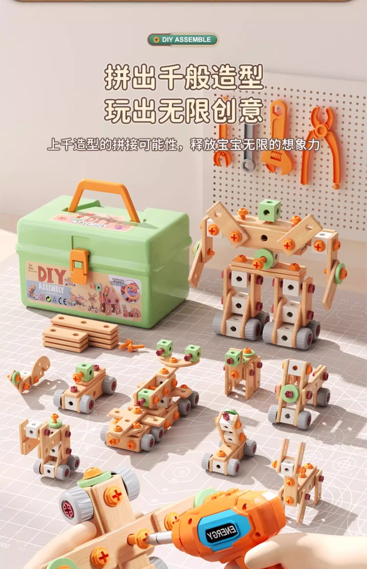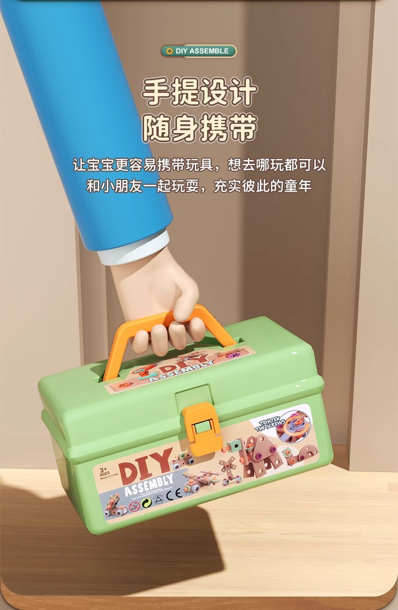【过家家工具箱,百变造型螺母拼接!】儿童维修工具箱 3到6岁男孩动手拆装拧螺丝刀益智组装 修理玩具电钻-QQ