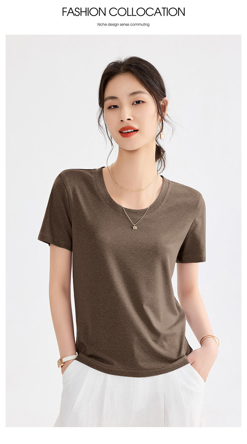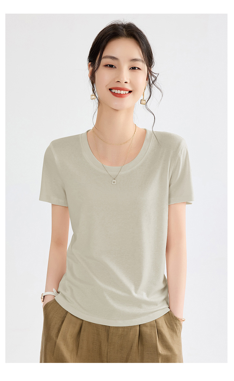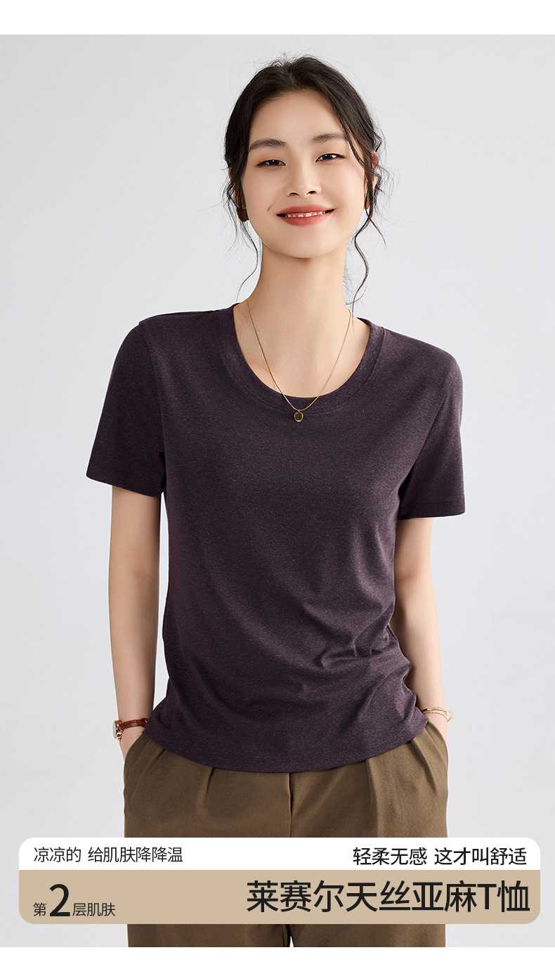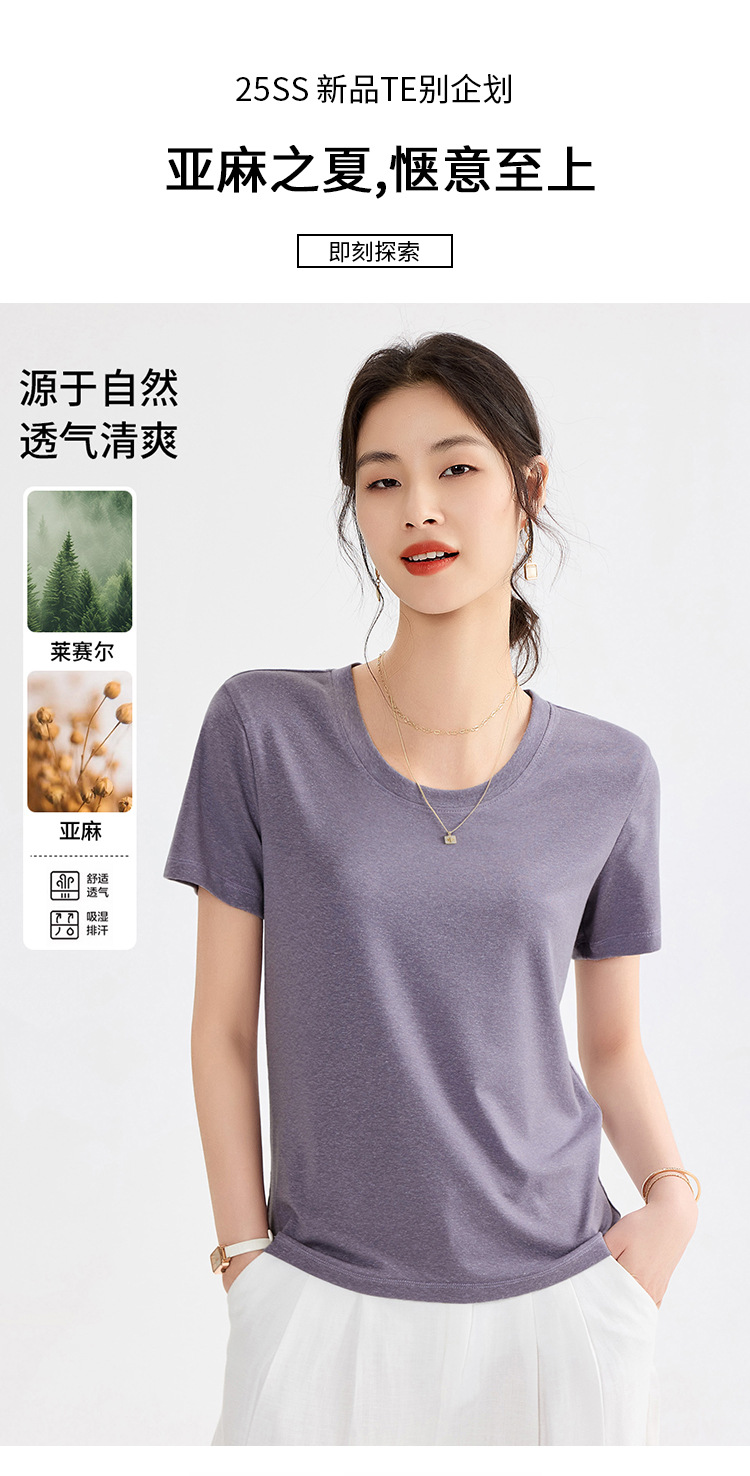 「自」全新升级【铂金会员109/天猫149/差价40】(20748)洛诗琳莱赛尔亚麻U领T恤2025夏季正肩显瘦小飞袖凉感上衣