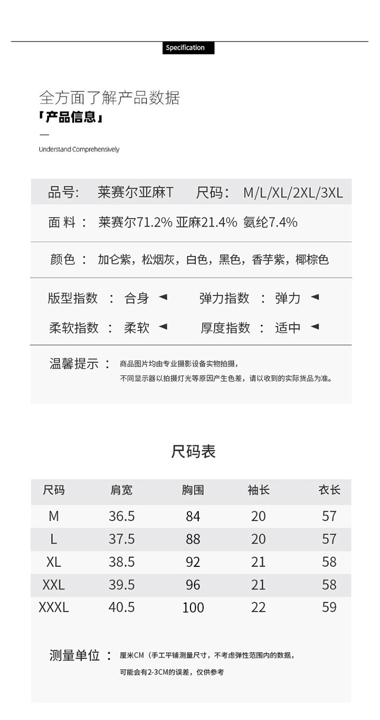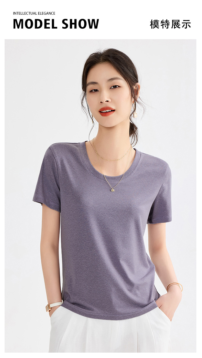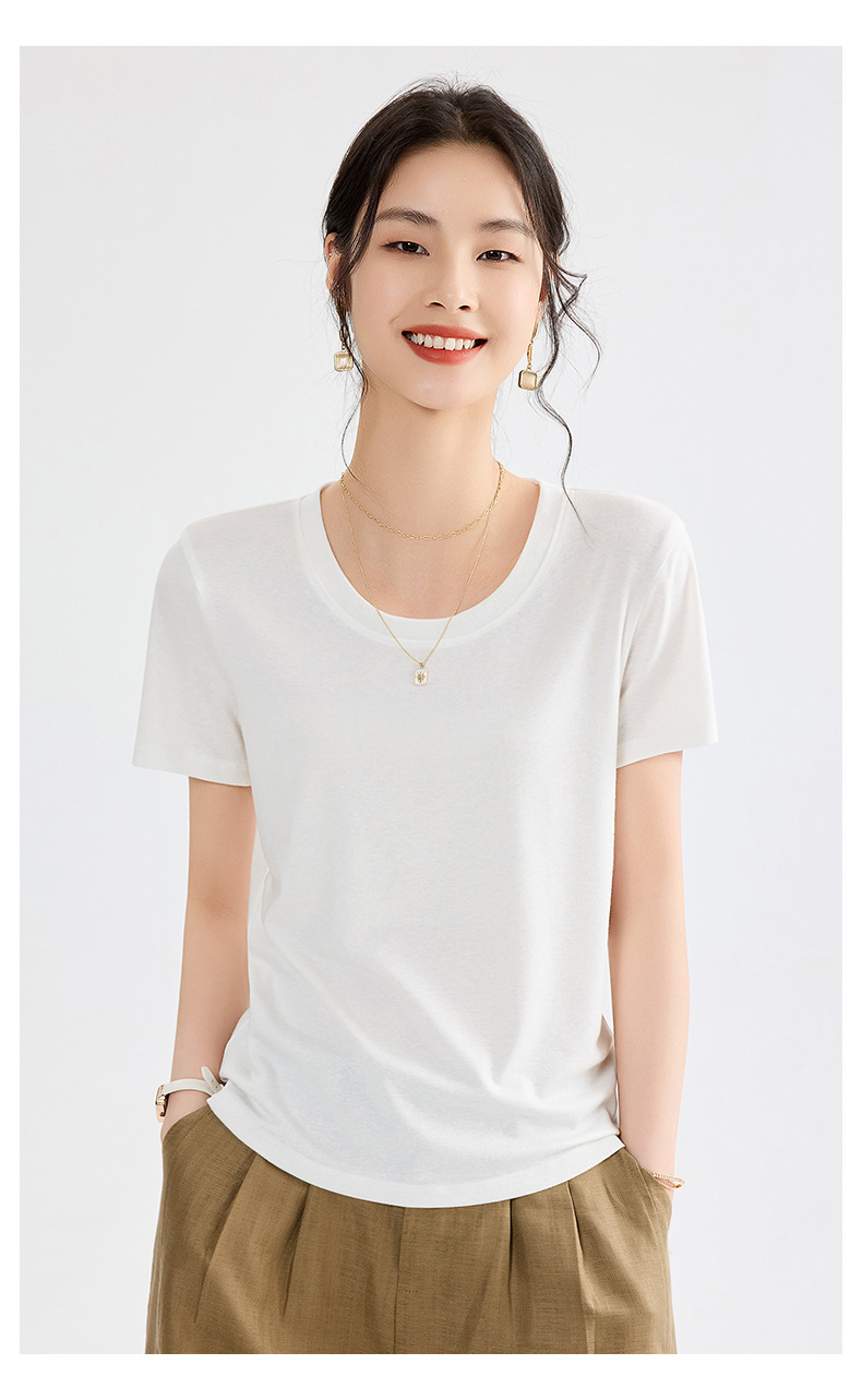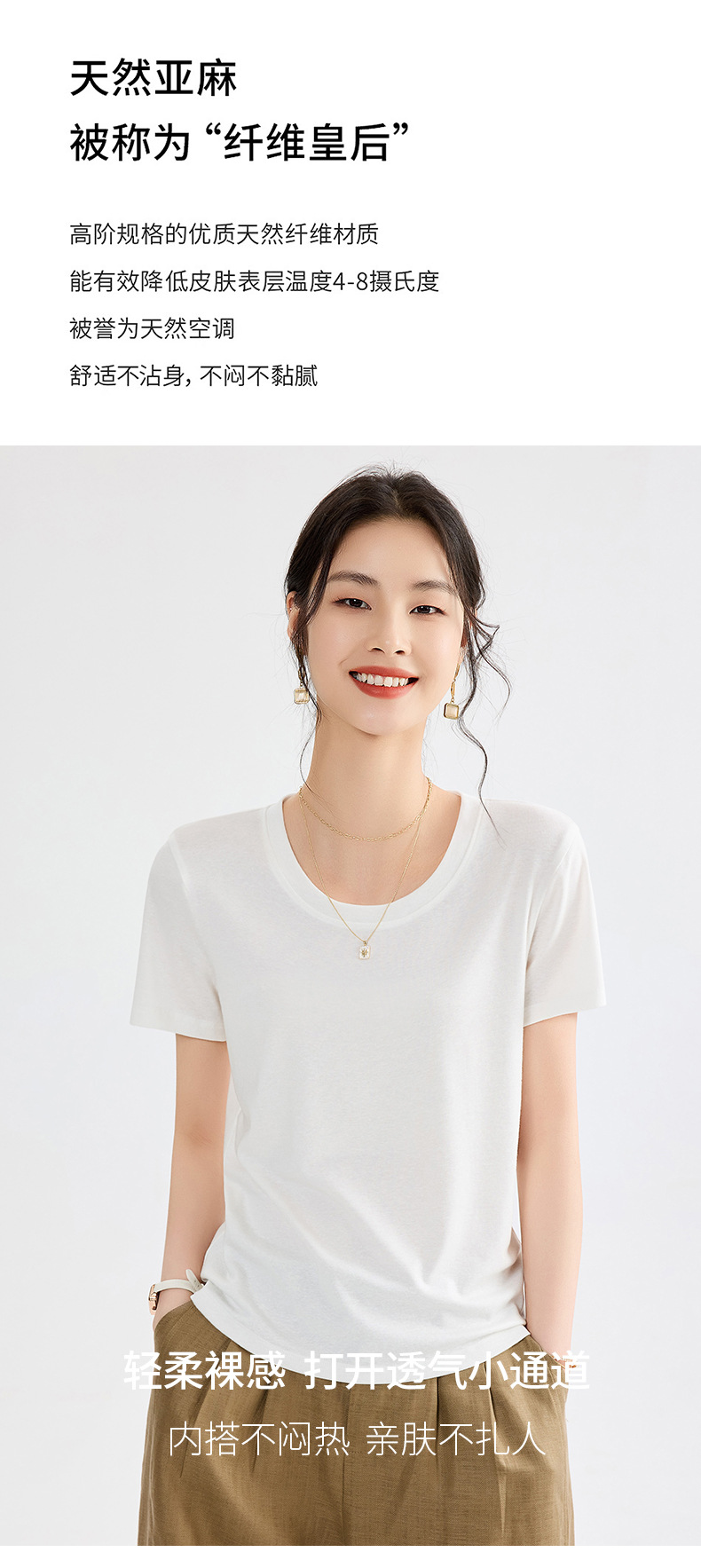 「自」全新升级【铂金会员109/天猫149/差价40】(20748)洛诗琳莱赛尔亚麻U领T恤2025夏季正肩显瘦小飞袖凉感上衣