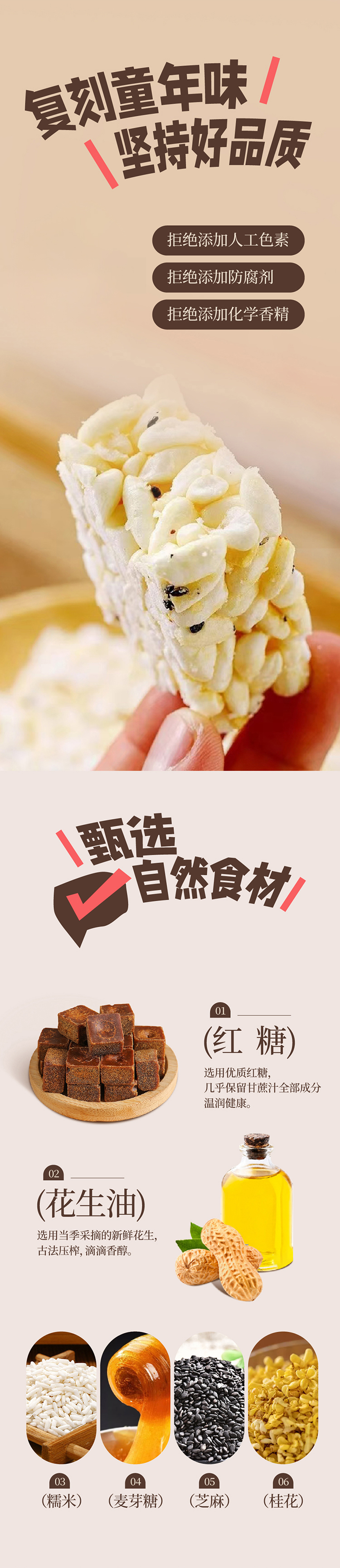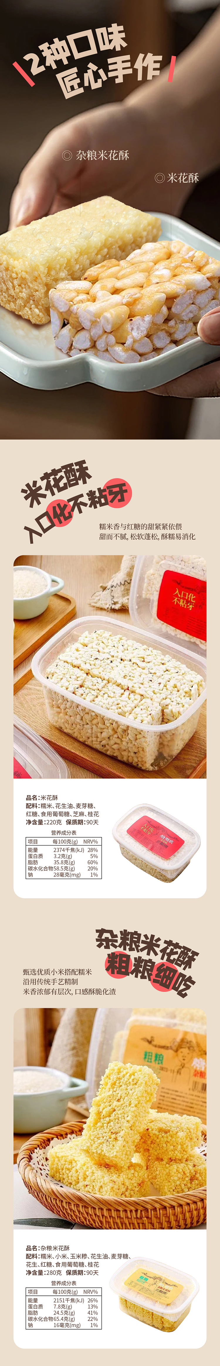 杂粮米花口感酥脆,快递运输易出现米花掉渣的现象,但不影响食用;介意者请慎拍,谢谢理解。