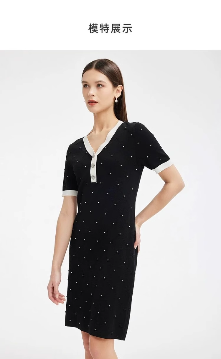 S1M1马天奴 V领钉珠针织连衣裙MRS612SWH0