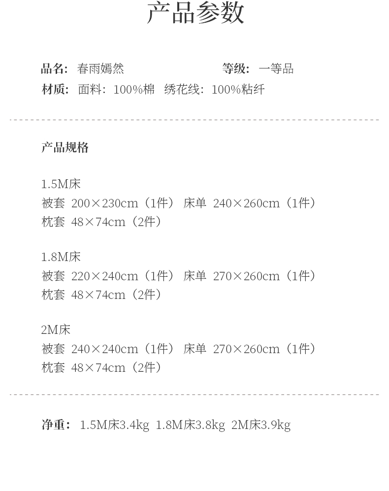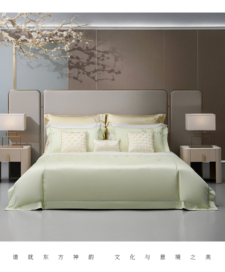 whinny/惠谊 新中式婉约100S新疆长绒棉全棉绣花四件套 春雨嫣然