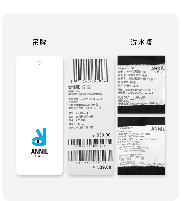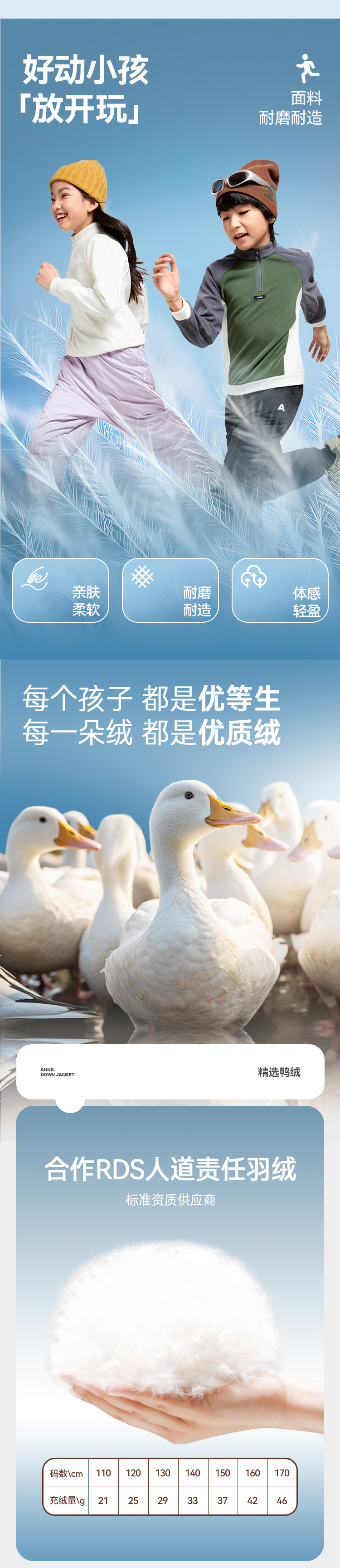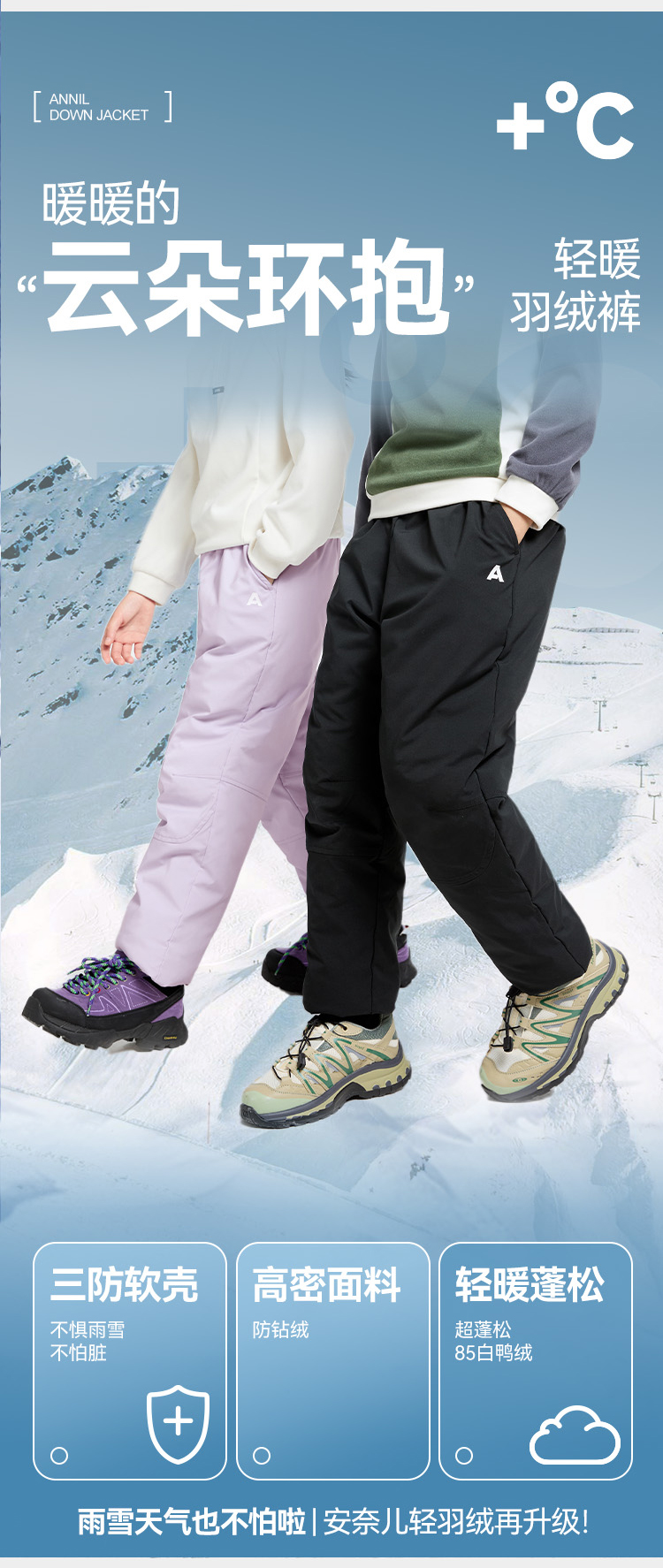 男女童全腰梭织羽绒裤冬季新款安奈儿童装EM446573