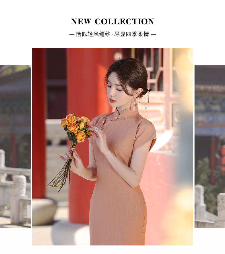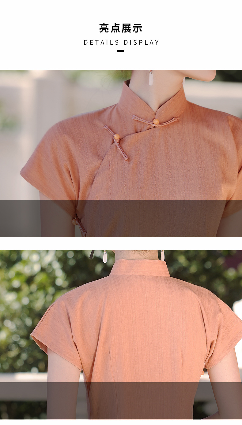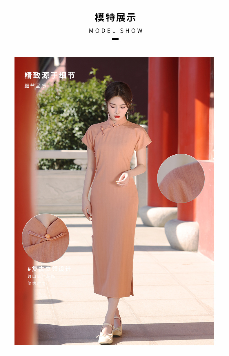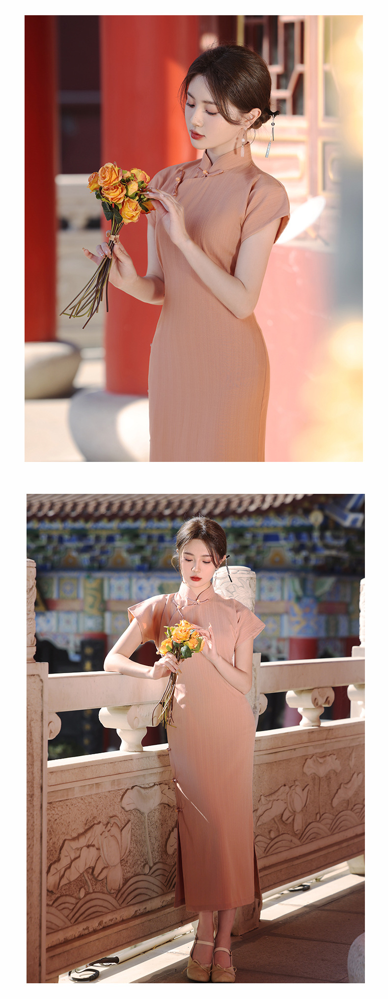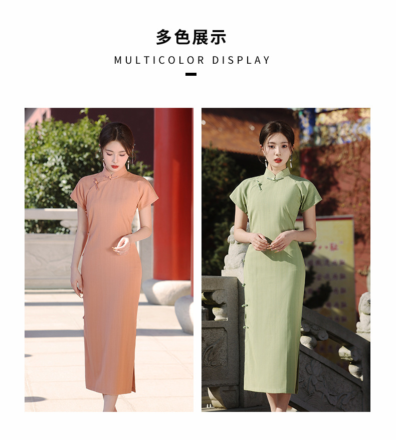 复古文艺平肩真襟棉麻,长款条纹花旗袍YG-2354