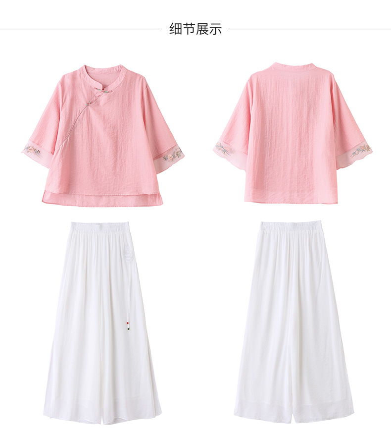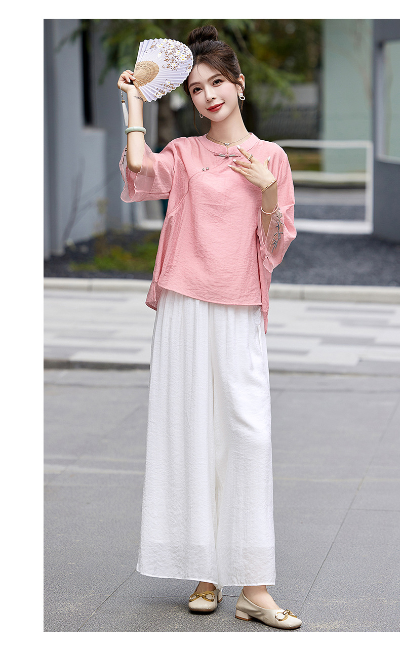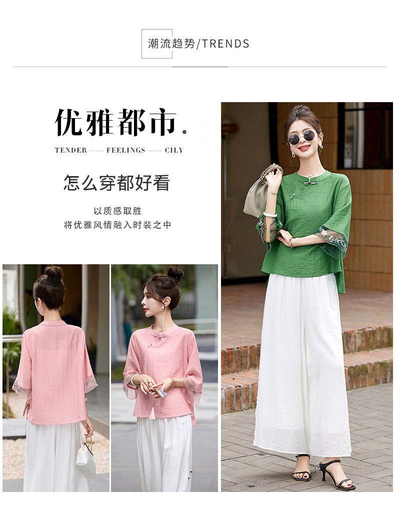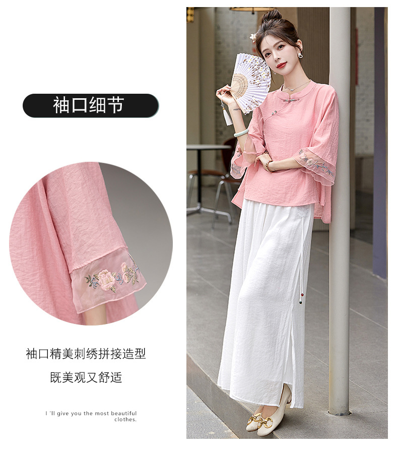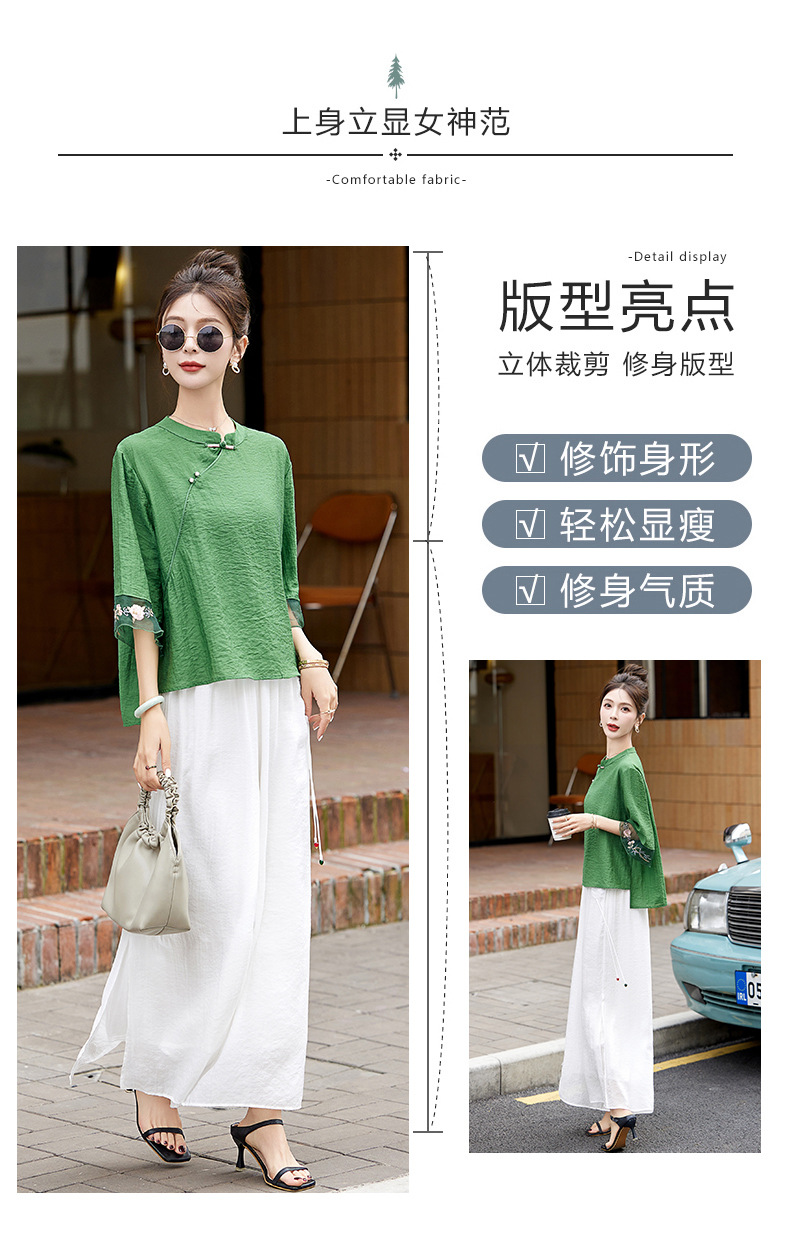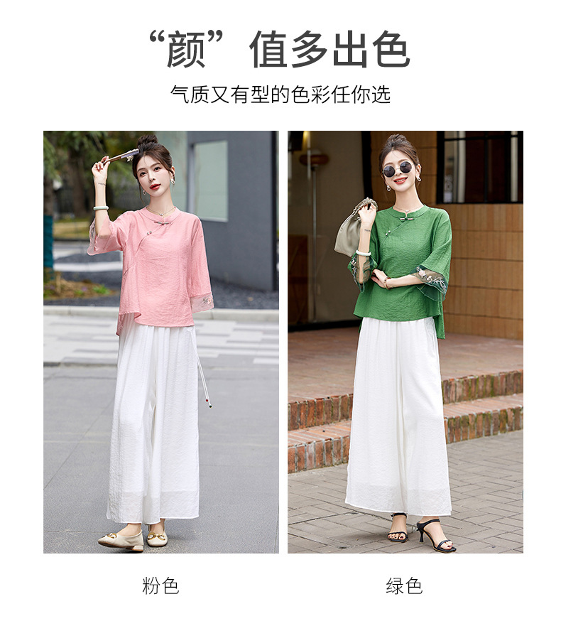中国风时尚天丝麻套装,宽松阔腿裤新中式两件套HR-MY8867