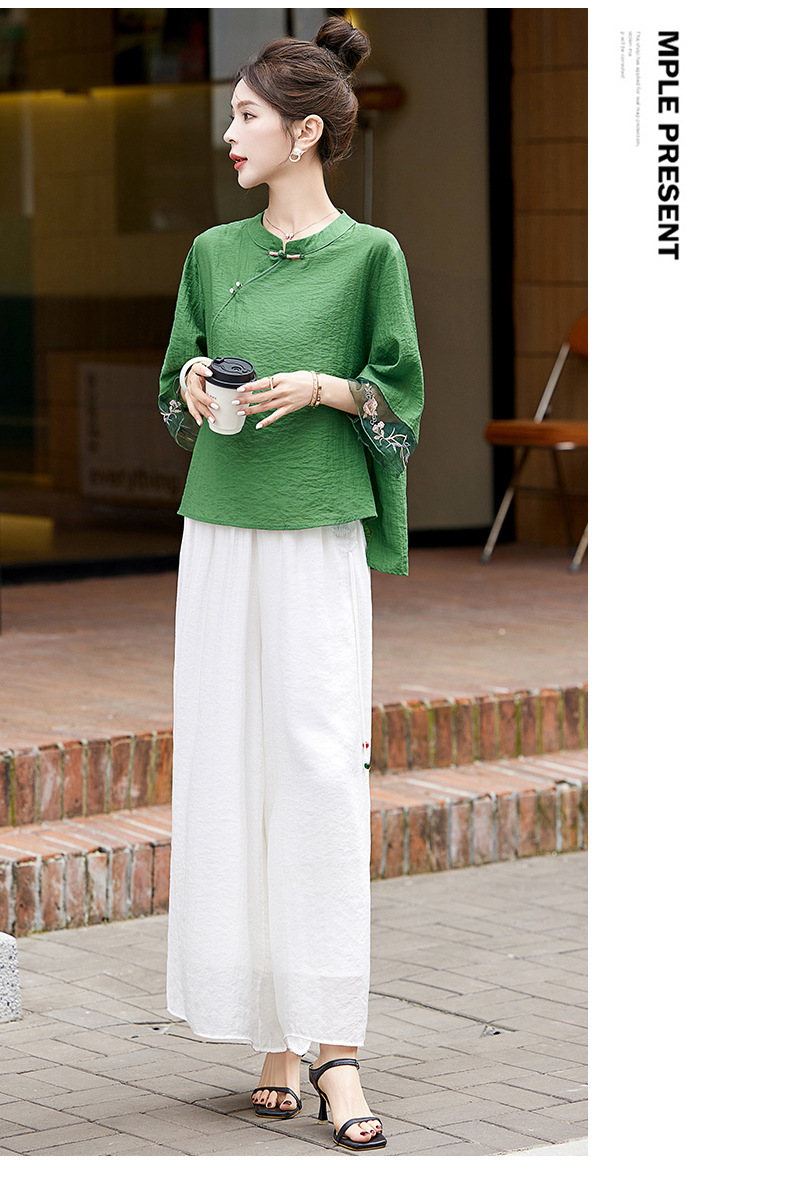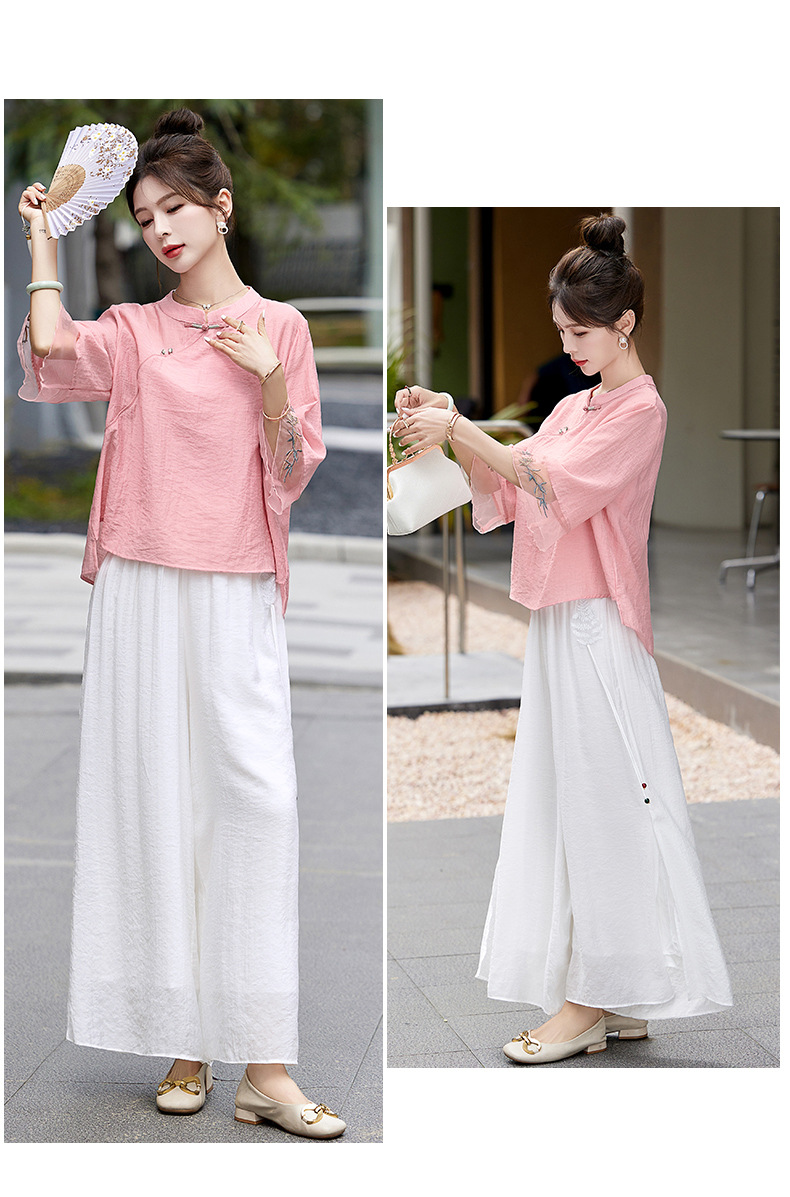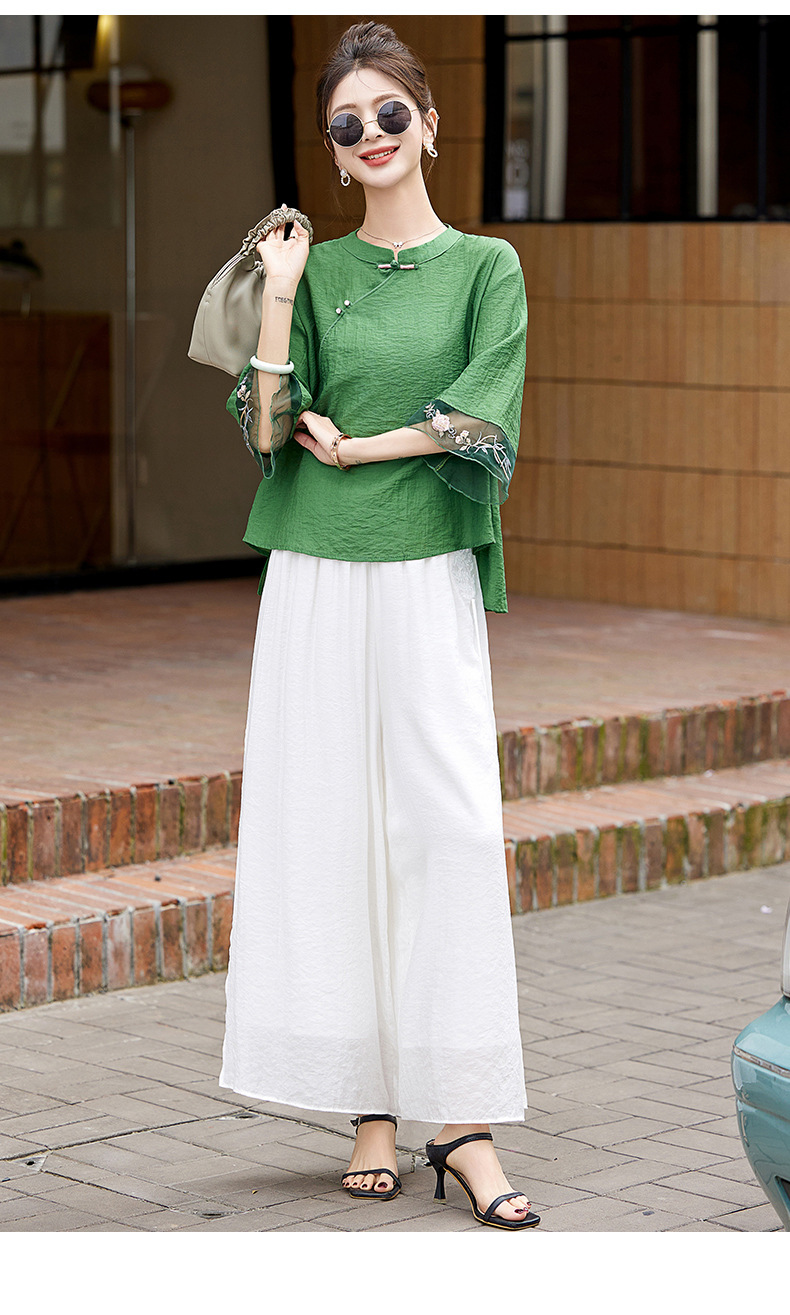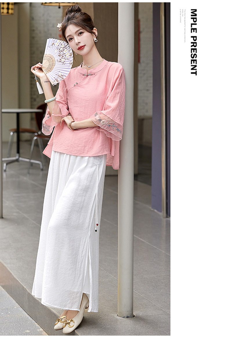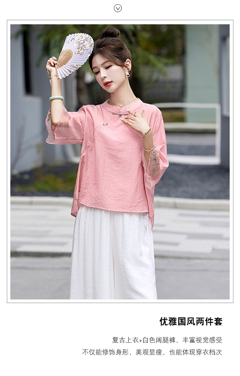 中国风时尚天丝麻套装,宽松阔腿裤新中式两件套HR-MY8867