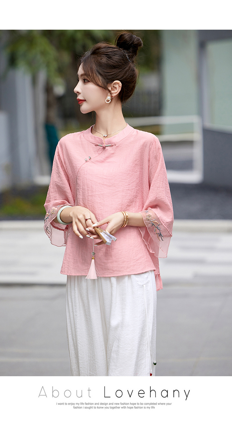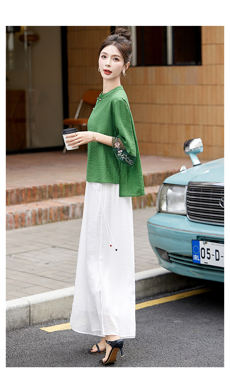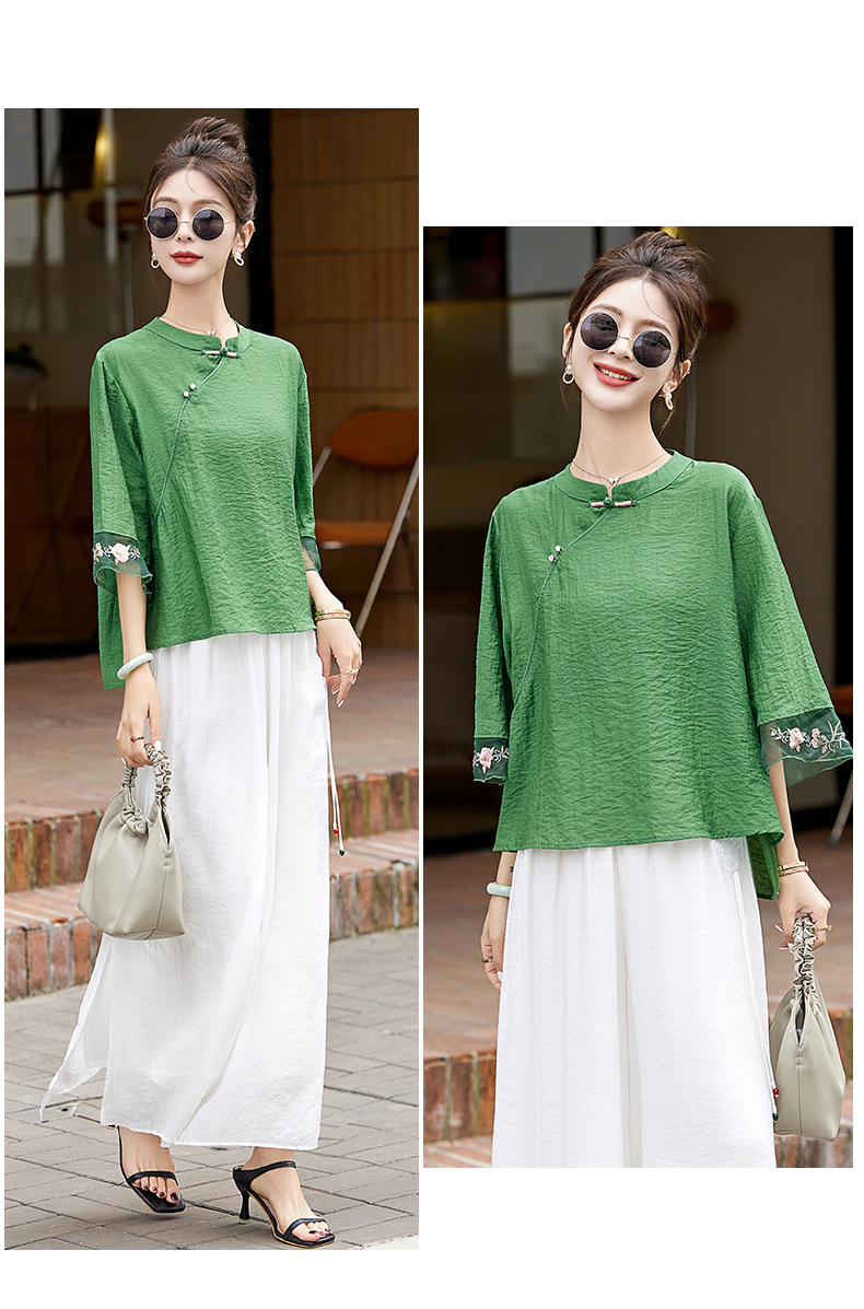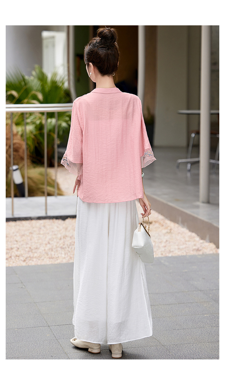 中国风时尚天丝麻套装,宽松阔腿裤新中式两件套HR-MY8867