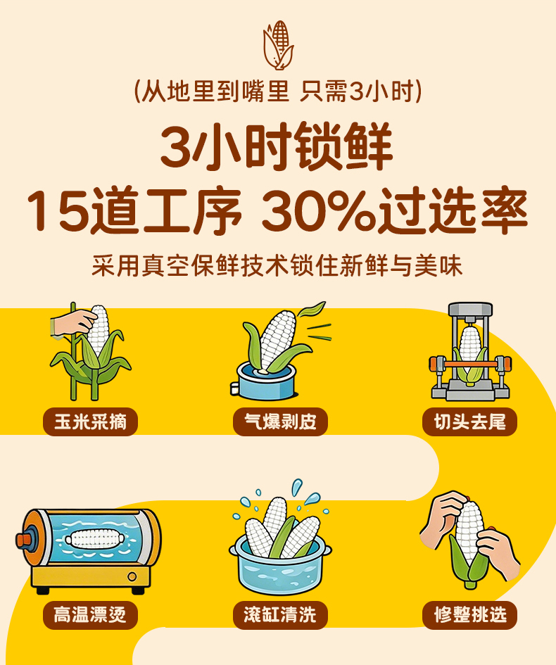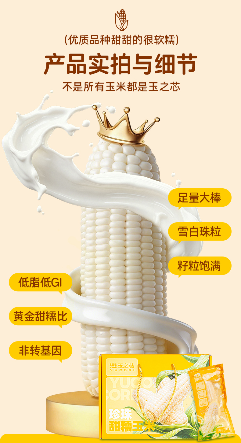 珍珠甜糯玉米 0糖认证 糖友/孕妈/减脂期都能吃 非转基因 配料表只有玉米 自然生长120天 3小时真空锁鲜