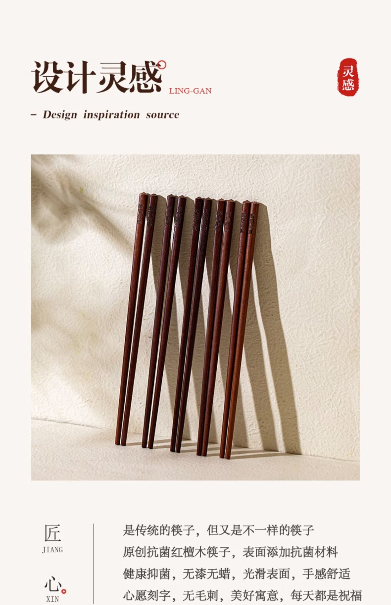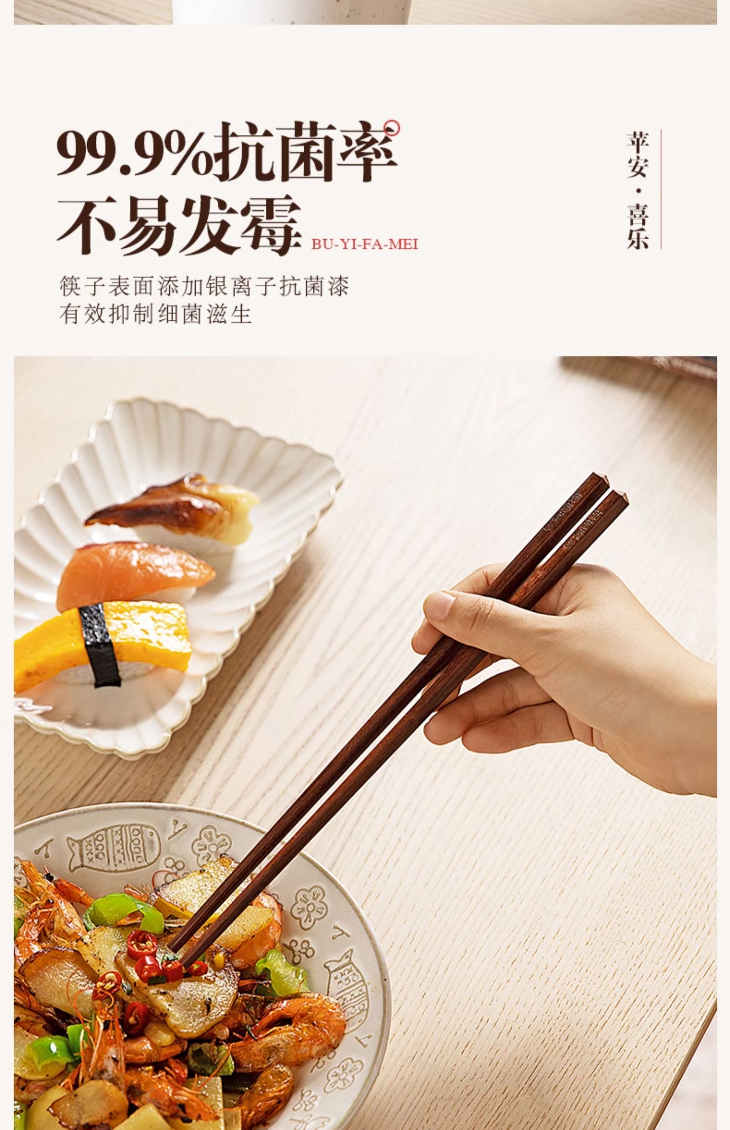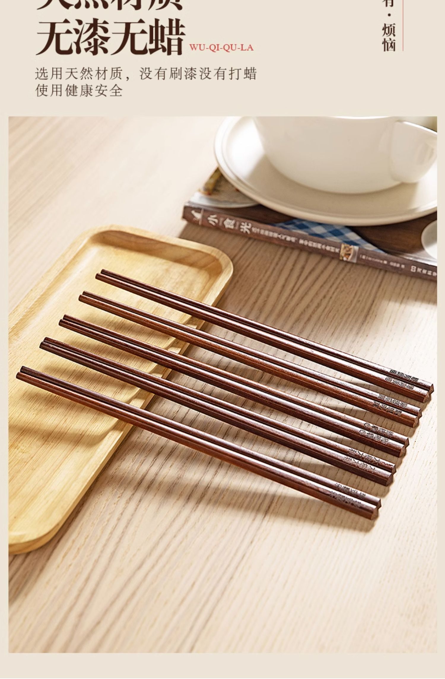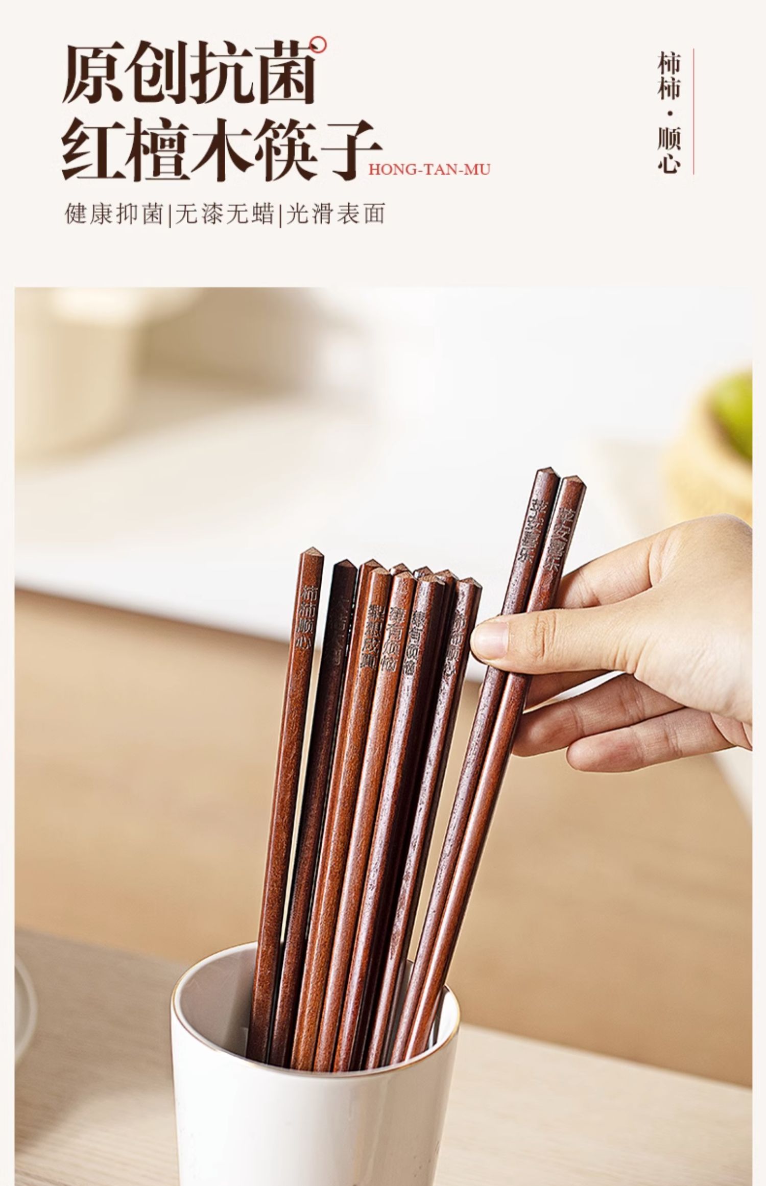 摩登主妇许愿抗菌红檀木筷子套装家用一人一筷木质原木实木筷子
