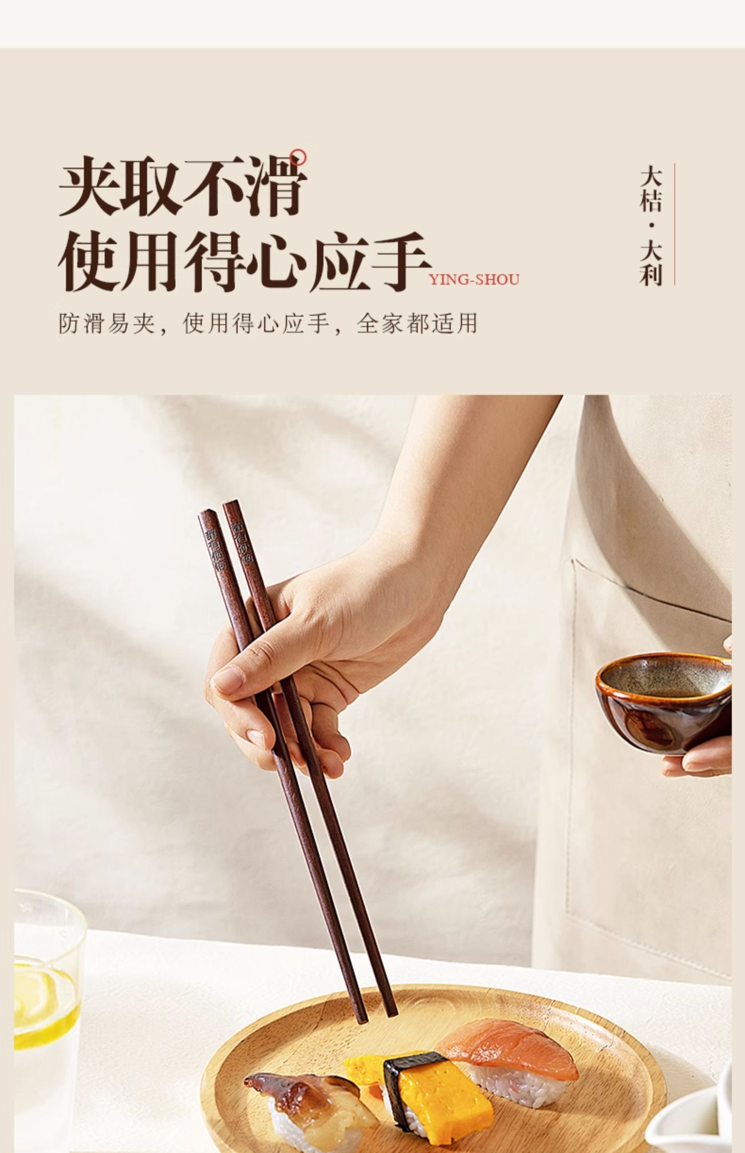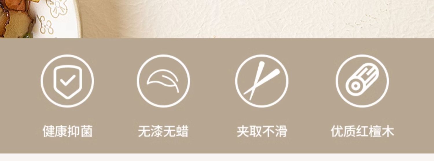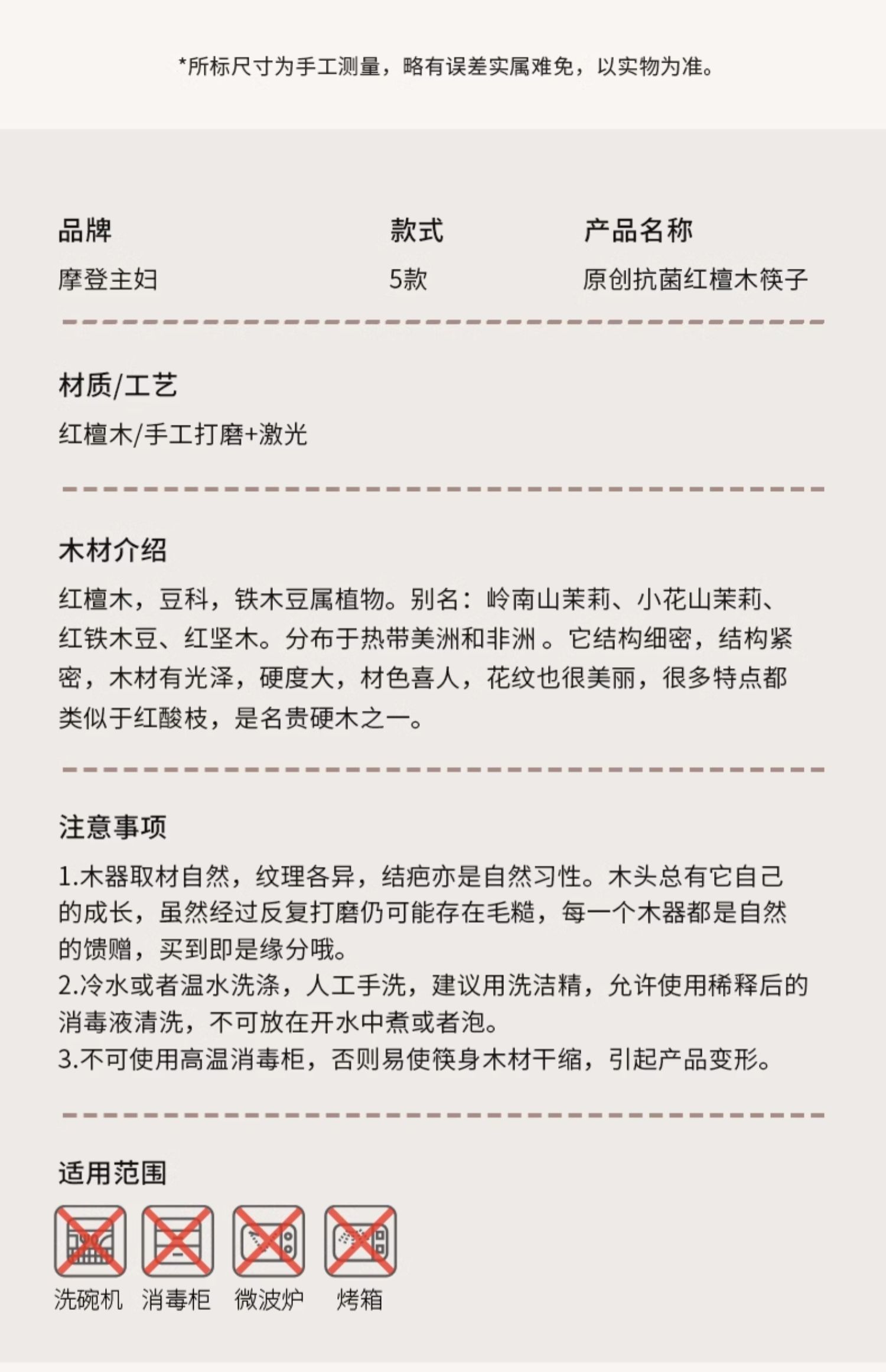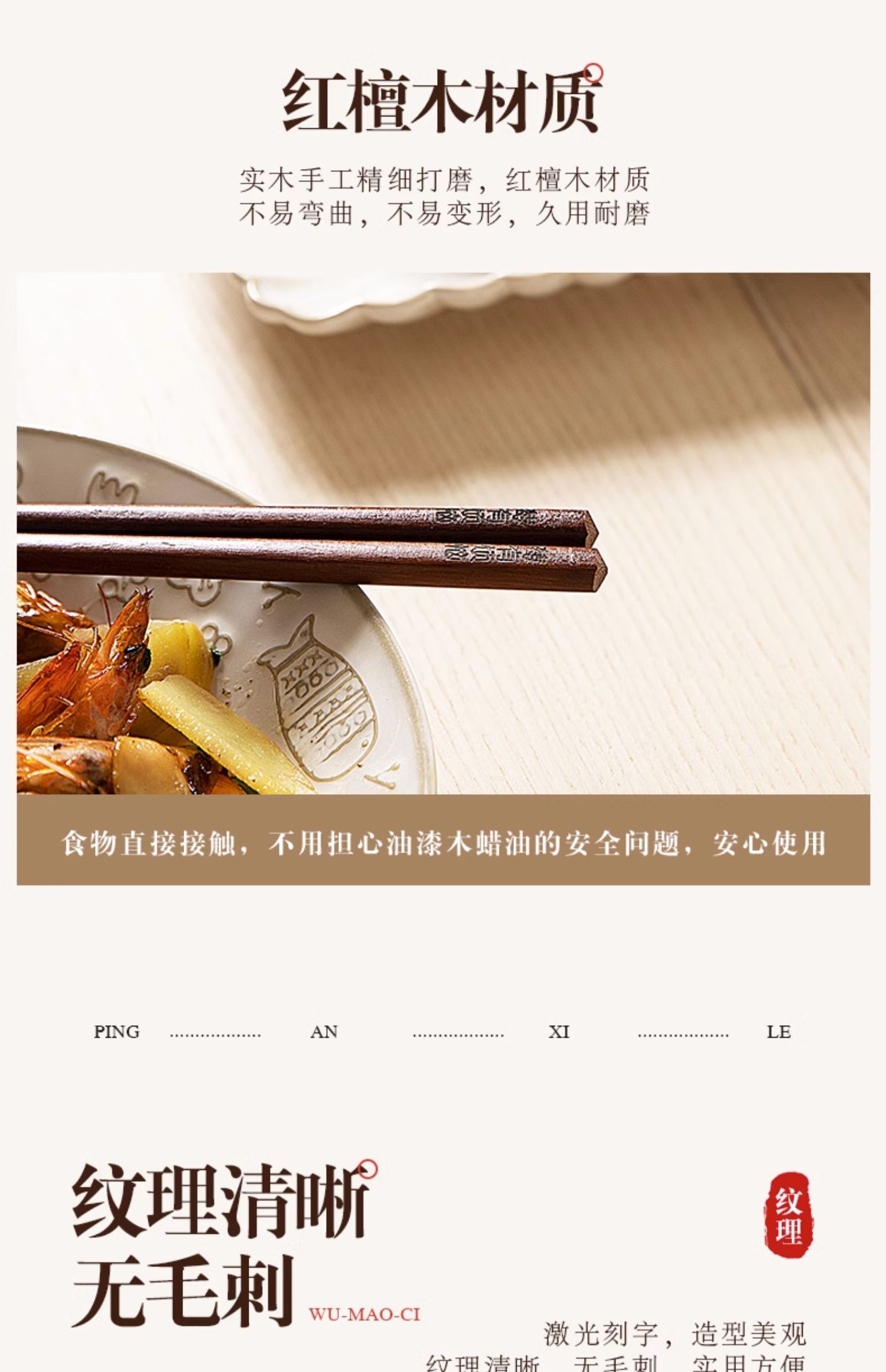 摩登主妇许愿抗菌红檀木筷子套装家用一人一筷木质原木实木筷子