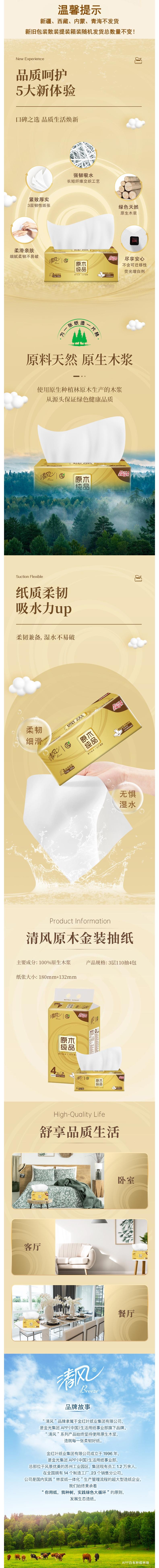 清风 金装原木纯品抽纸3层110抽4包*4提 BRM-4B4T-JC