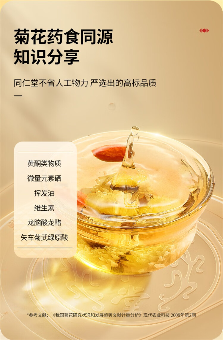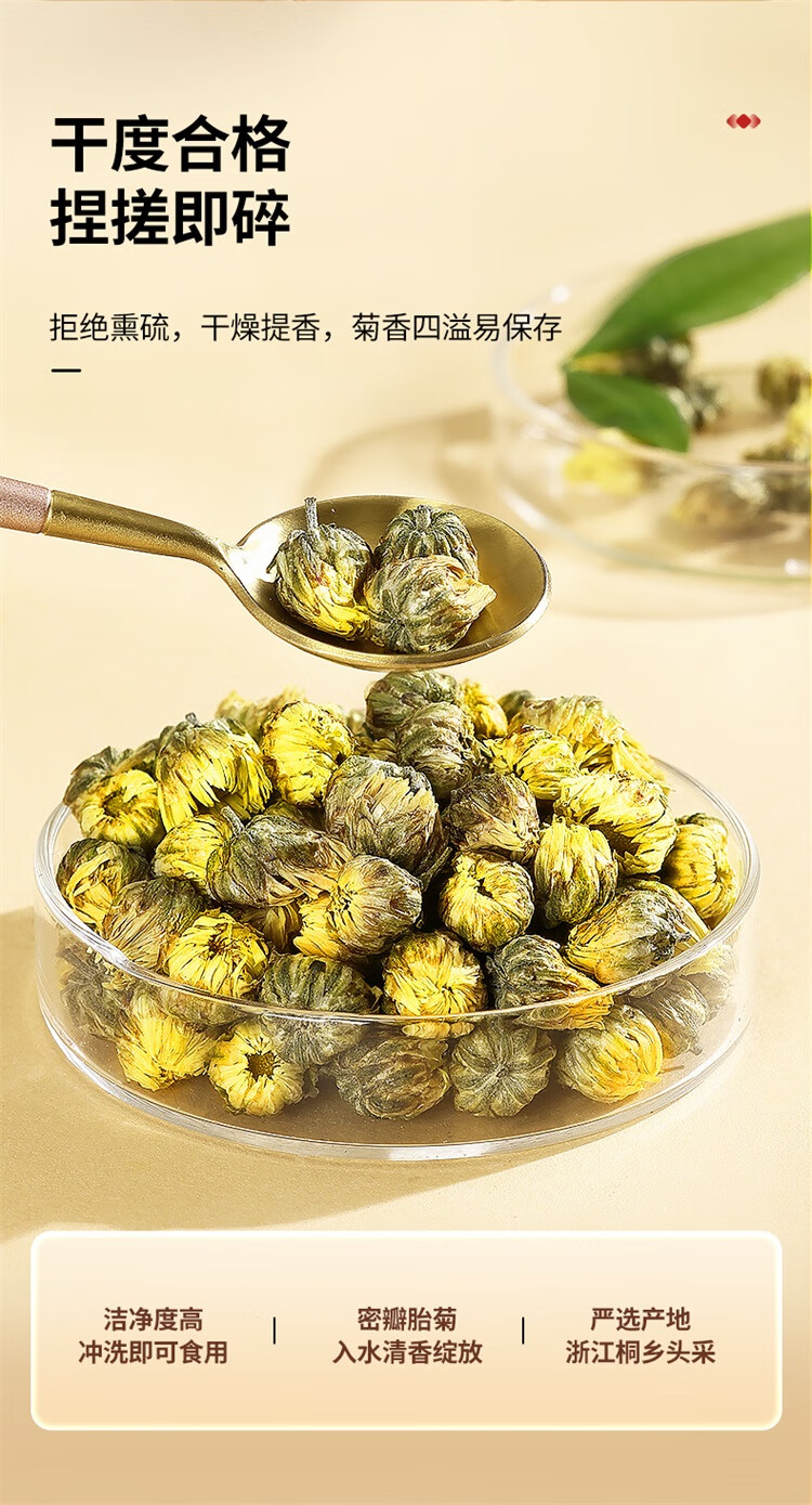【正宗同仁堂品牌】北京同仁堂 青源堂 胎菊100克 浙江桐乡 人工采摘 花朵饱满 久泡不易散 拒绝熏硫 SY