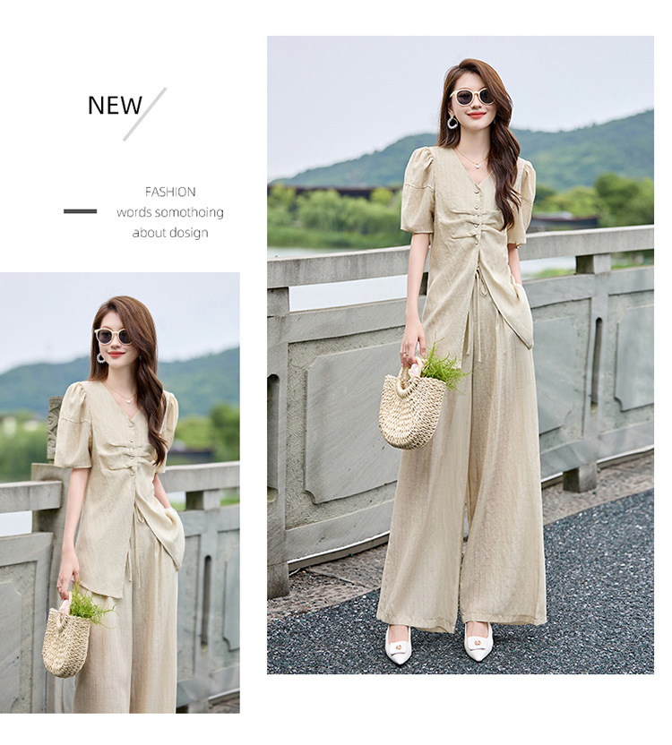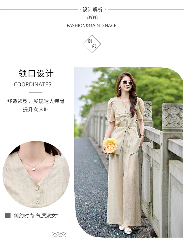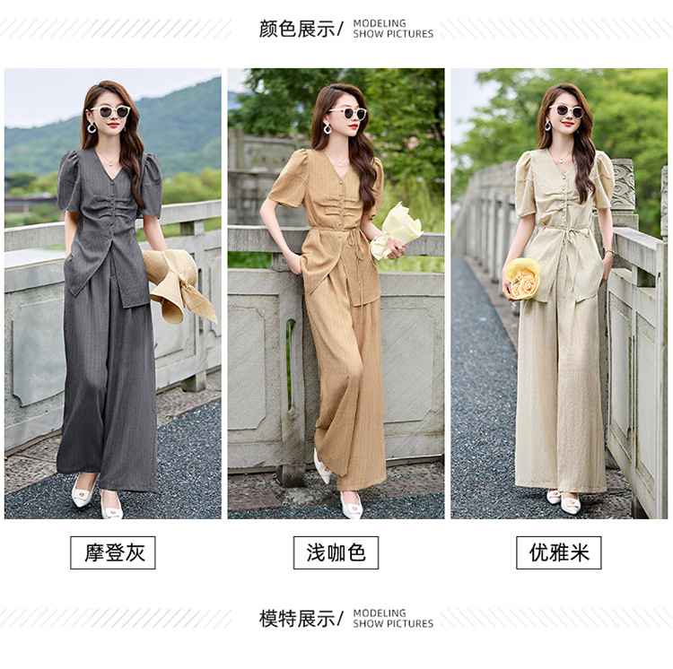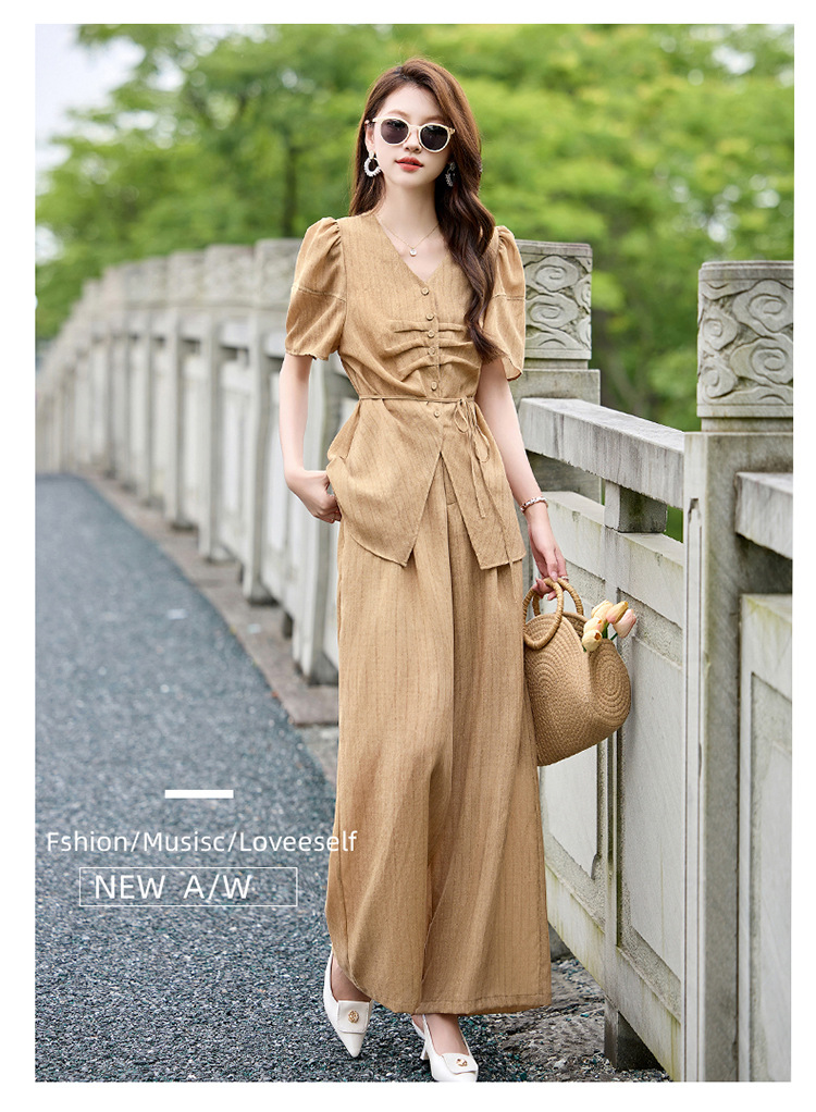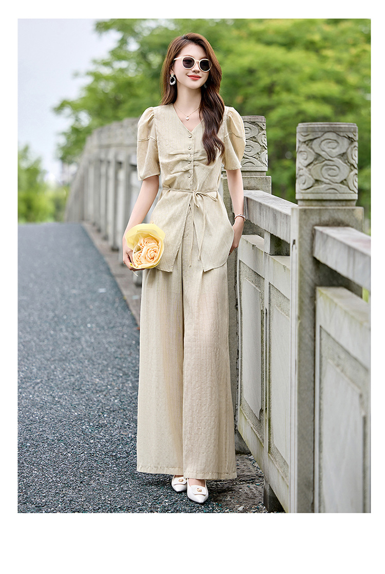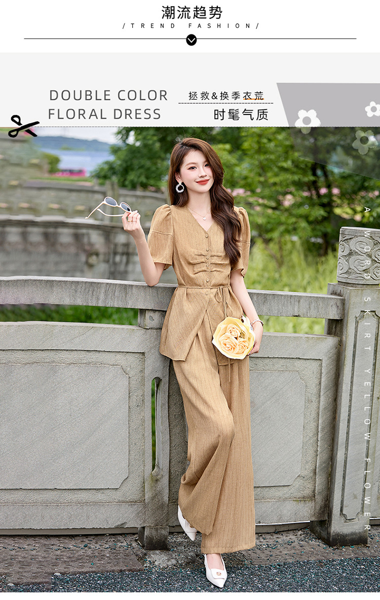 HR SNX2993舒适领型气质淑女腰部系带宽松两件套
