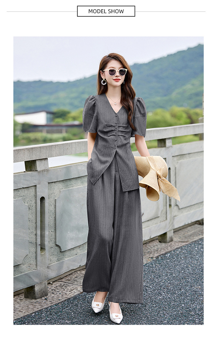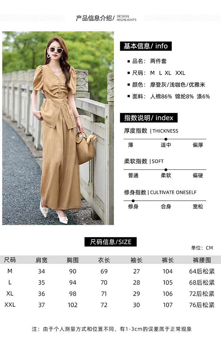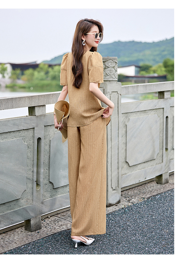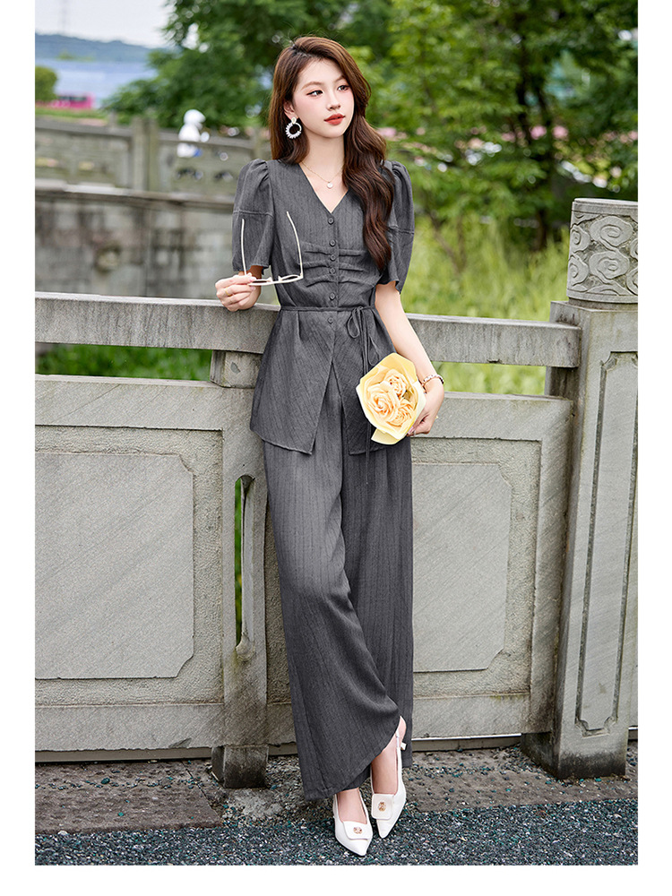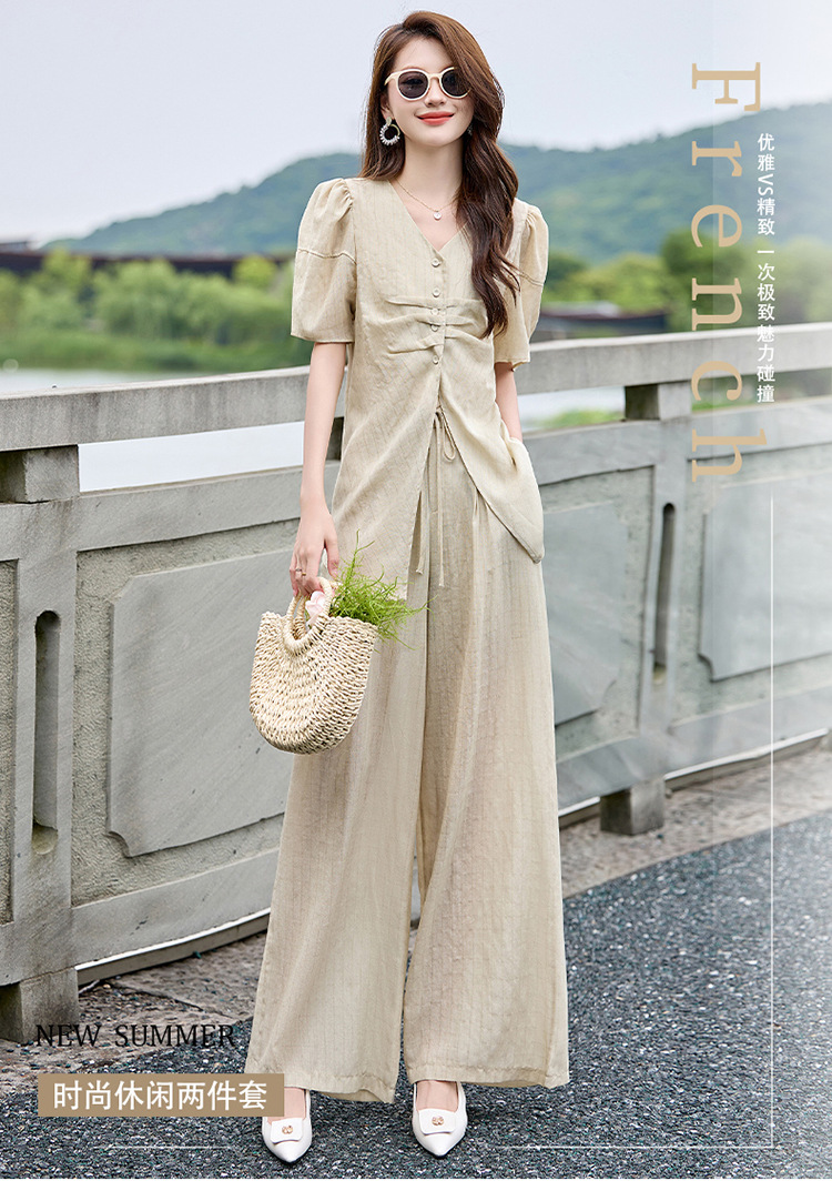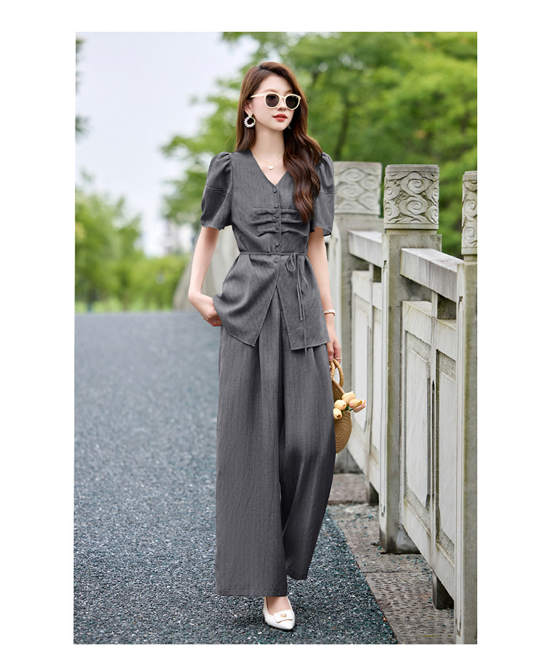 HR SNX2993舒适领型气质淑女腰部系带宽松两件套