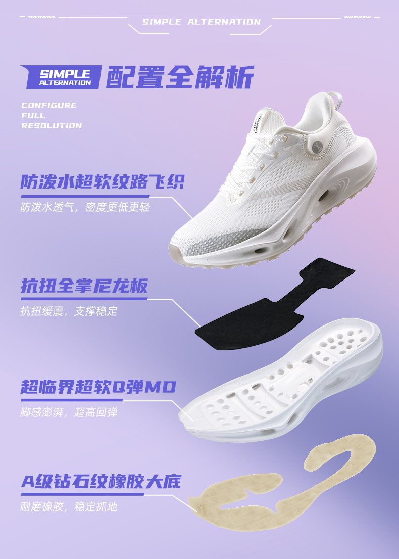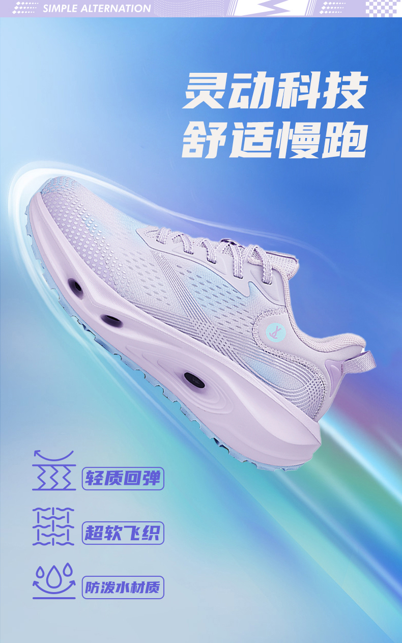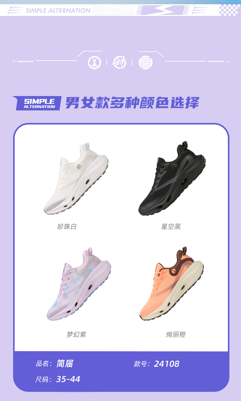 温馨提示:简届灵动1.0全掌碳板运动跑鞋为男女同款,其中梦幻紫为女款