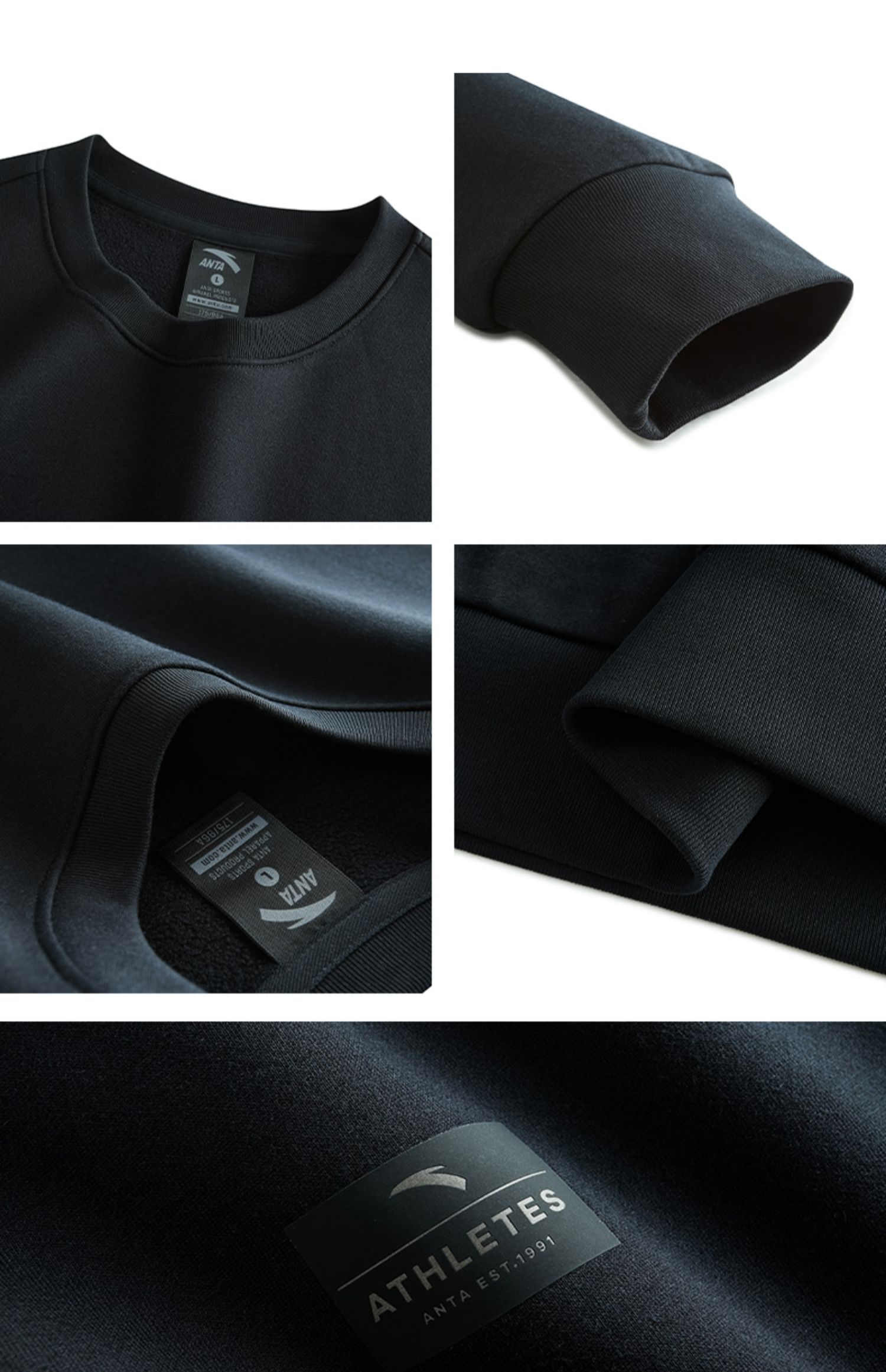 【M断码】安踏加绒保暖套头卫衣男士冬季新款纯色简约运动服上衣152447729N【无货退款】
