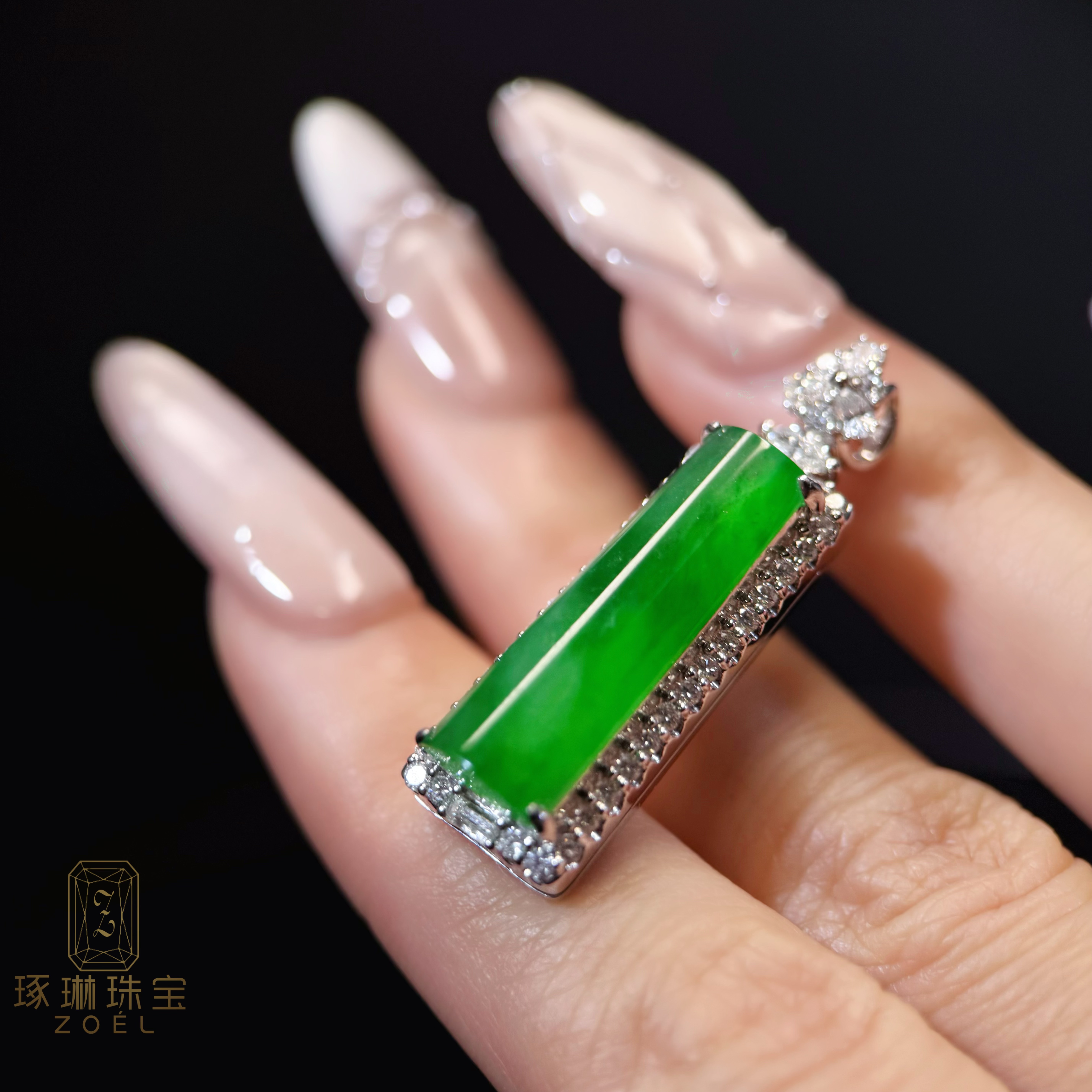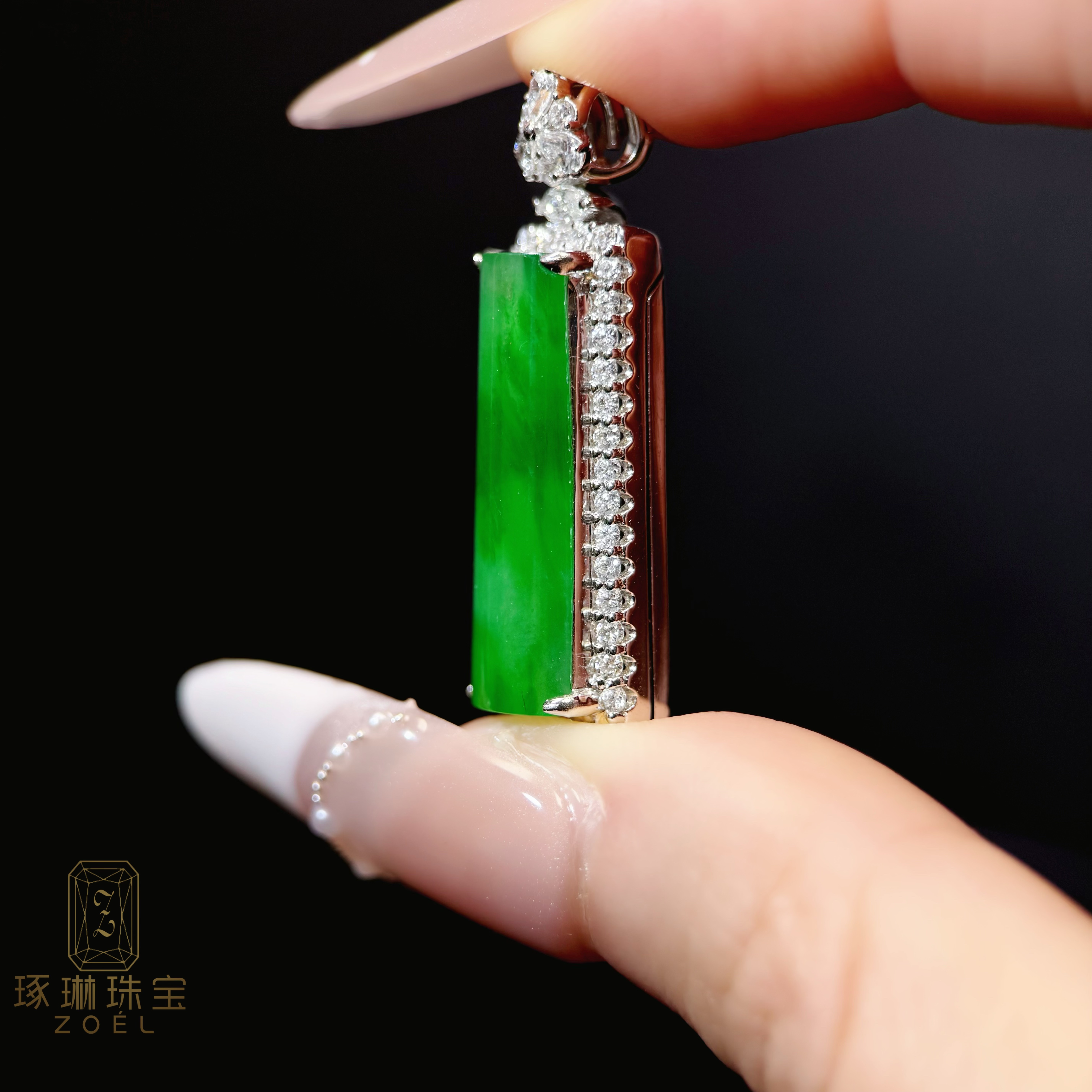 琢琳珠宝18K翡翠「绿意森林」阳绿无事柱