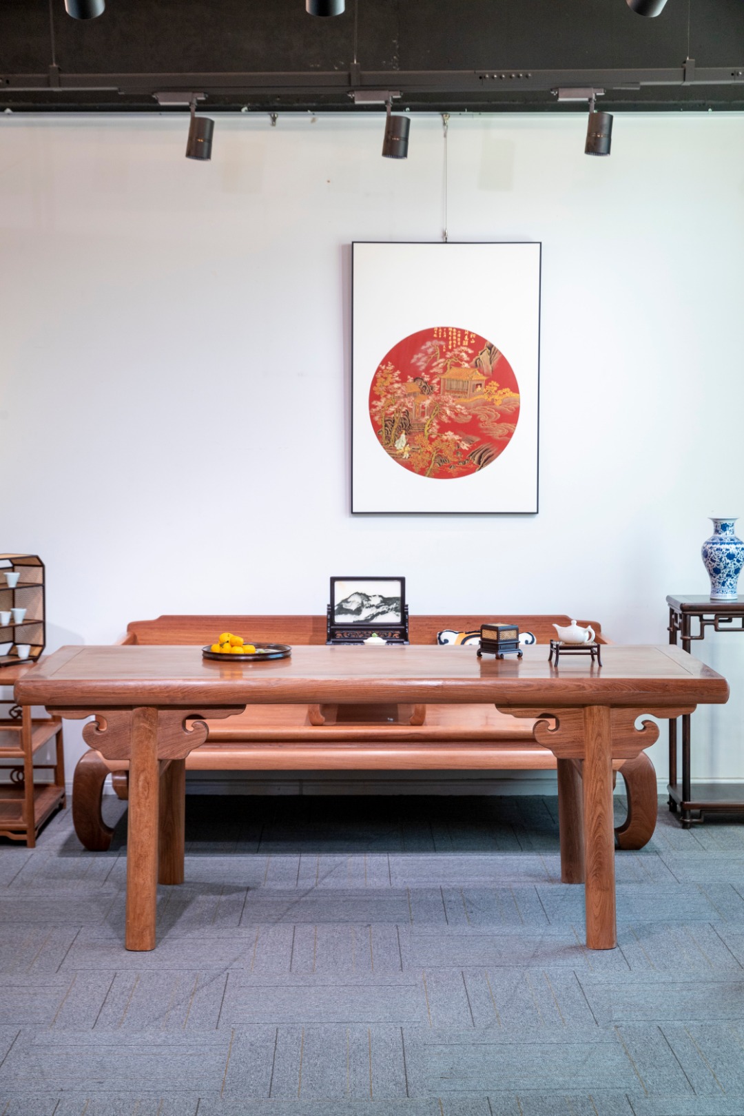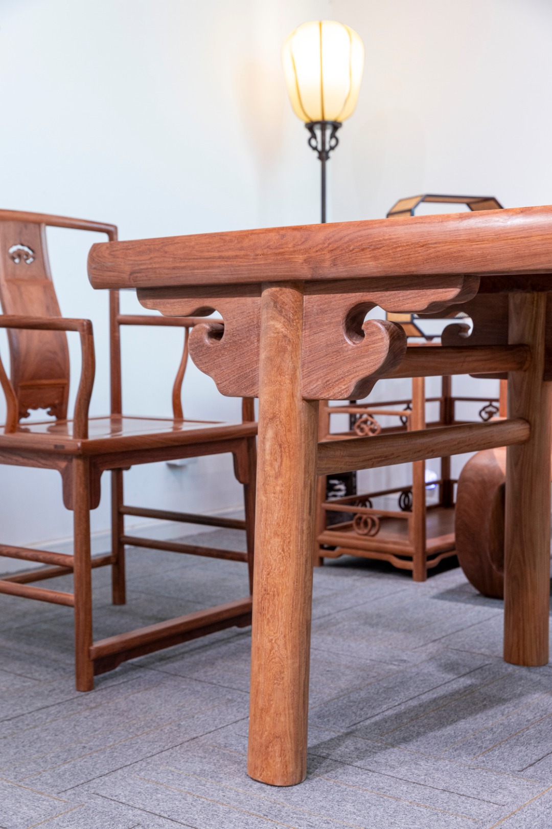 小炕几42.5*69*23cm 216 厚重版圆腿 画案:215*89*83cm S背如意矮南官帽椅: 58.5*47.5*48cm/总高96cm 75 如意卡子花 茶水架 :75*37.5*65cm 小叶紫檀 茶棚·茶水柜/博古架:33*17.2*43.8cm 酸枝 嘉木堂升降式灯台 宫灯:24*29*151/最高205cm(可升降) 酸枝 90 颐和园圆腿 花架:41*41*90cm(单个) 紫光檀 35 云石插屏:34.5*14*30cm
