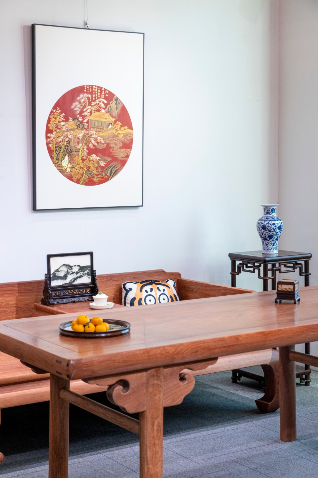 216 厚重版圆腿 画案:画案原型见于中国嘉德2010年春拍“家青制器 创作十五周年”专场,成交价190.4万元人民币。系王世襄先生的入室弟子田家青先生2001年设计制作,收录于《明韵:田家青设计家具作品集》。