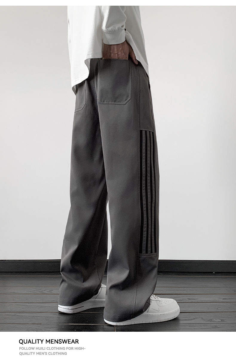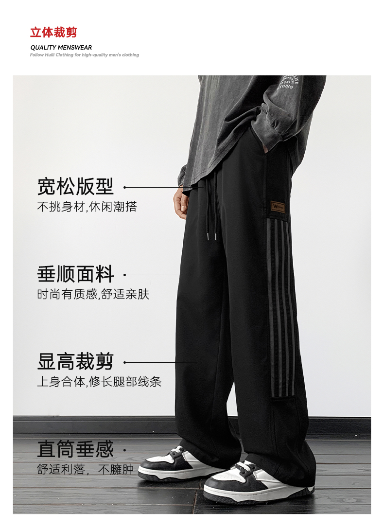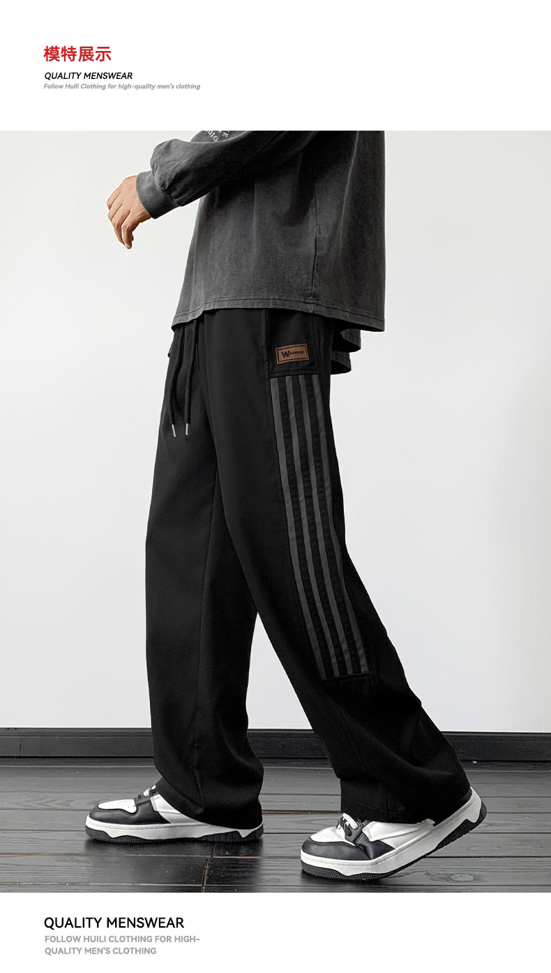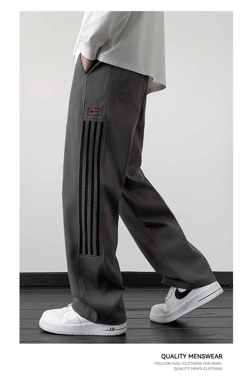 回力裤子男秋季2025新款阔腿条纹工装裤男美式宽松直筒休闲裤男款