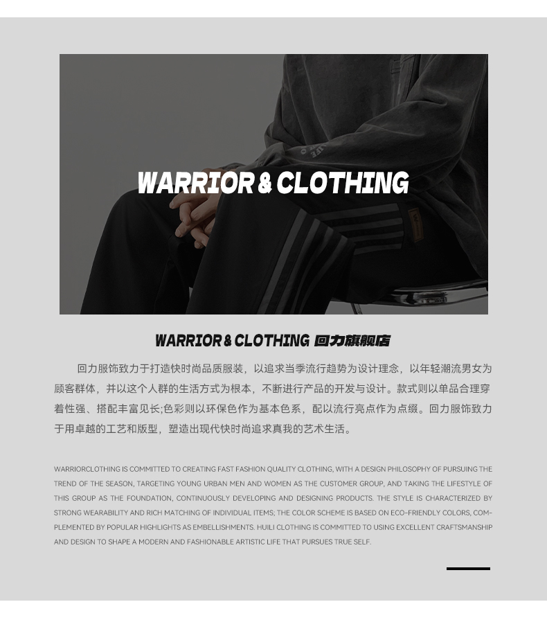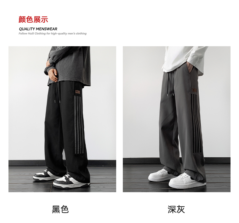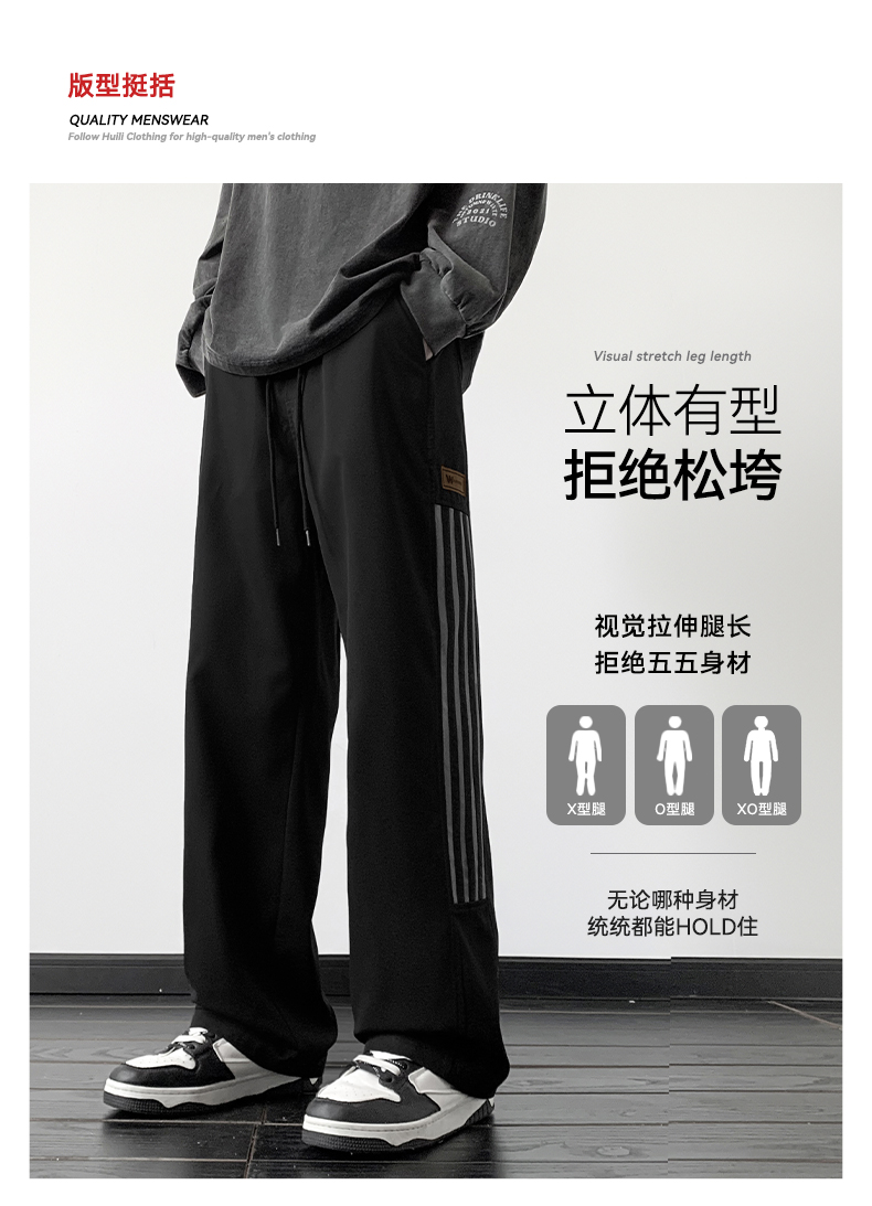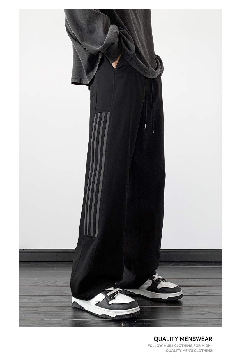 回力裤子男秋季2025新款阔腿条纹工装裤男美式宽松直筒休闲裤男款