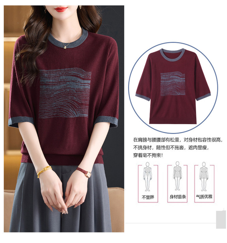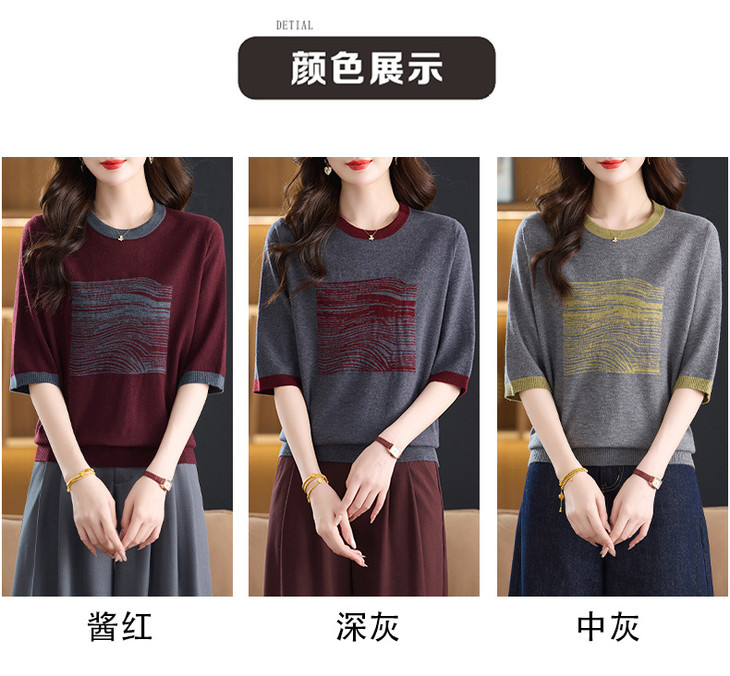 薄款宽松休闲时尚上衣,显瘦大码妈妈针织衫CC-5-6513
