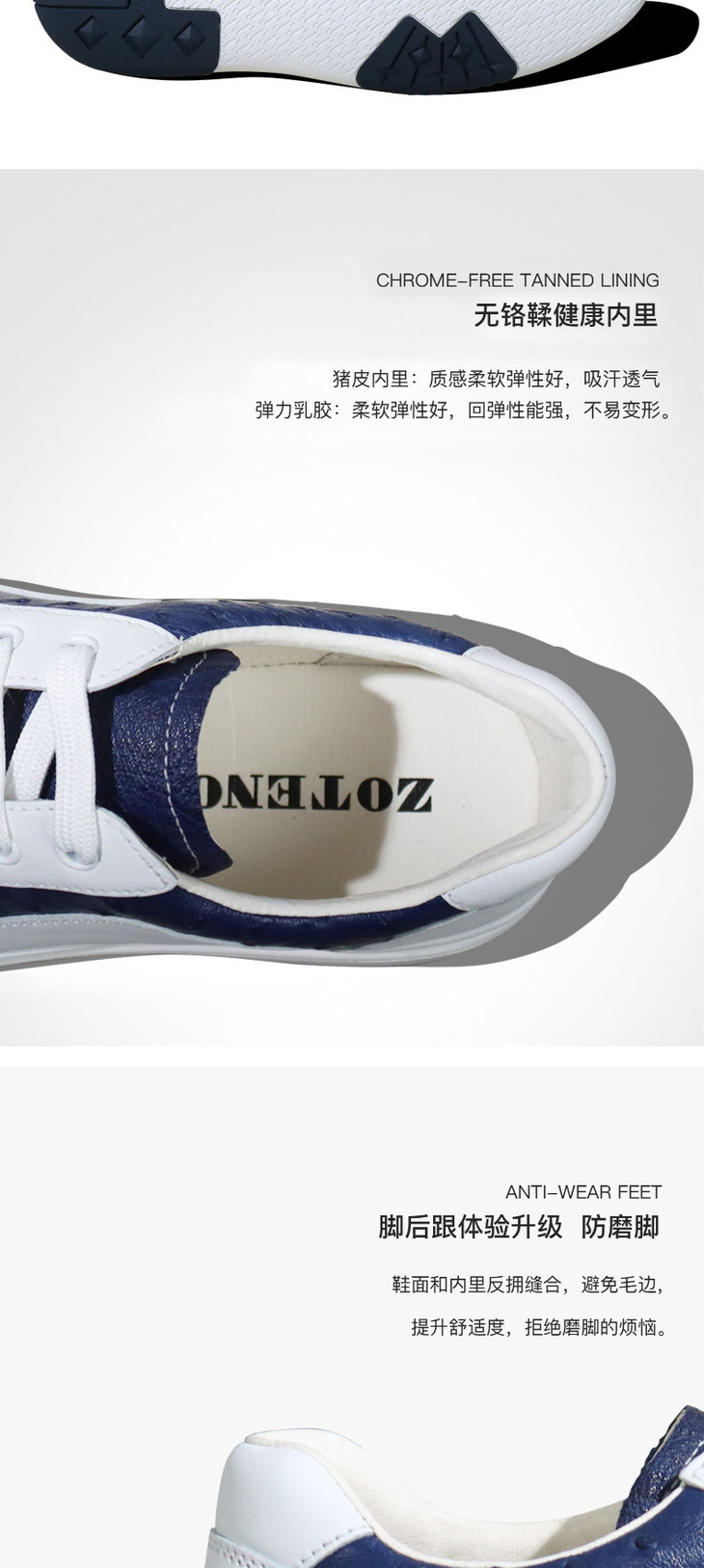左天奴/ZOTENO 男鞋鸵鸟皮/牛皮混搭英伦时尚休闲系带板鞋G309-7