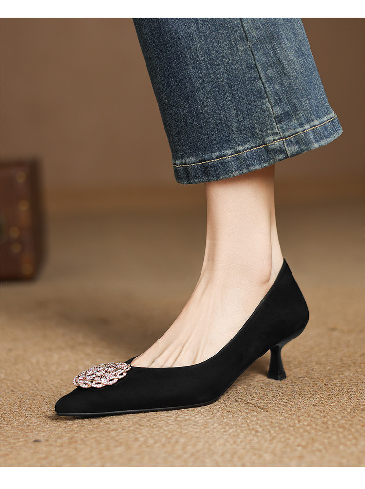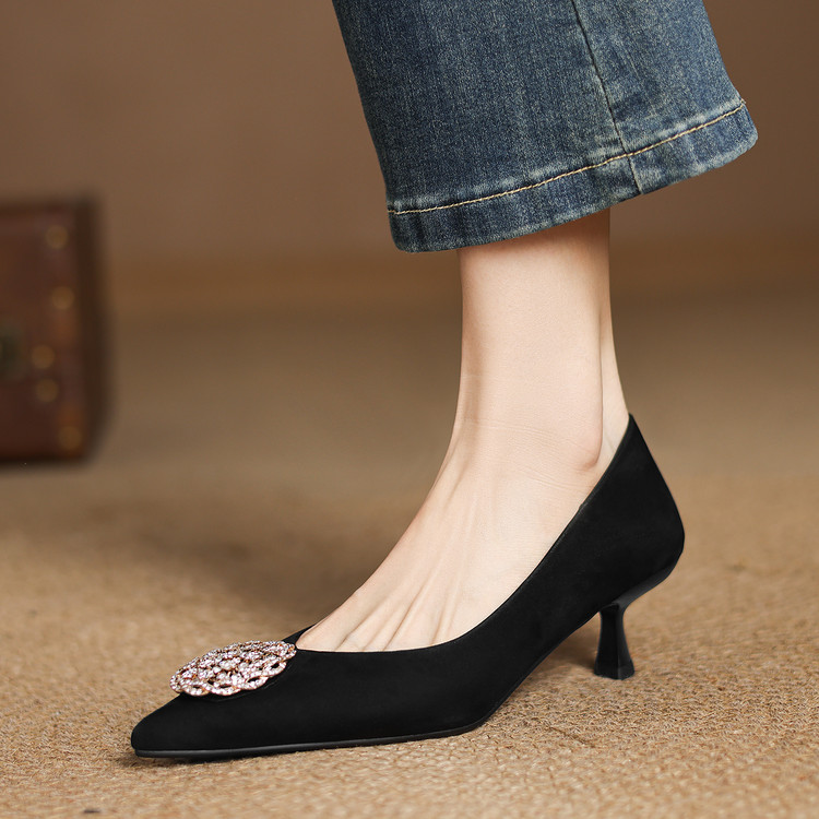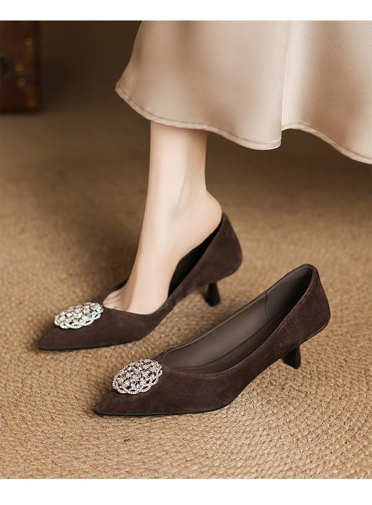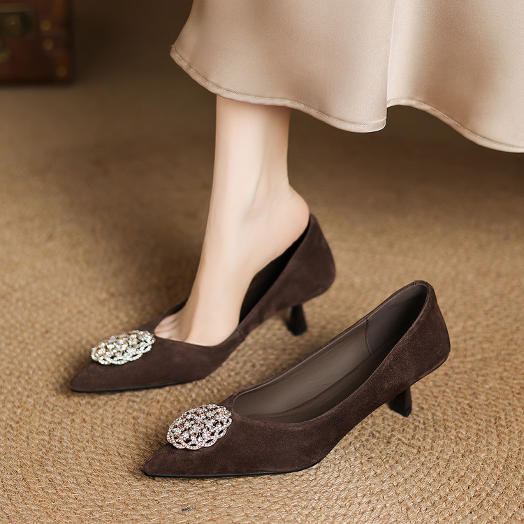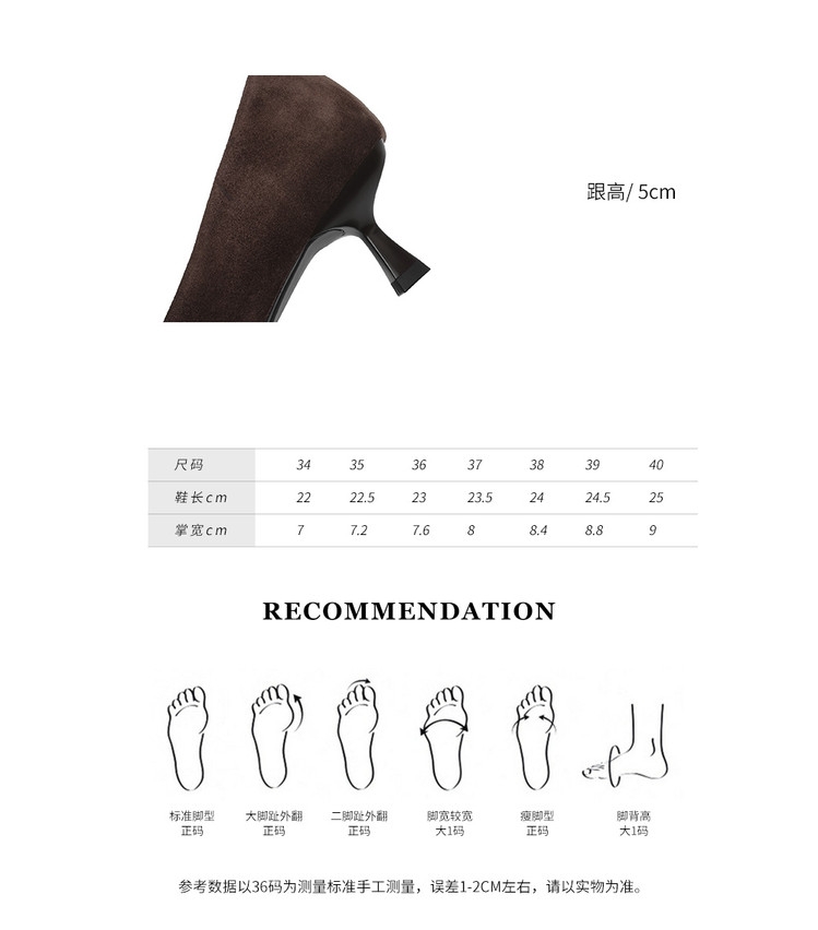 【货 号】X1519【鞋面材质】羊反皮【内里材质】头层羊皮【鞋垫材质】头层羊皮【鞋 底】牛筋大底【跟 高】5cm 【颜 色】黑色 棕色【尺 码】34-39