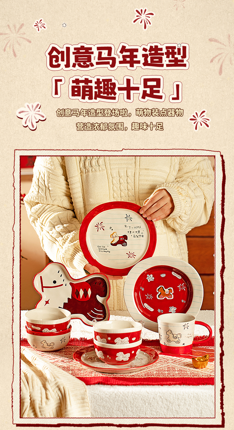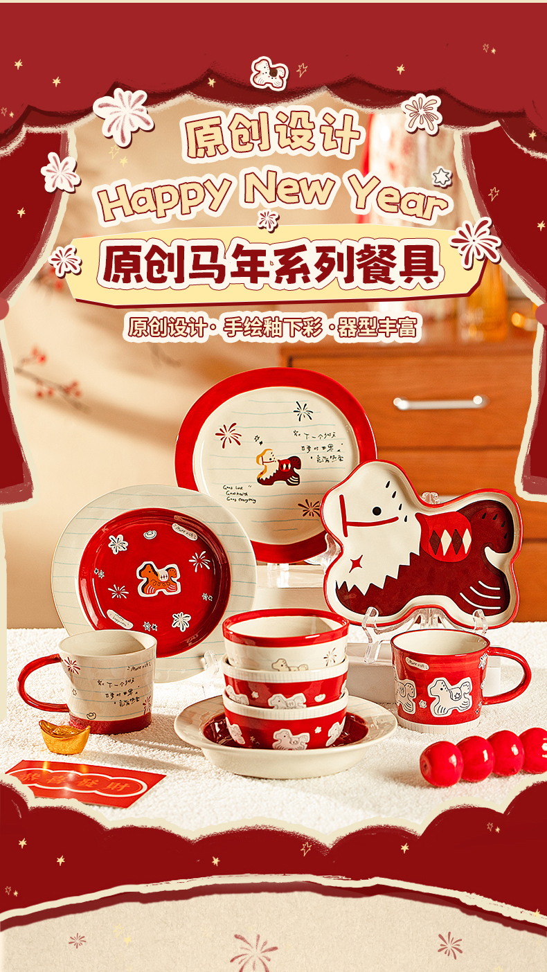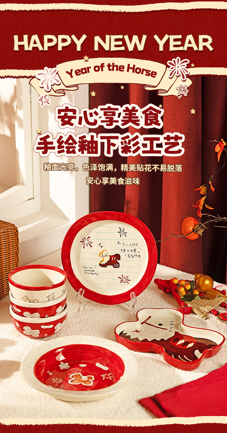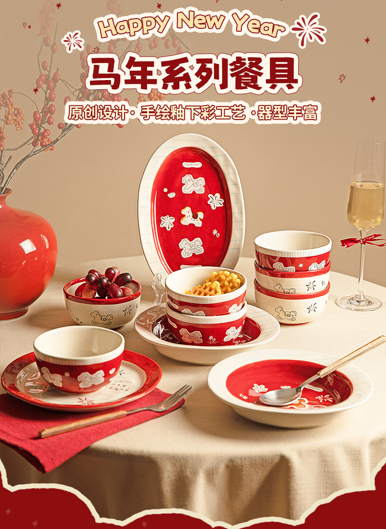 摩登主妇马年新年餐具碗碟家用2025新款高颜值饭碗具盘子乔迁礼物