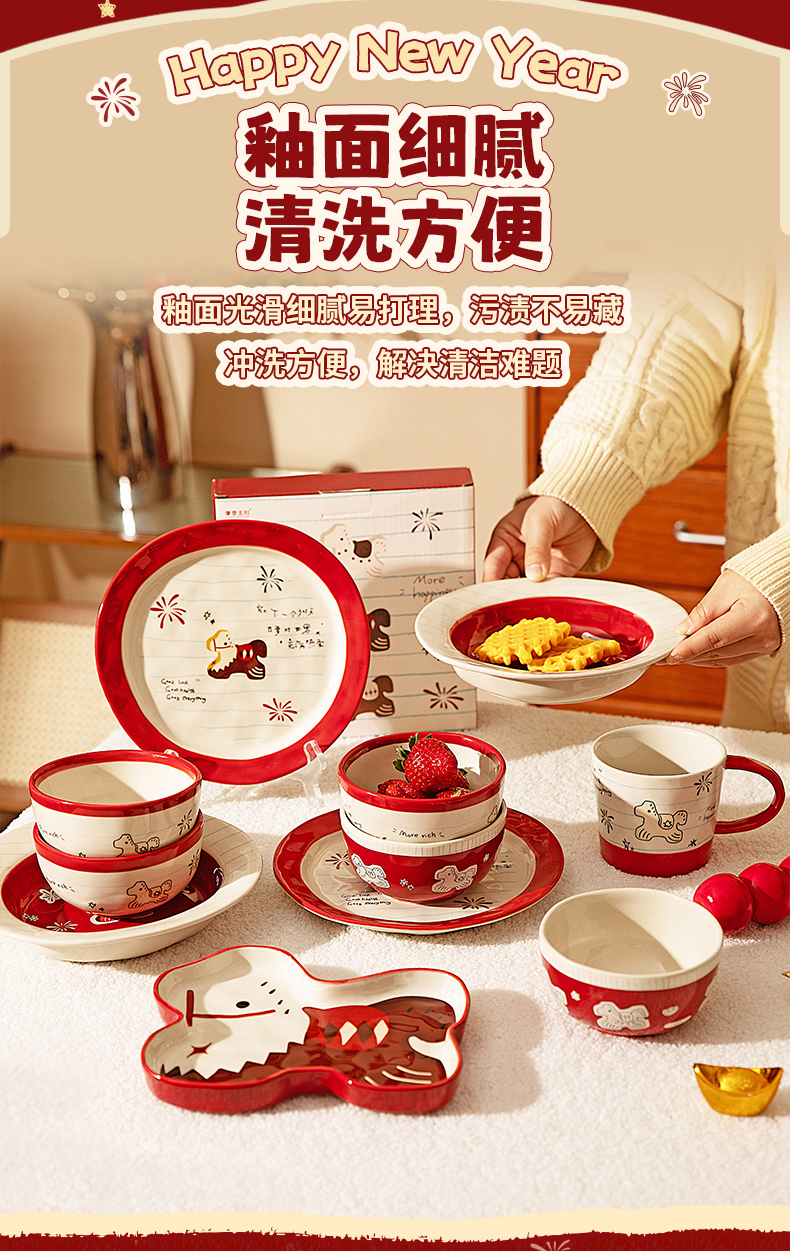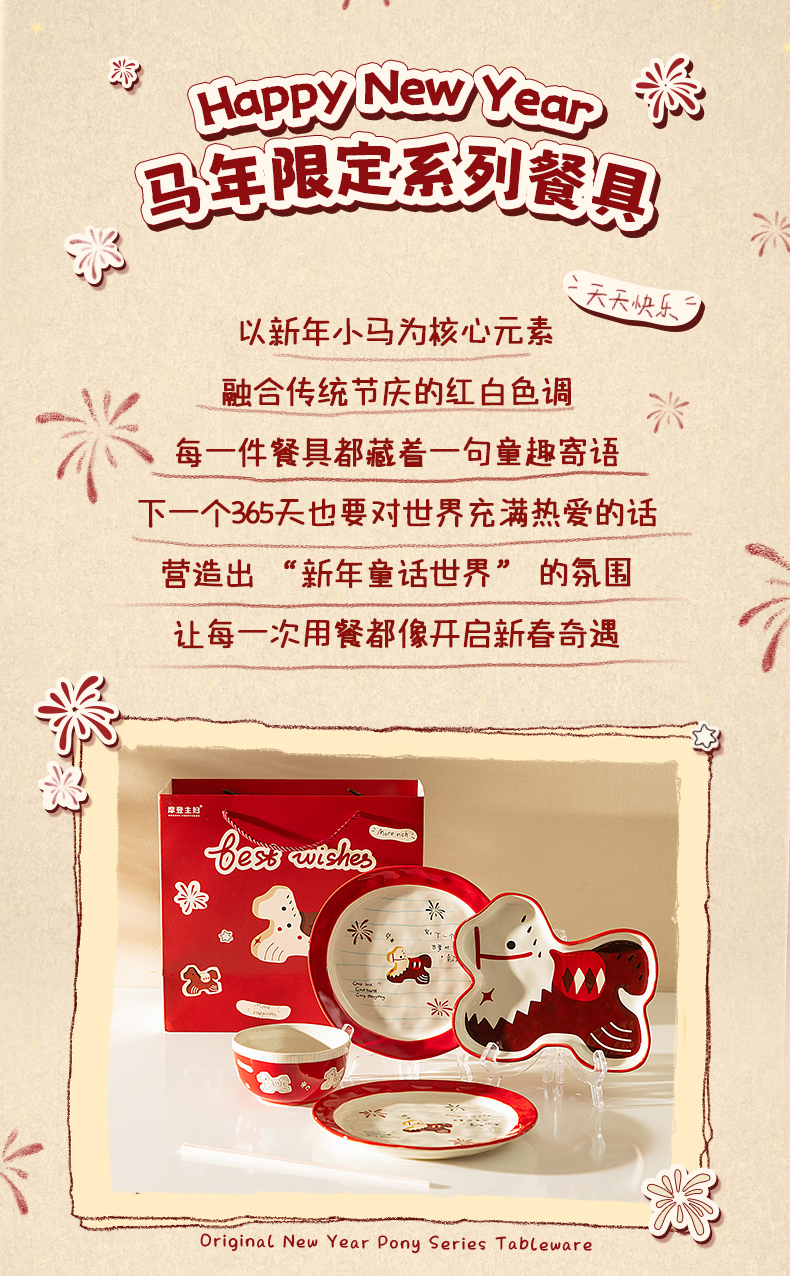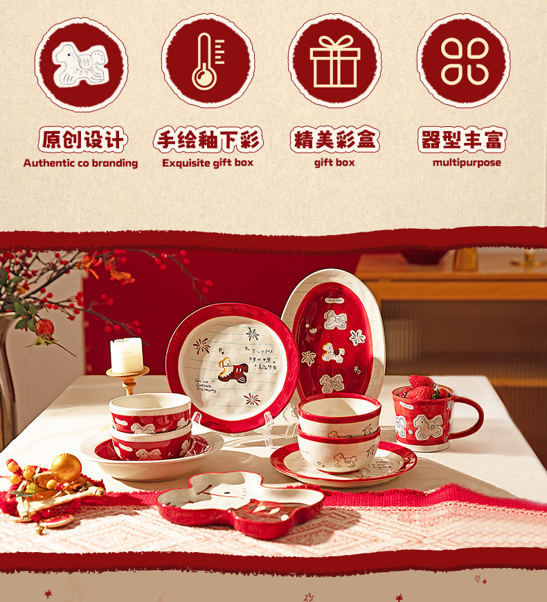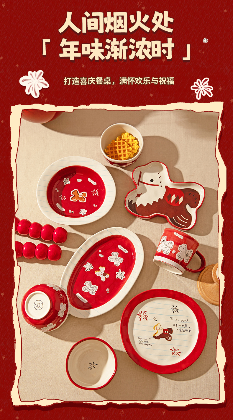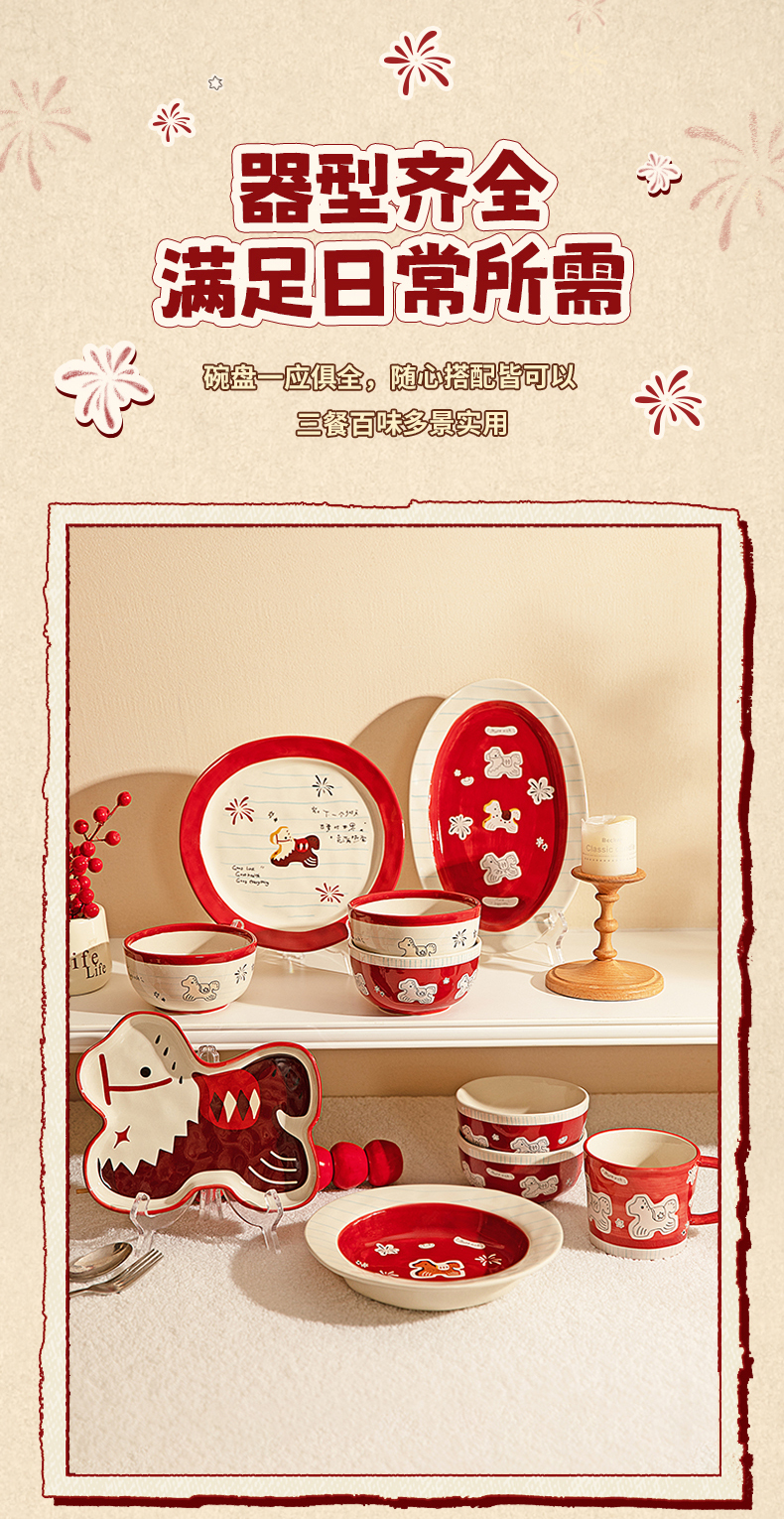 摩登主妇马年新年餐具碗碟家用2025新款高颜值饭碗具盘子乔迁礼物