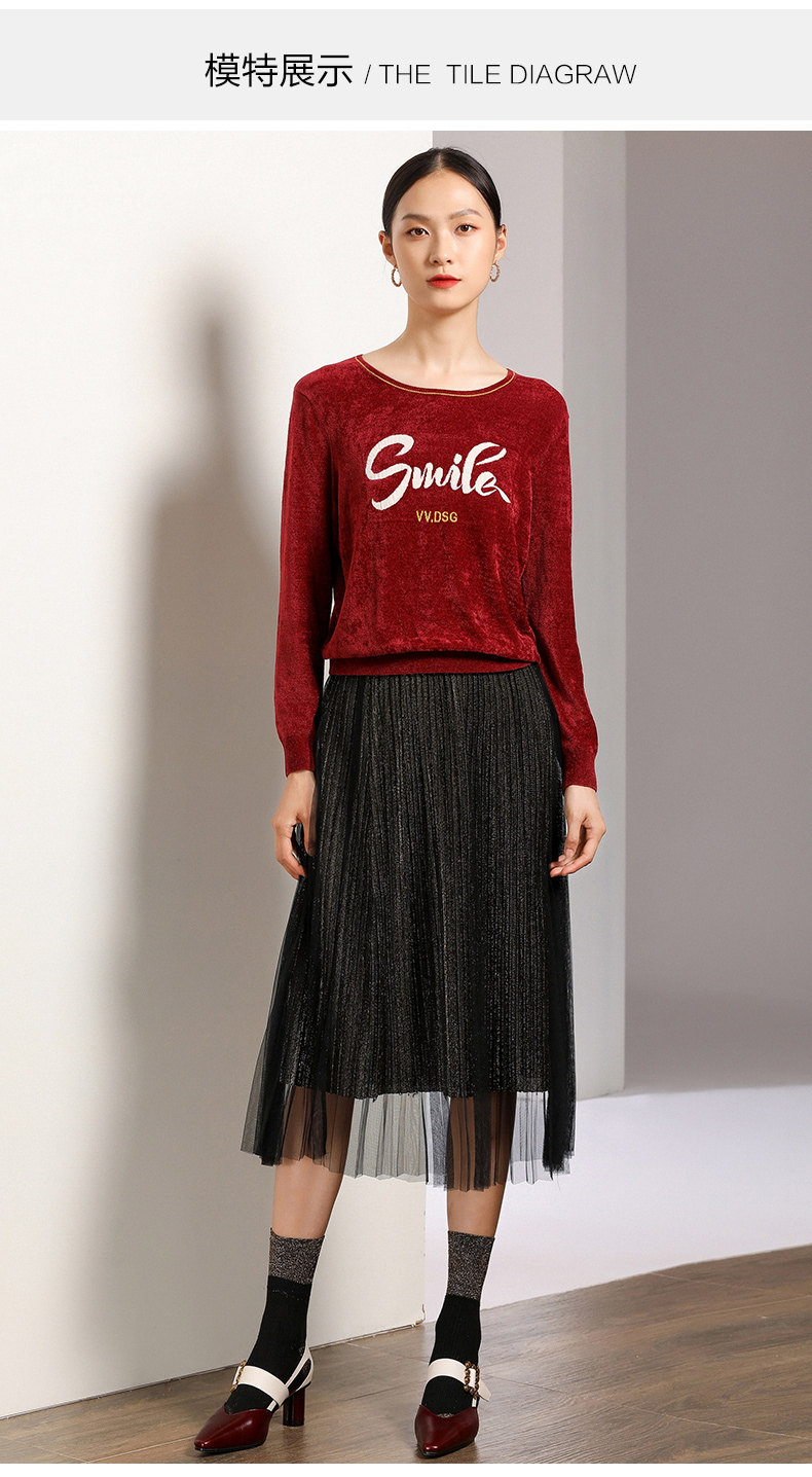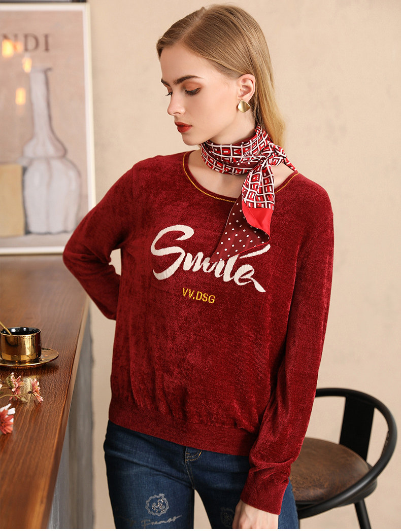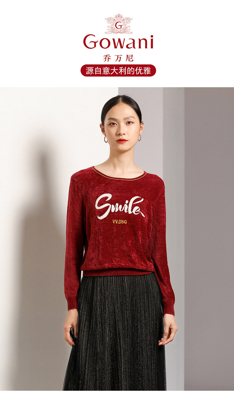 乔万尼针织衫秋季时尚宽松印花圆领套头外穿上衣女长袖EN3M401