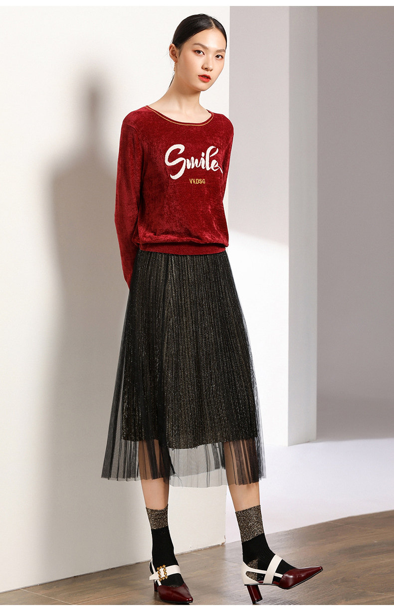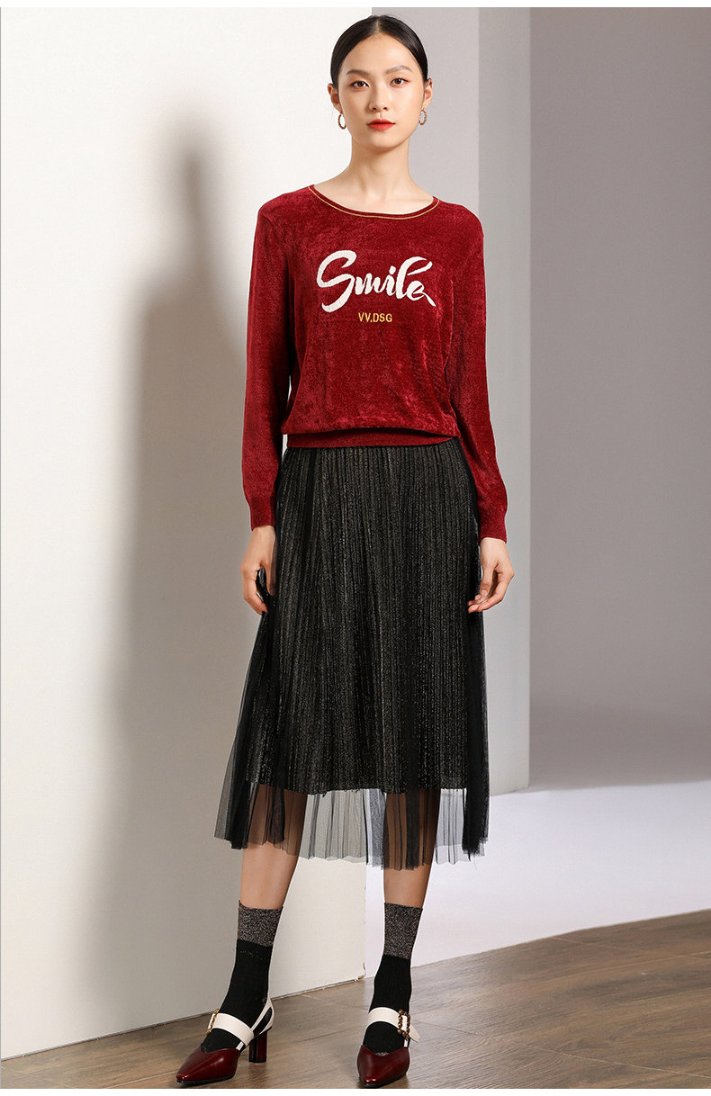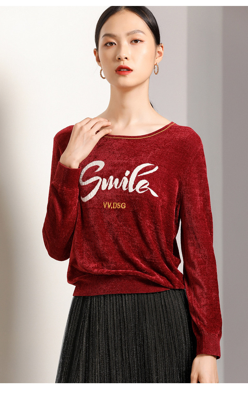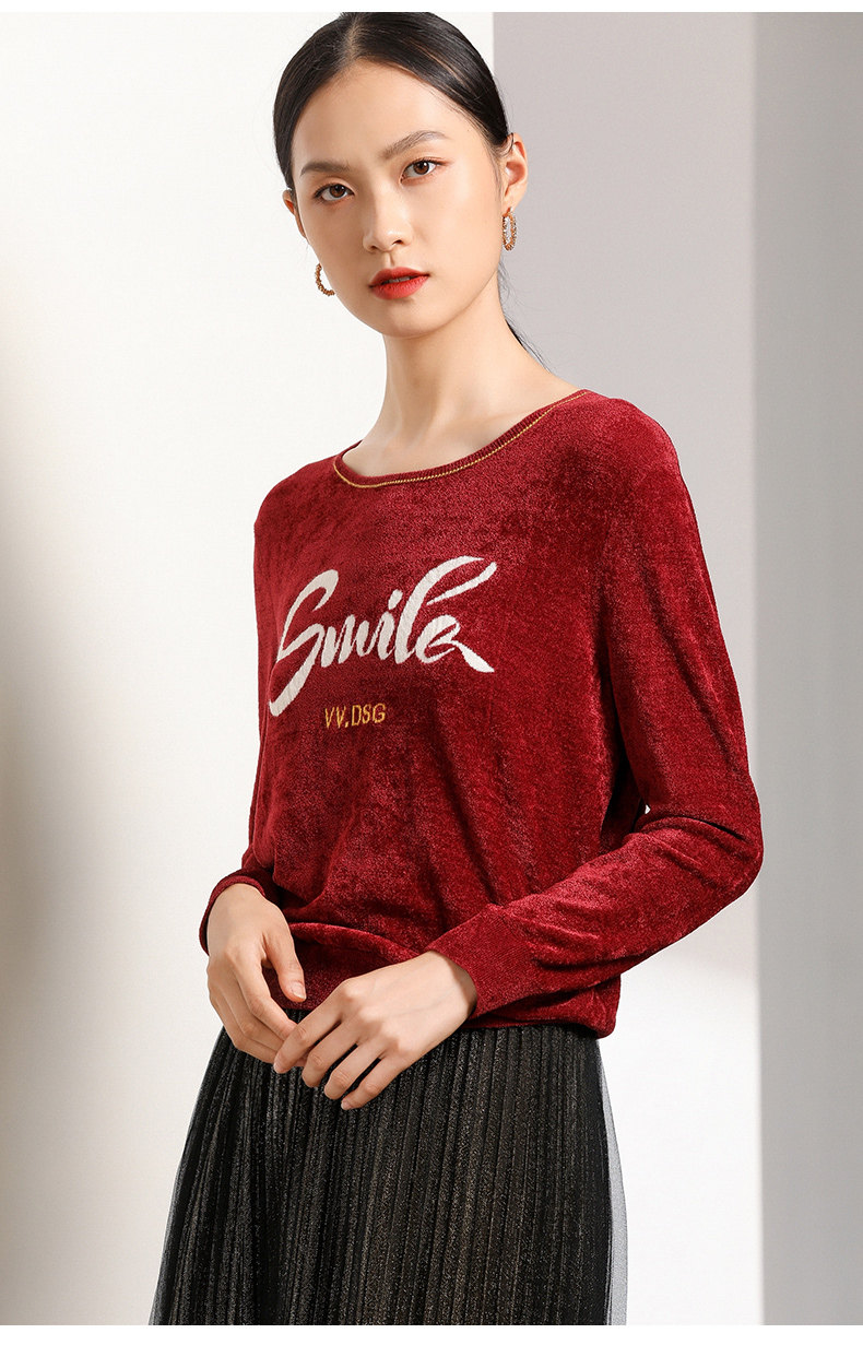 乔万尼针织衫秋季时尚宽松印花圆领套头外穿上衣女长袖EN3M401