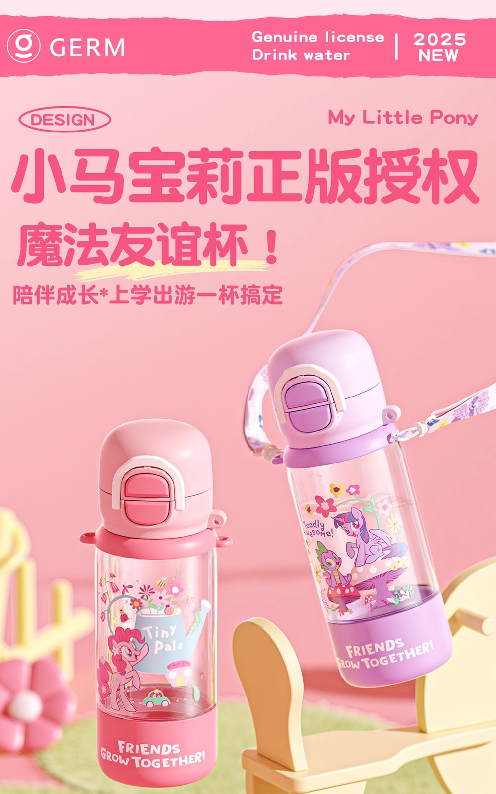 GERM小马宝莉趣享弹跳水杯550ml 花园紫