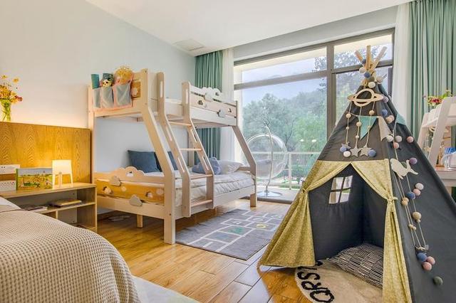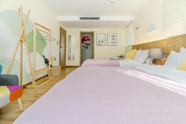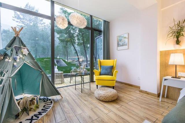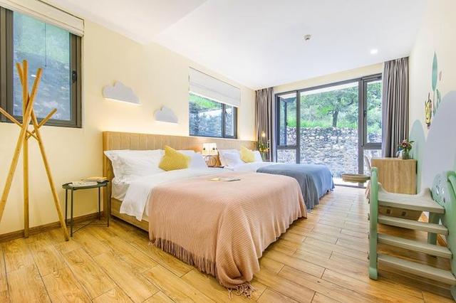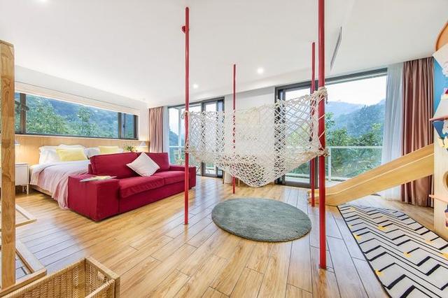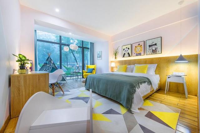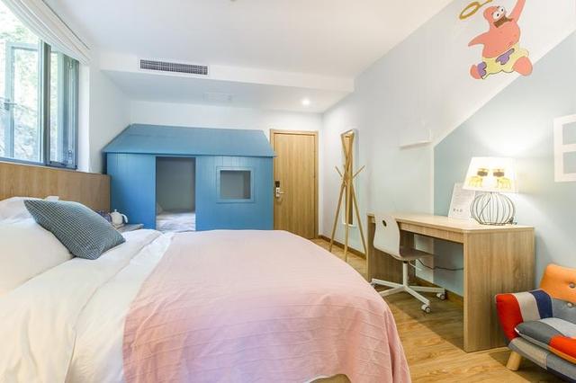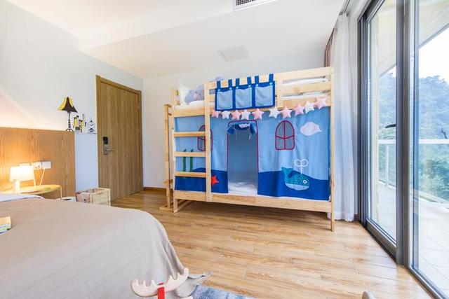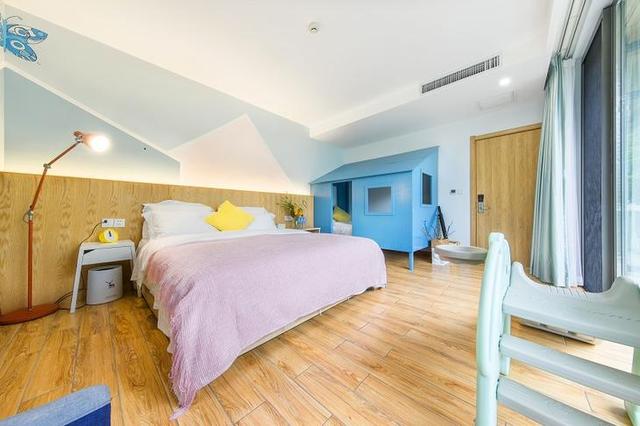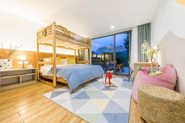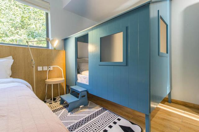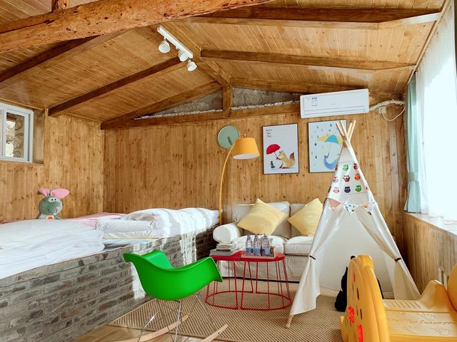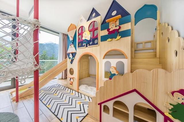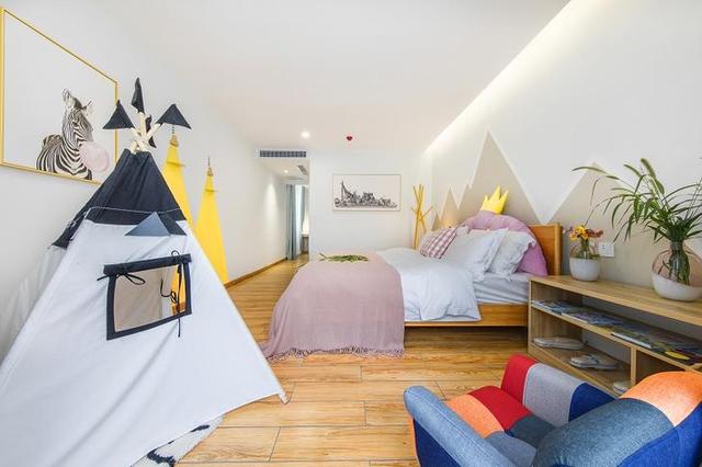 在这里还有让孩子们能尽情撒欢的亲子客房,酒店有30间客房,城堡上下铺、小房子造型床、攀爬架、小摇马、小帐篷、滑梯…每间房都有自己的特色,绝不刻意营造色彩斑斓的卡通环境,不会有高饱和度的红黄蓝刺激着视觉神经,就算红也要红的粉嫩。