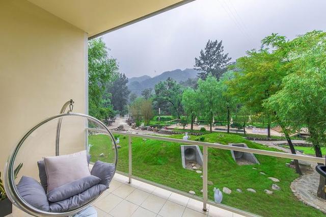 房间内推窗可见蜿蜒的长城,和茂密的植被。是京郊度假首选的天然氧吧。
