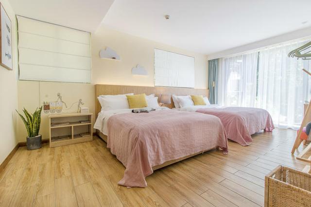 -园景双床房35㎡+50㎡共享客厅:两张双人床1.5*2m+1.5*2m