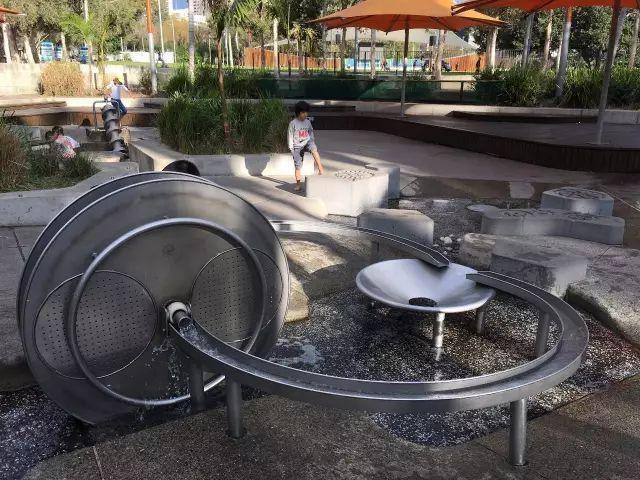 酒店玩法中最大的亮点莫过于“阿基米德水系”。小河道上有各种闸门和装置,孩子们可以用脚丫踩、用手转来控制水流走向和大小。据说这是悉尼达令港阿基米德水系的同款。