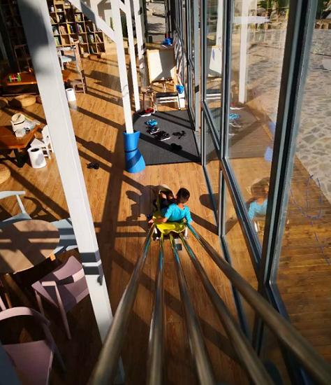 在这里有北京第一家森林主题的儿童图书馆-森林图书馆,目前藏书10000+,孩子们可以找到自己钟爱的天文、科学、植物、昆虫以及各种野外探秘的书籍。森林图书馆有两层,上面一层是玻璃小道。还有一个藏在图书馆里的秘密通道,就是滑梯!可以从二层直接坐滑梯到一层,孩子们一遍又一遍地玩滑梯,乐此不疲。