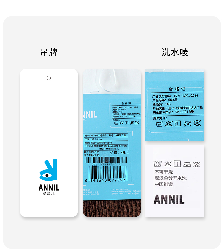 【实体店同款】男女童中袜两双装秋季新款安奈儿童装JM537488