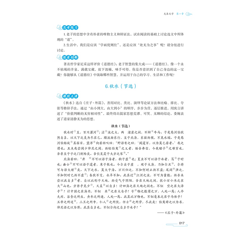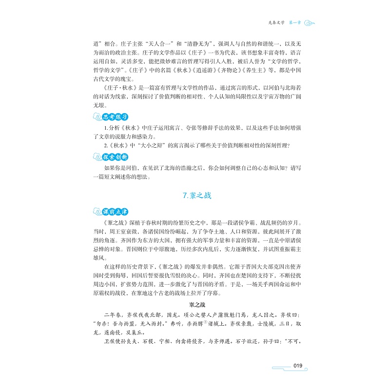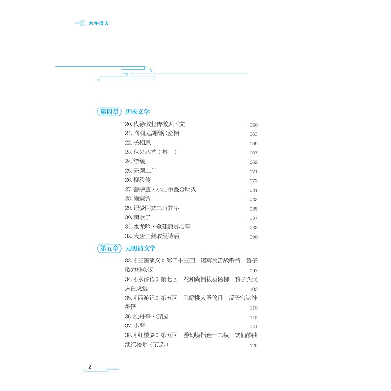 《大学语文》按照历史发展脉络,涵盖了秦汉文学、魏晋南北朝文学、唐宋文学、元明清文学和现当代文学。通过对各个时期经典作品的精选与解读,带领学生领略不同时代文学的独特魅力。从古老的秦汉文学中感受历史的厚重,在魏晋南北朝文学里体会思想的多元碰撞,于唐宋文学中品味诗词的极致之美,在元明清文学中探索文学形式的多样变化,再到现当代文学中感悟时代的发展与创新。让学生在阅读与学习中提升文学鉴赏能力、文化素养和审美水平,同时培养其对中华民族悠久文化的认同感和自豪感,为他们的未来发展奠定坚实的人文基础。
