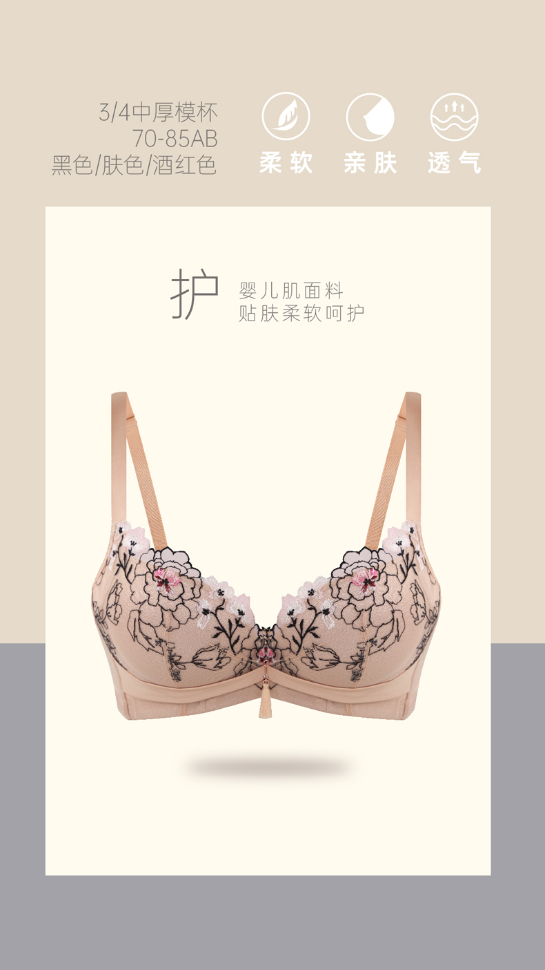 贝佳人内衣女柔软婴儿棉小胸聚拢爆款刺绣收副乳文胸BW912006